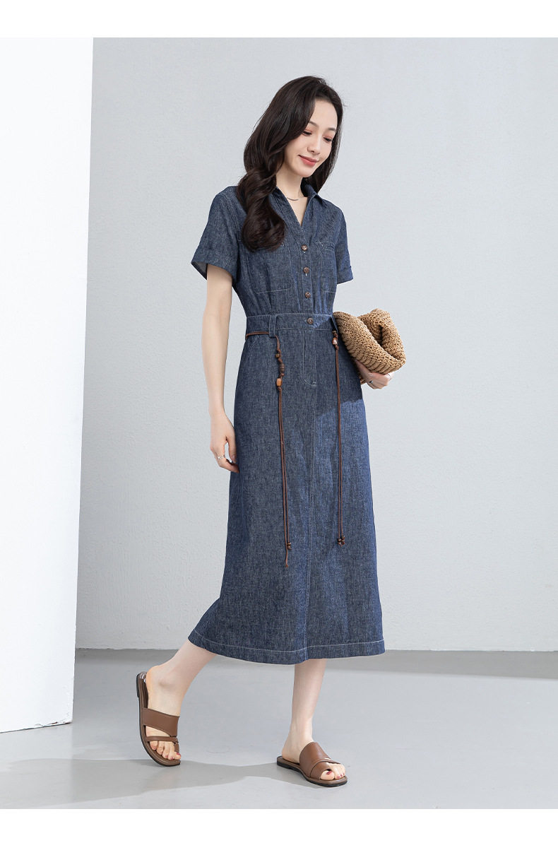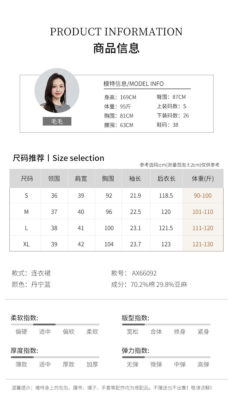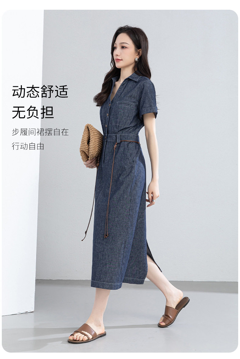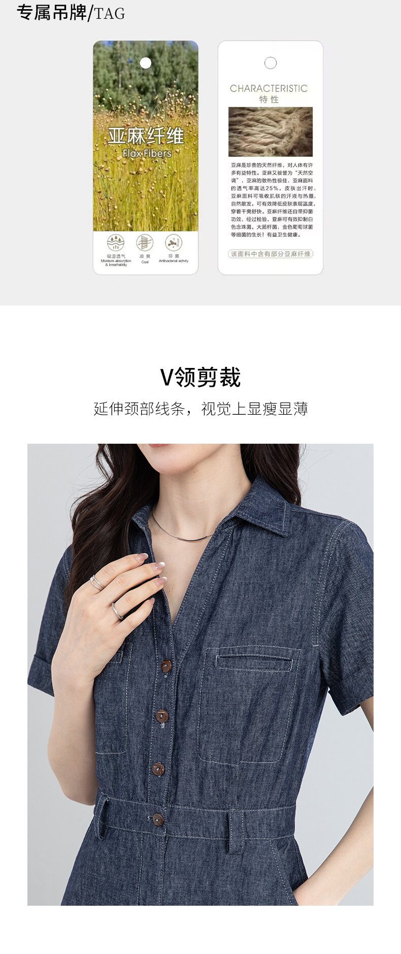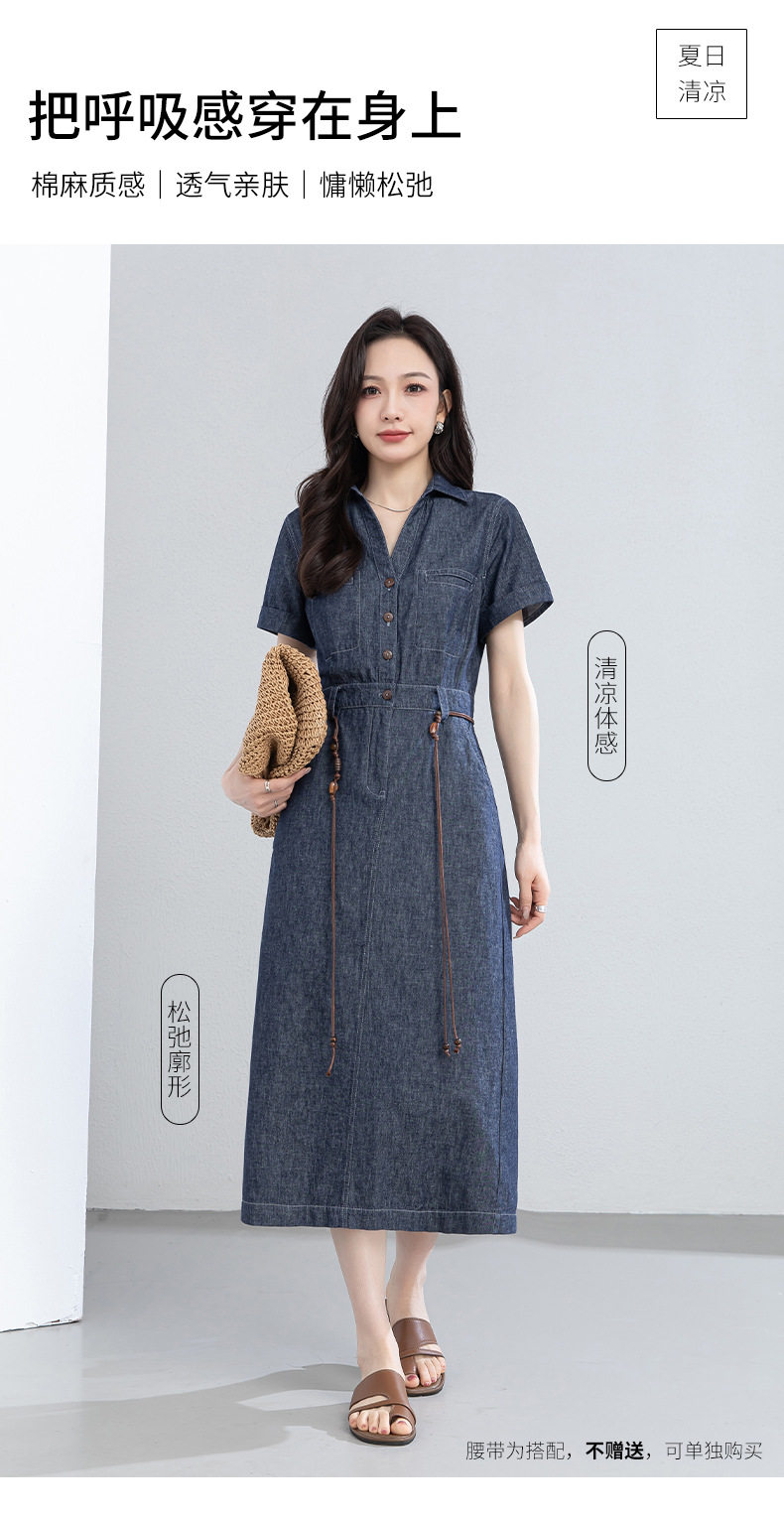 「高货xg」全新升级【铂金会员321/天猫429/差价108】(10456)洛诗琳复古棉麻连衣裙女2026夏季新款法式收腰牛仔中长裙
