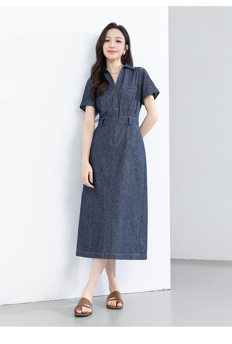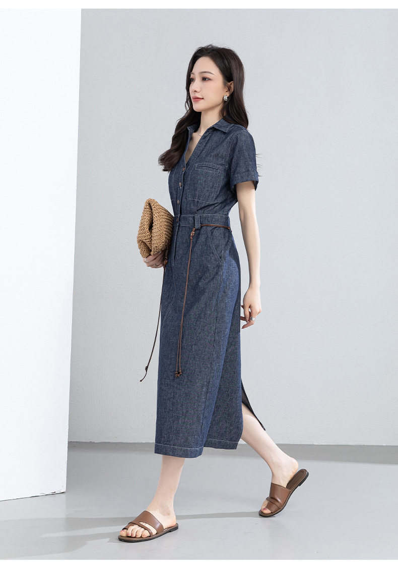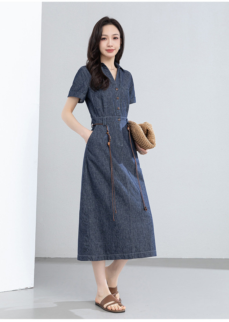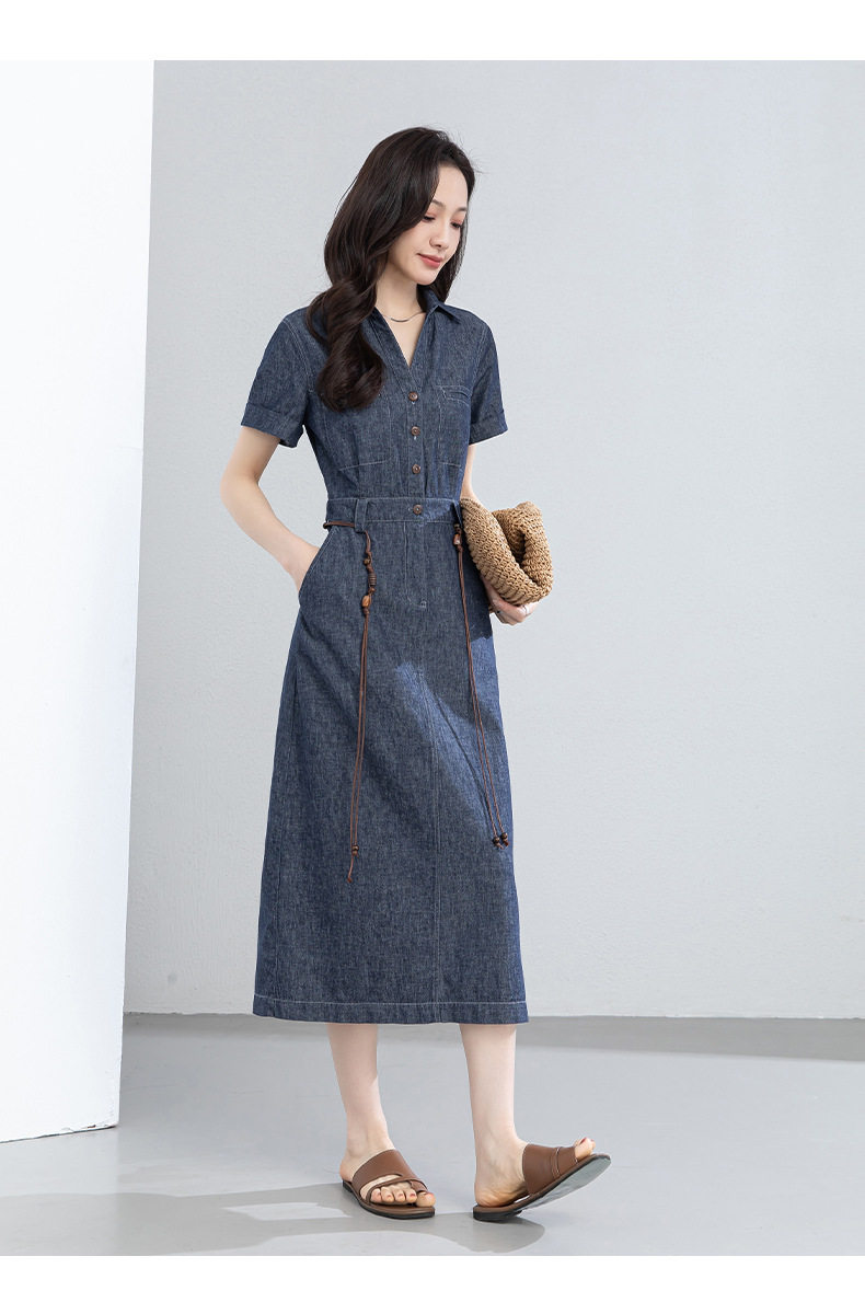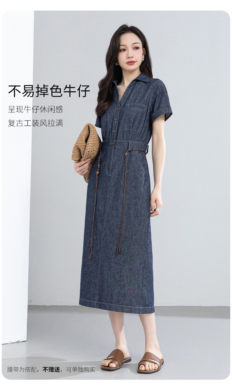 「高货xg」全新升级【铂金会员321/天猫429/差价108】(10456)洛诗琳复古棉麻连衣裙女2026夏季新款法式收腰牛仔中长裙