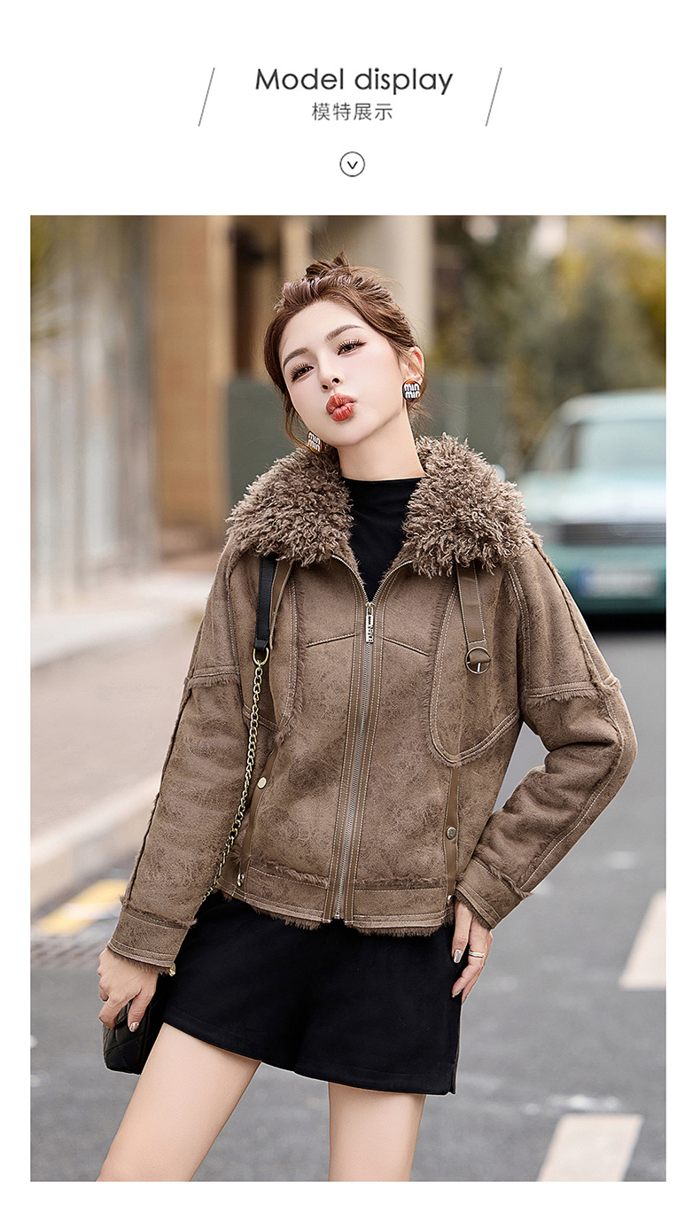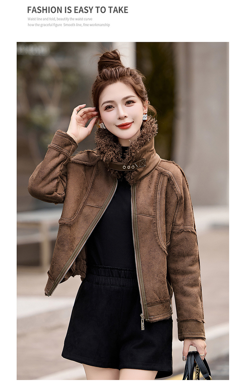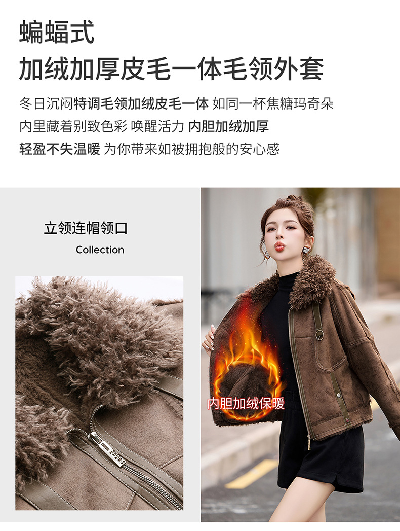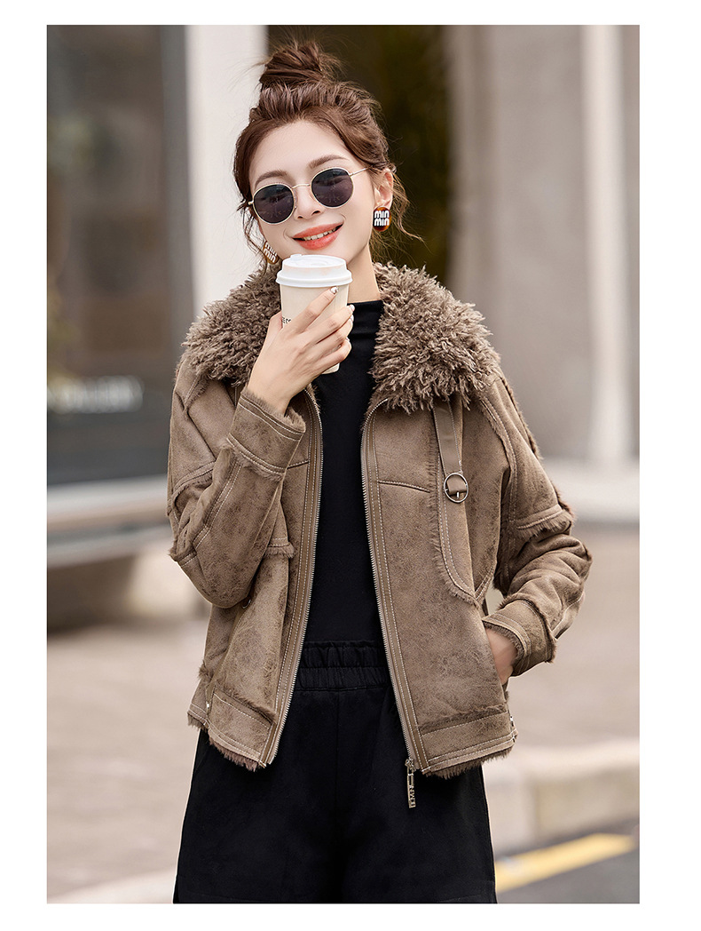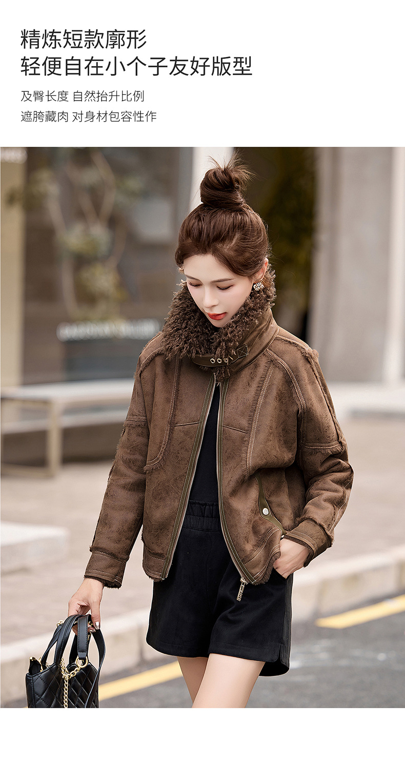 XYEL8075皮毛一体短外套女冬季2024新款加绒加厚小个子机车服皮衣夹克上衣