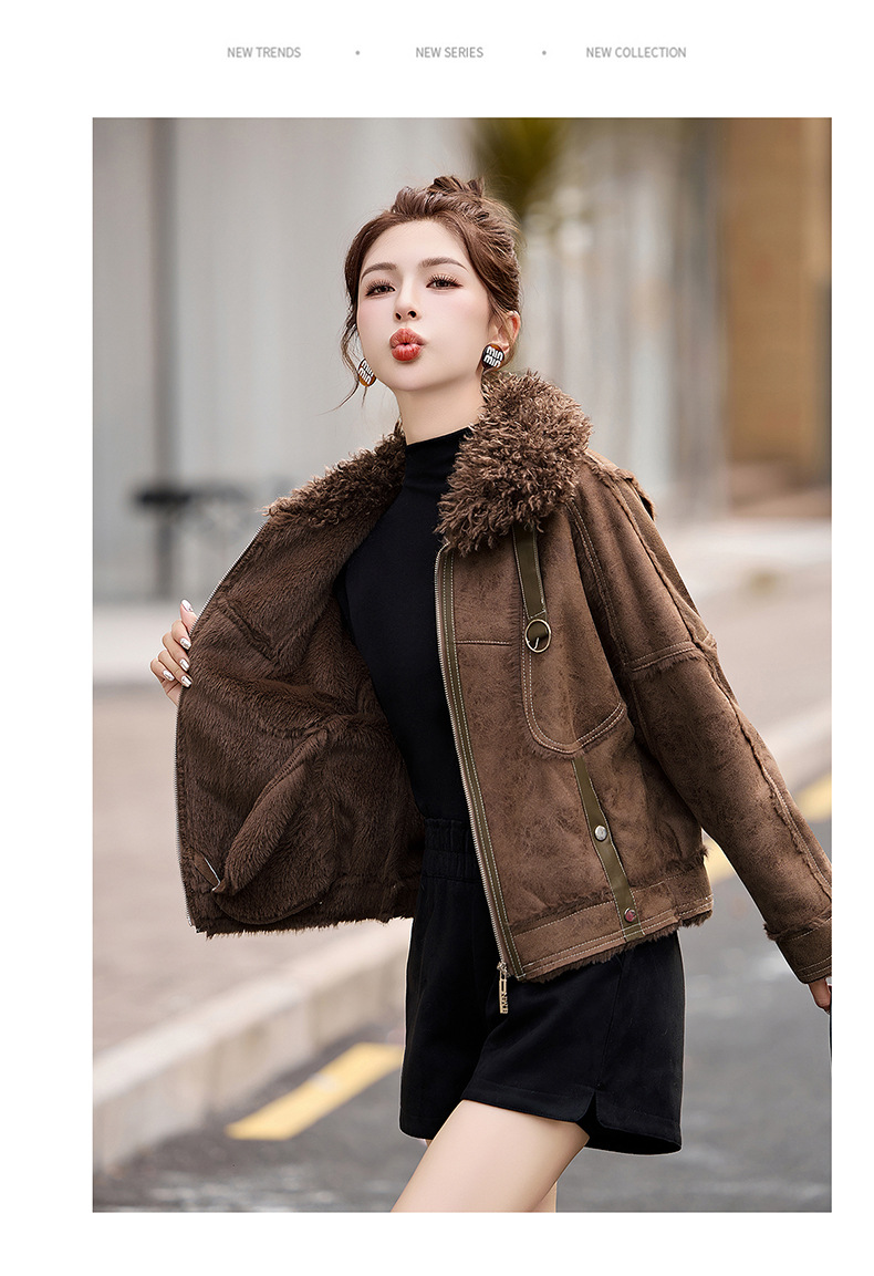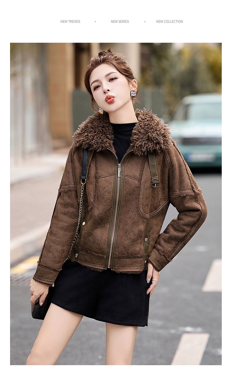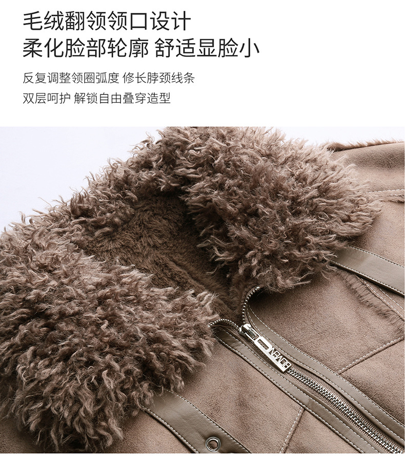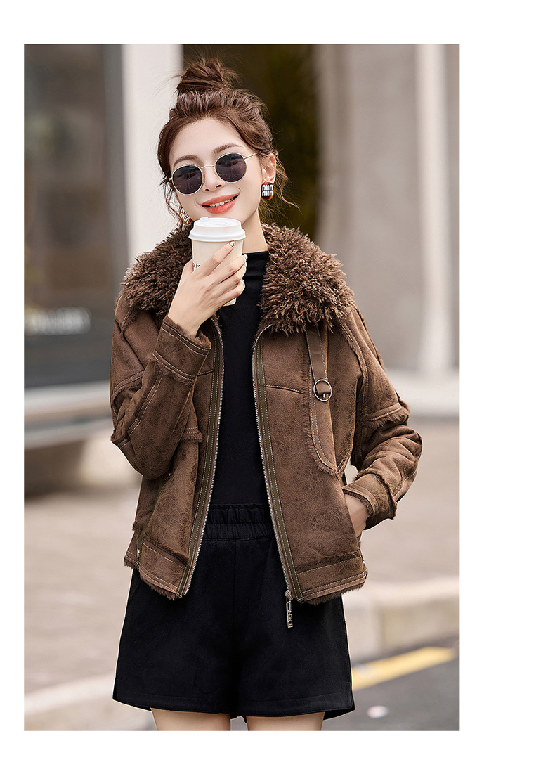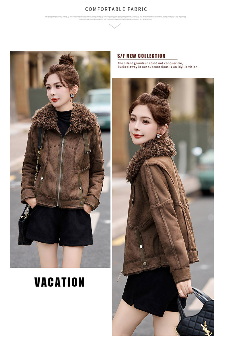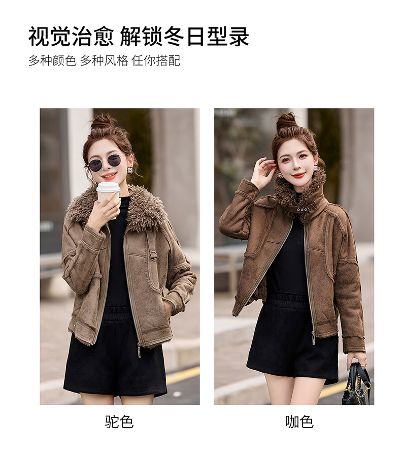 XYEL8075皮毛一体短外套女冬季2024新款加绒加厚小个子机车服皮衣夹克上衣