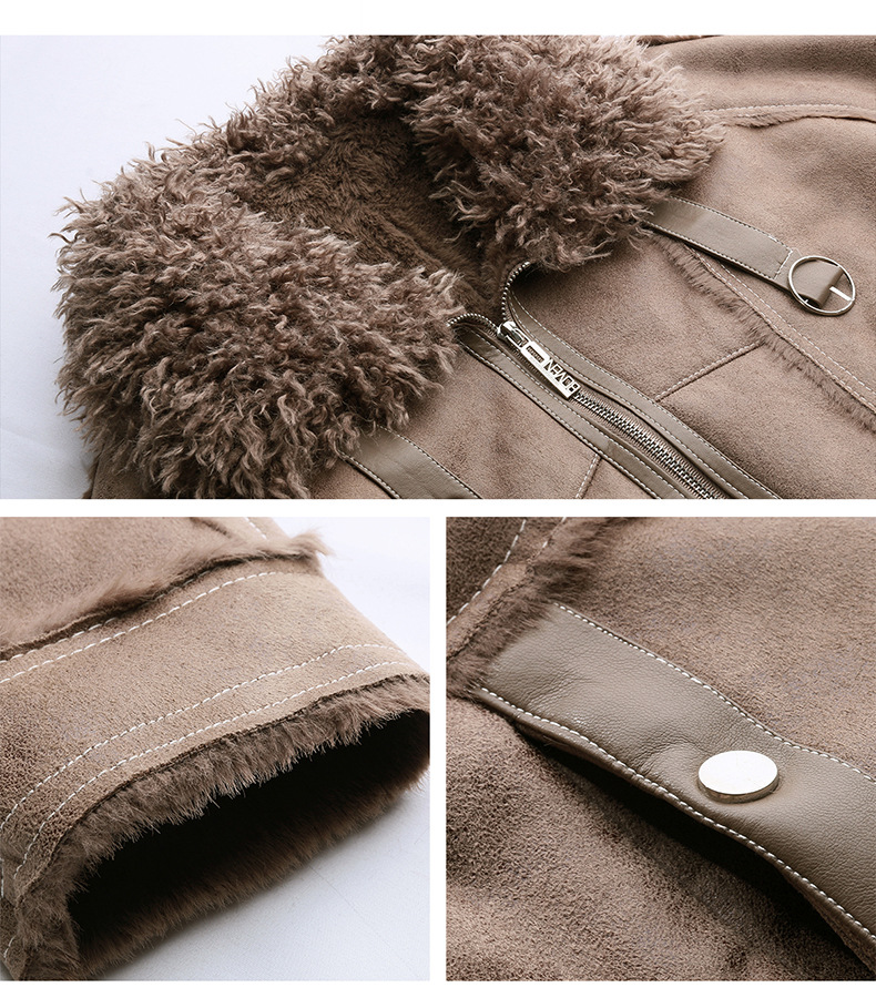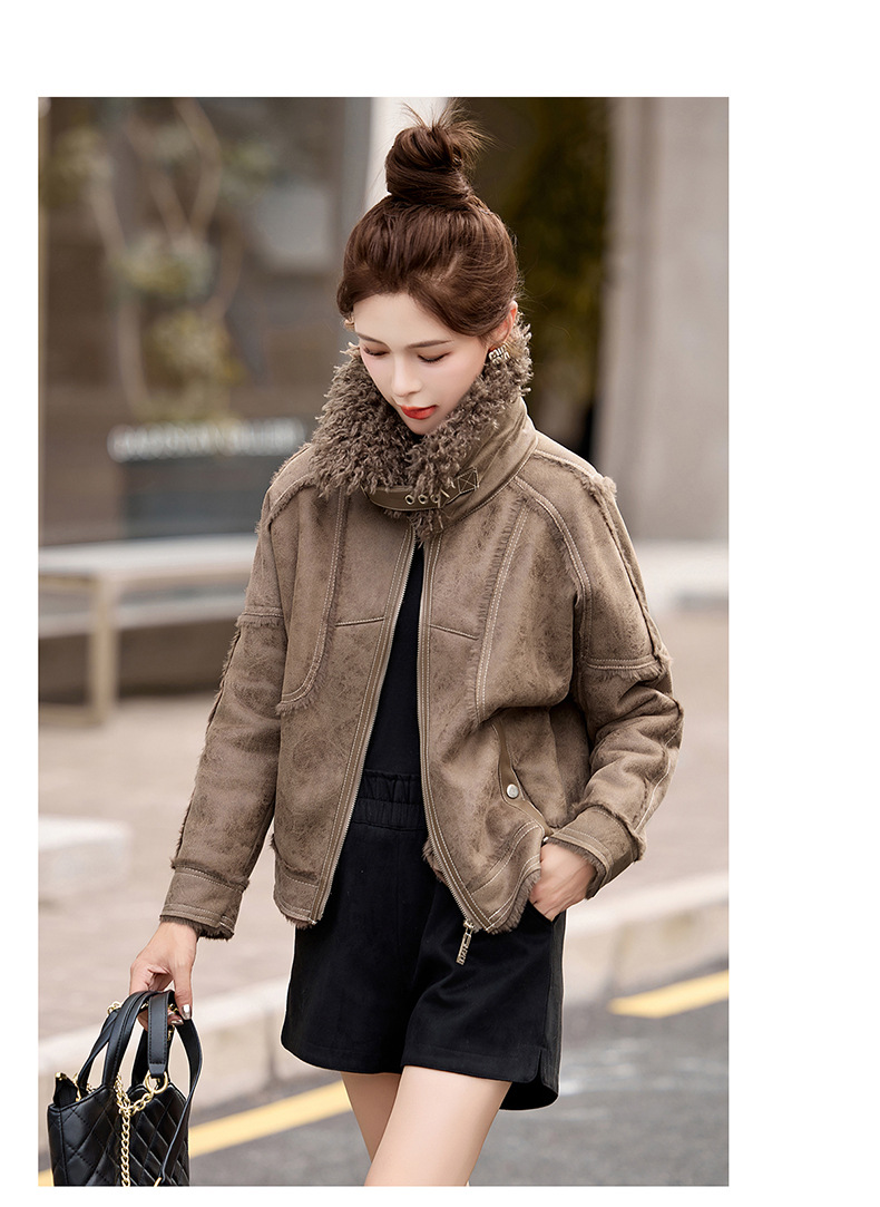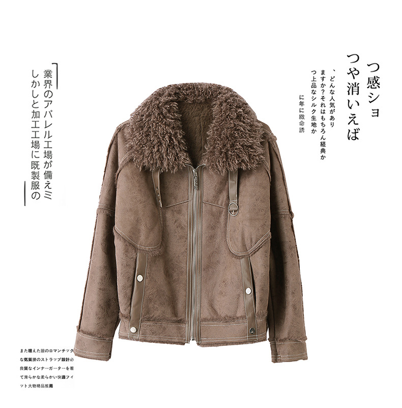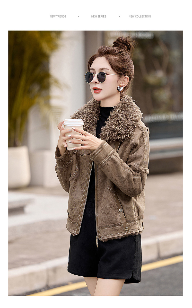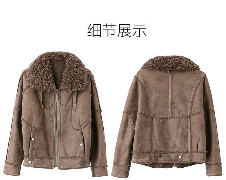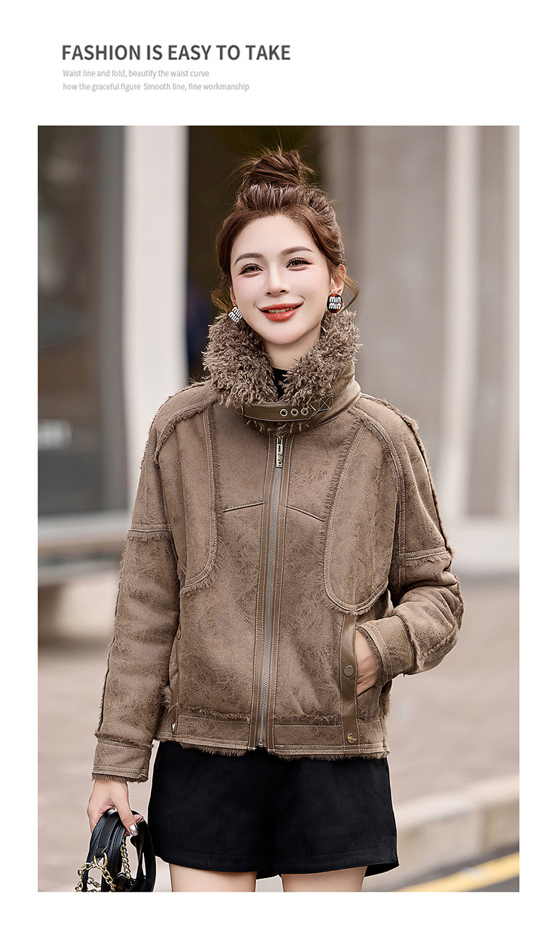 XYEL8075皮毛一体短外套女冬季2024新款加绒加厚小个子机车服皮衣夹克上衣