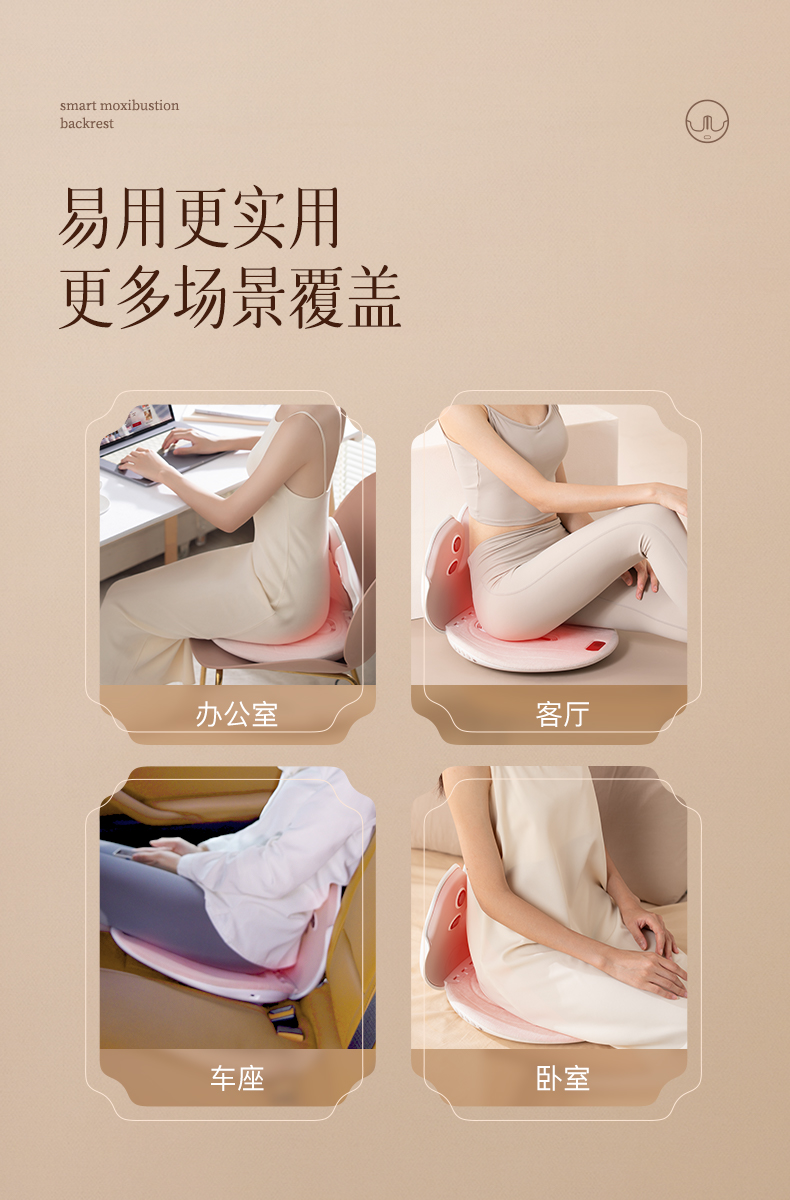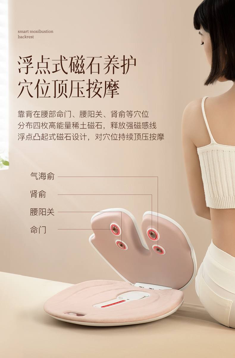科爱元素智能靠背温坐仪 ✅ 无烟艾灸科技——模拟传统艾灸热力,深层驱寒祛湿,温暖不呛鼻 ✅ 稀土磁石——精准贴合穴位,改善血液循环,缓解肌肉僵硬