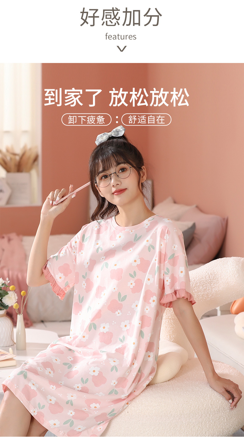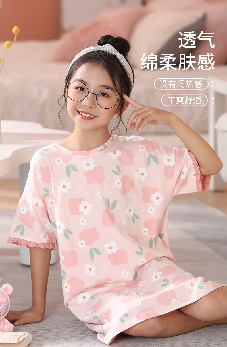 芬腾女童装睡裙夏季纯棉薄款透气连衣裙卡通中大童全棉家居服睡衣