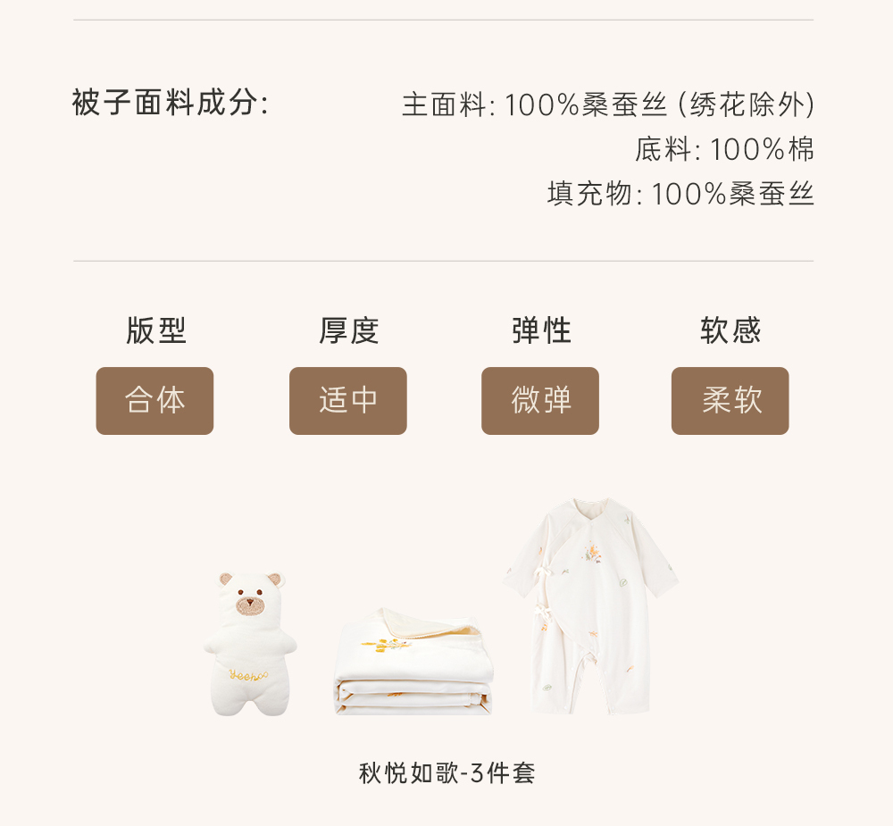 【商场同款】英氏婴儿礼盒桑蚕丝宝宝衣服四件套新款玩偶礼盒