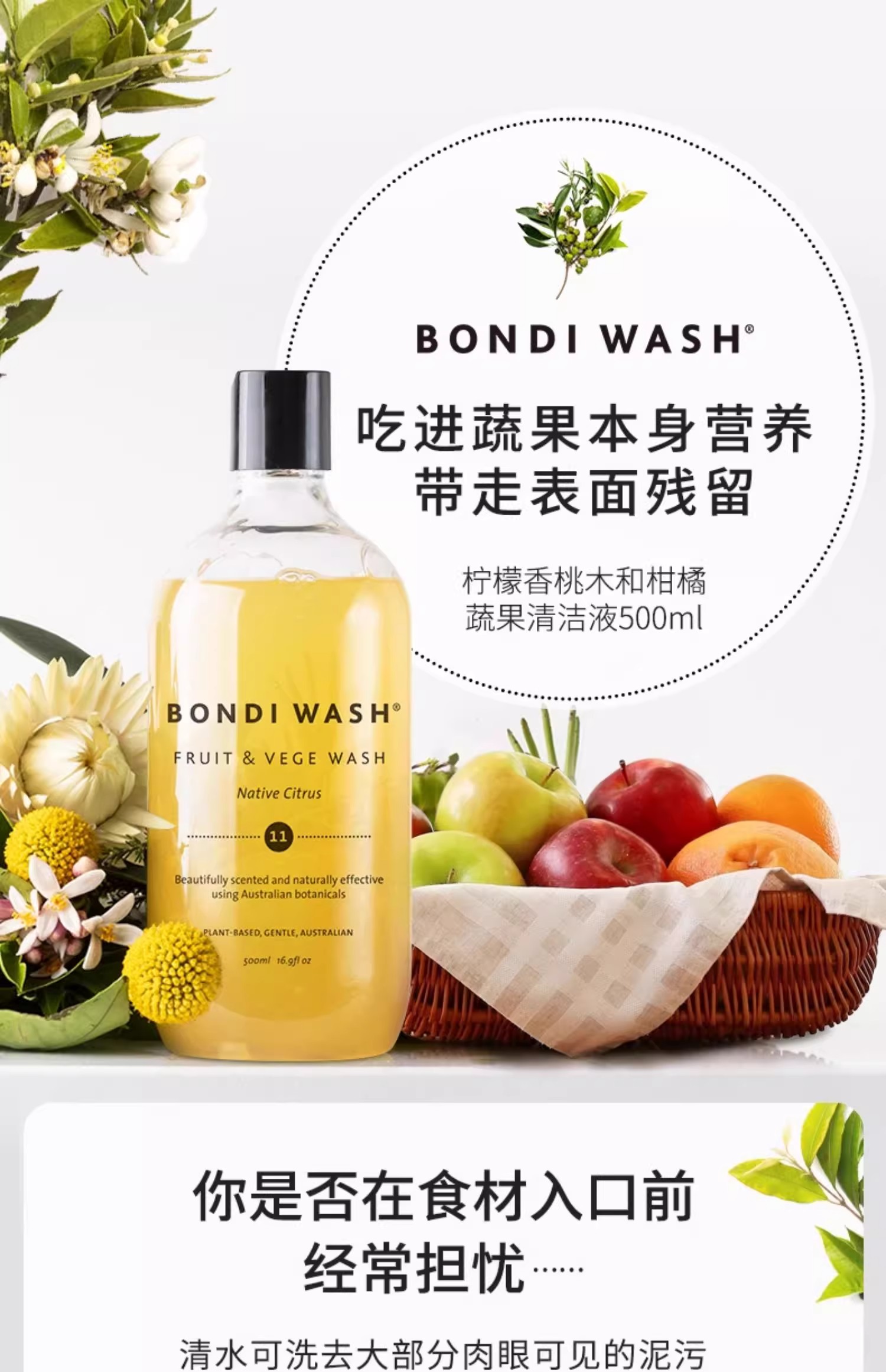 【效期28年3】澳洲本土柑橘精油提取 Vogue推荐明星款 洁净不残留 蔬菜水果 蔬果清洁液500ml BONDI WASH