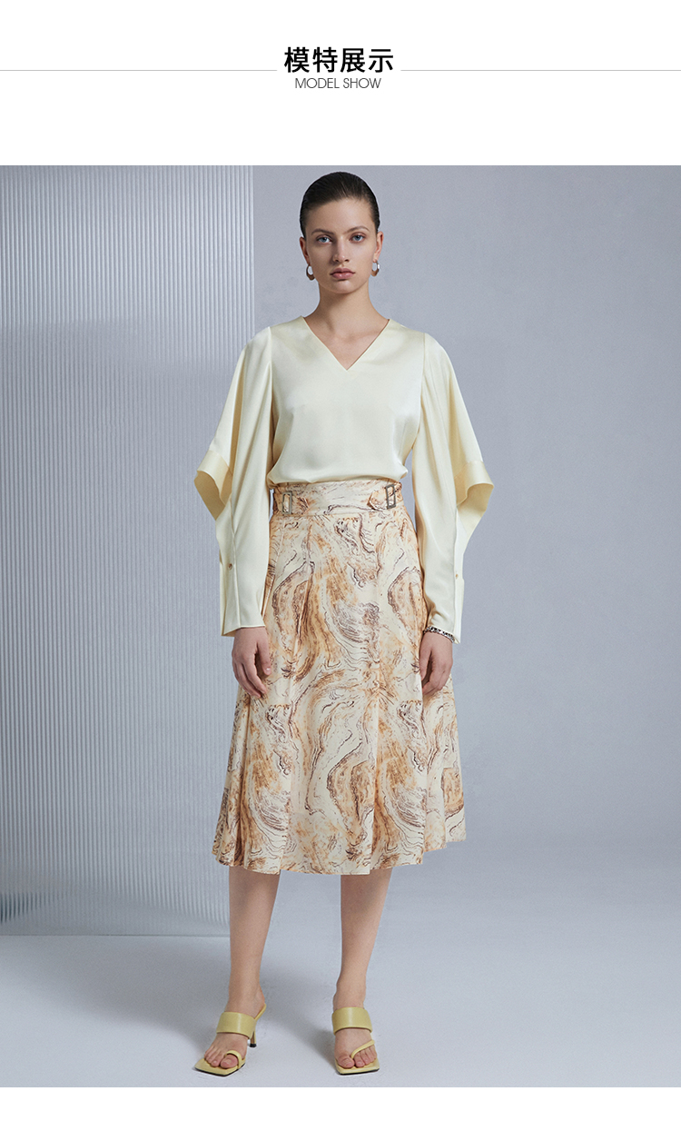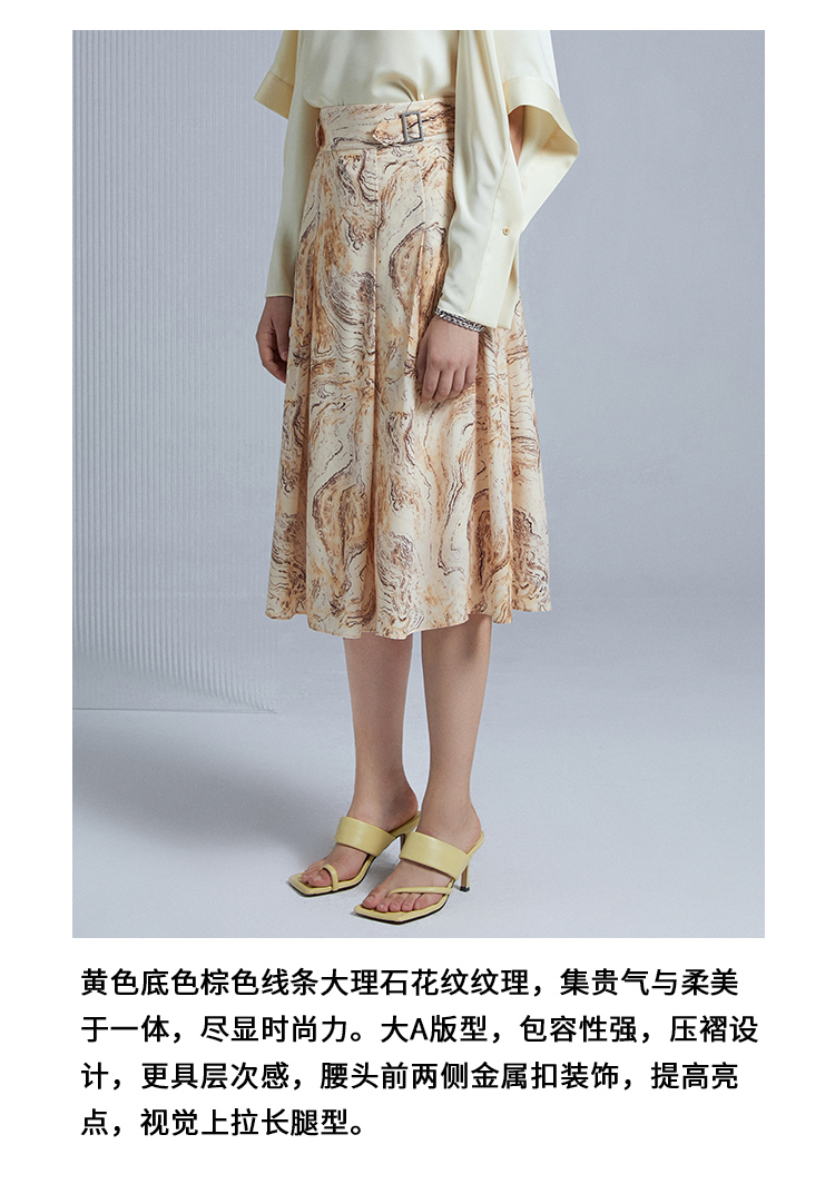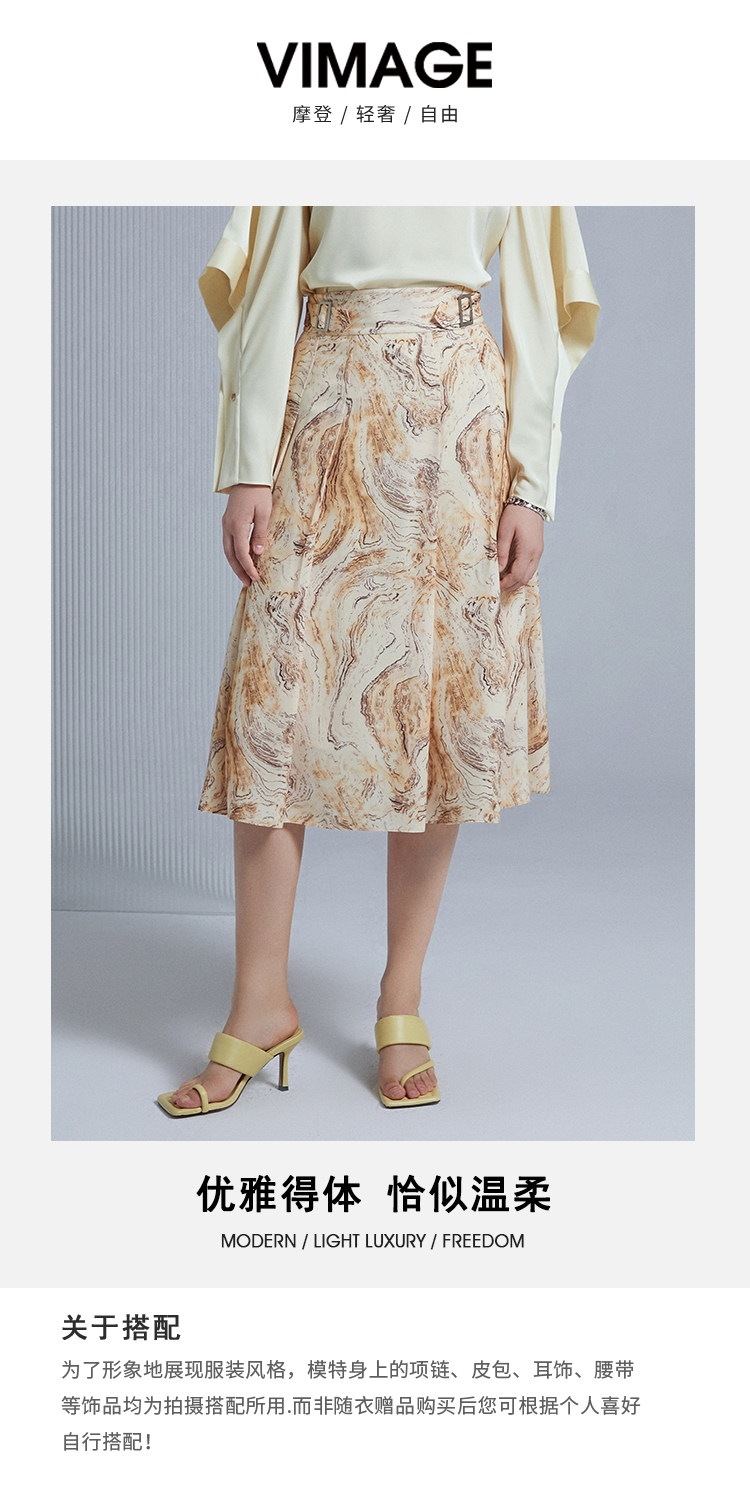 VIMAGE纬漫纪夏季新款高腰女装过膝半身裙半裙V1506109
