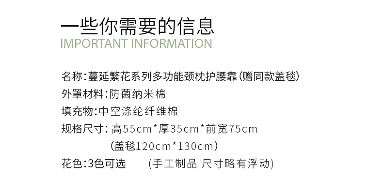 蔓延繁花系列多功能颈枕护腰靠床头靠垫软包大靠背高级感腰靠卧室可拆洗