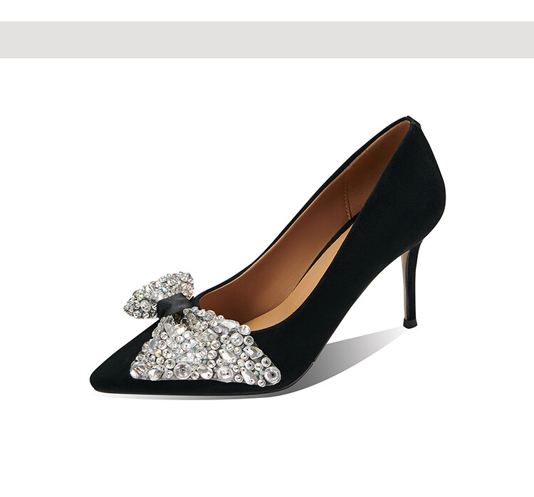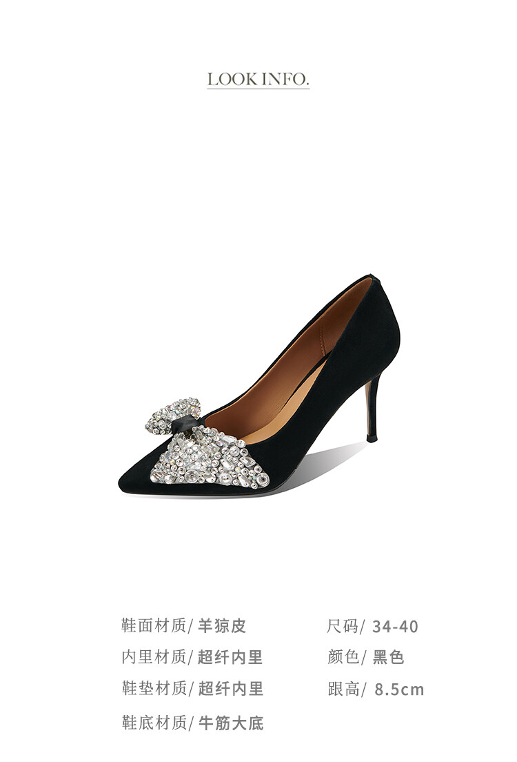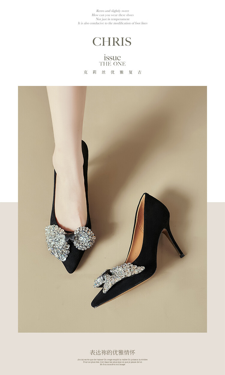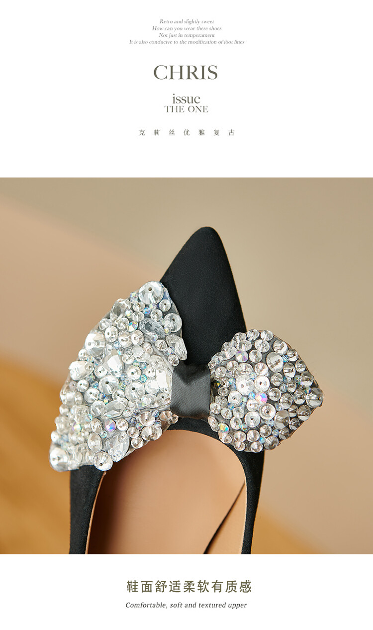 水钻高跟鞋细跟气质名媛,百搭性感尖头蝴蝶结宴会单鞋潮SY&20-2【预售5天】