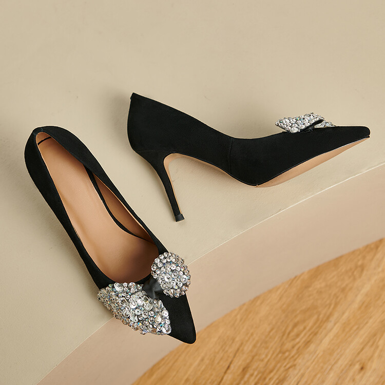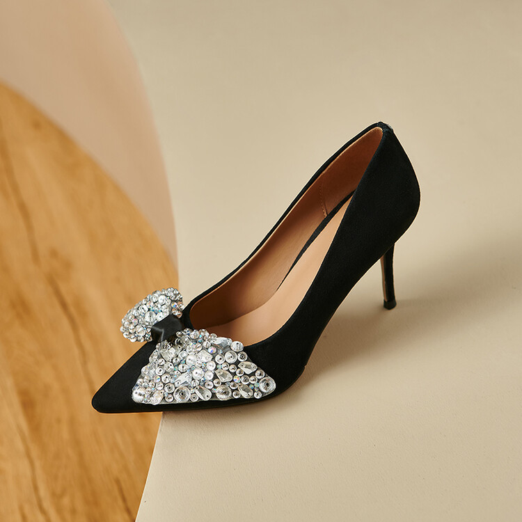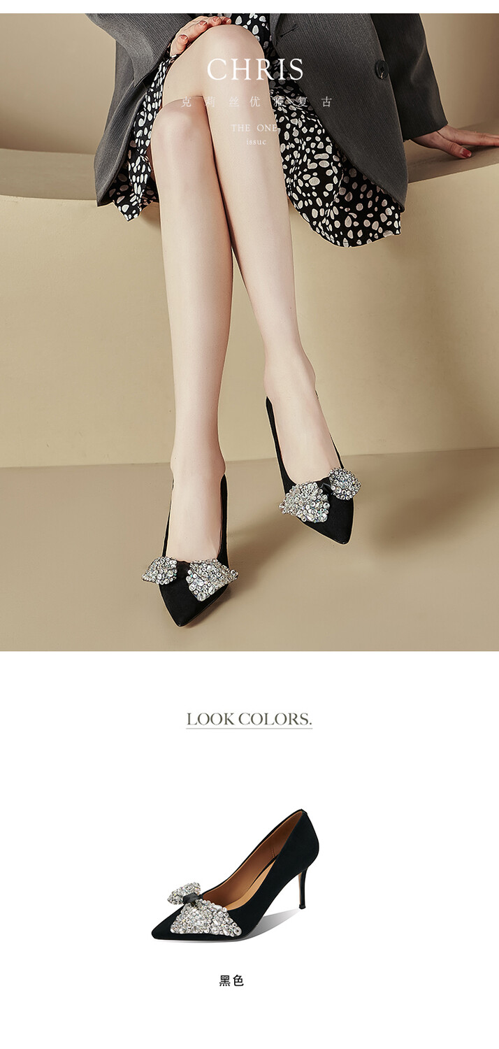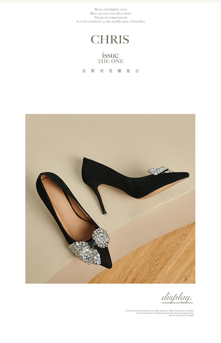 水钻高跟鞋细跟气质名媛,百搭性感尖头蝴蝶结宴会单鞋潮SY&20-2【预售5天】