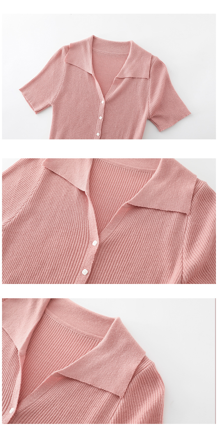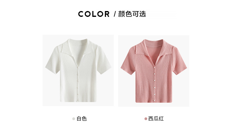 翻领针织开衫,春季新款小衫polo领气质慵懒时尚小众上衣SR-16446