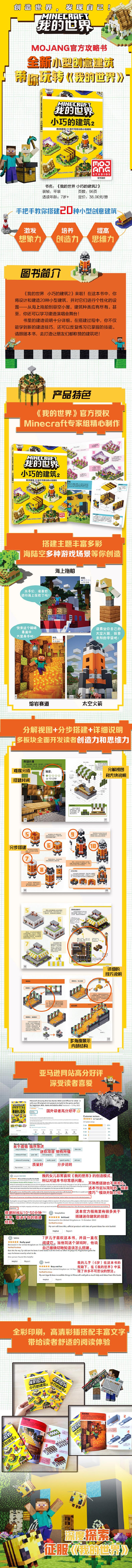 1、 MOJANG官方攻略书,全新小型创意建筑带你玩转《我的世界》。本书由魔赞(MOJANG)官方授权推出,由Minecraft专家组编写,是读者不可错过的高质量搭建教程。
