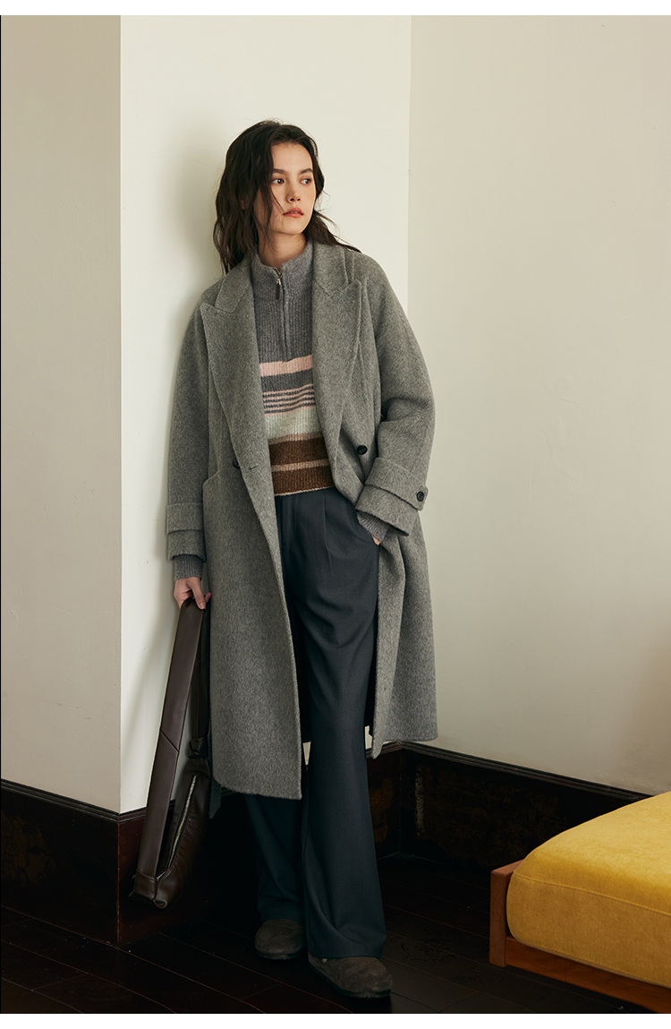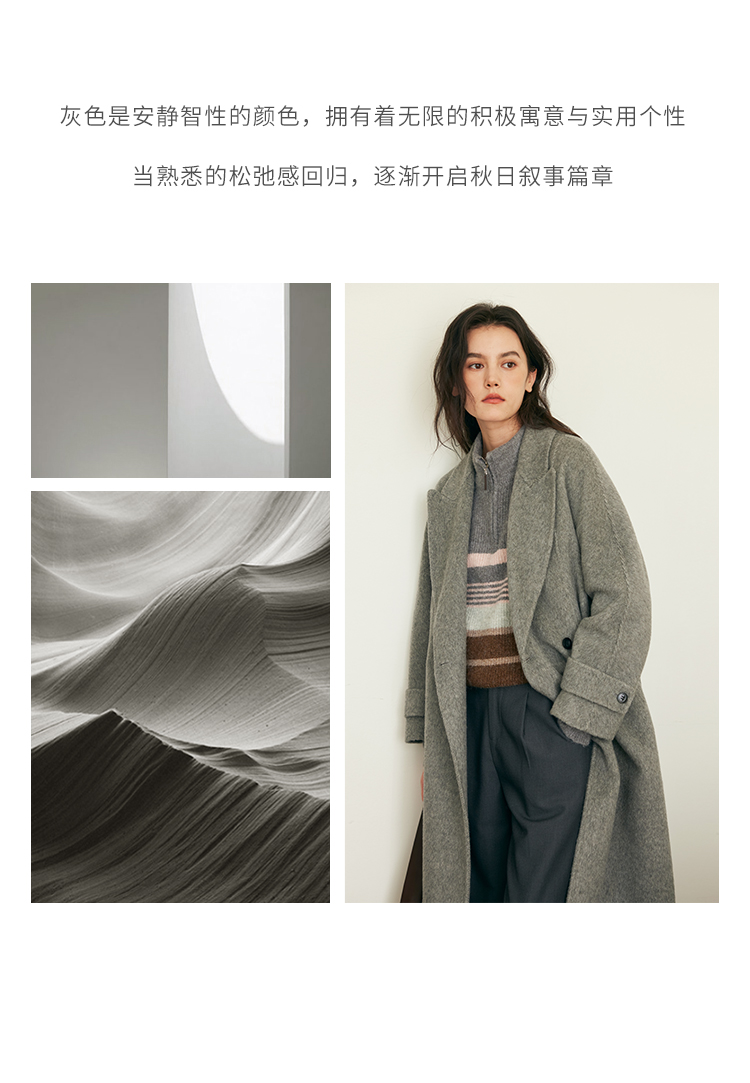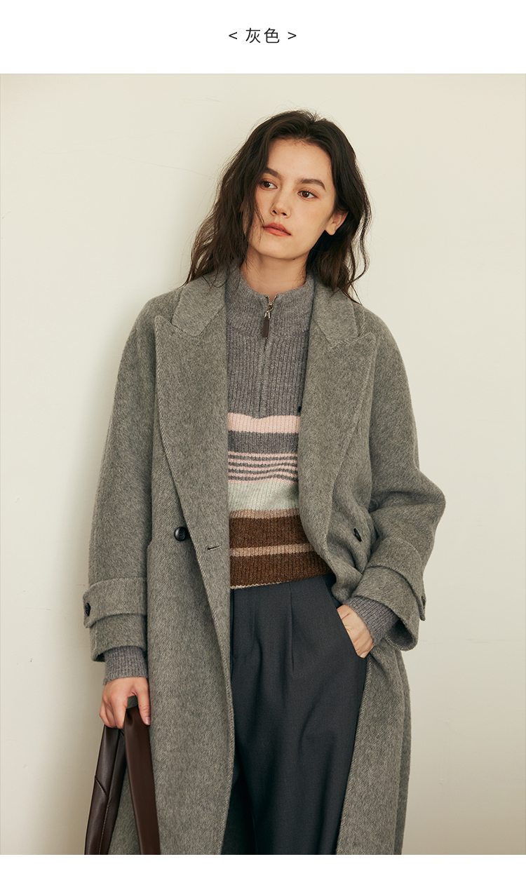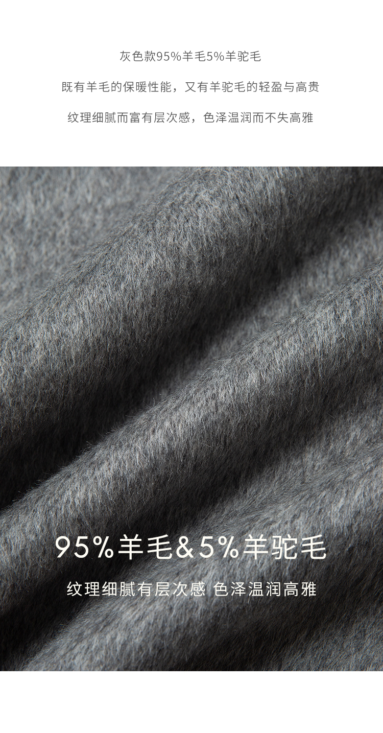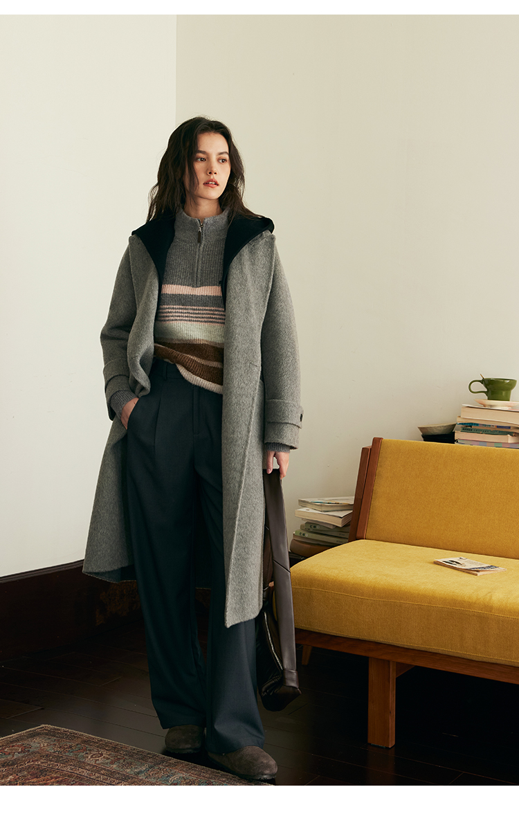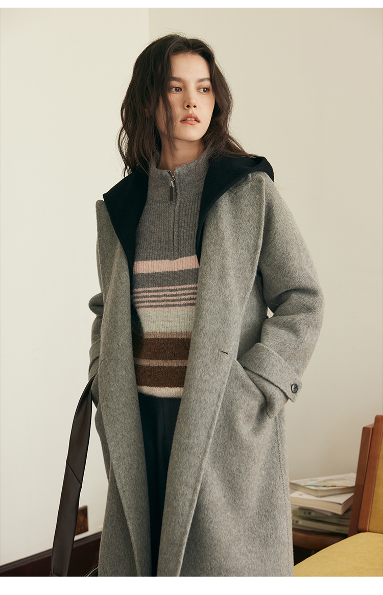 HeyDress双面羊毛大衣女秋冬复古连帽可拆卸加厚气质灰色毛呢外套