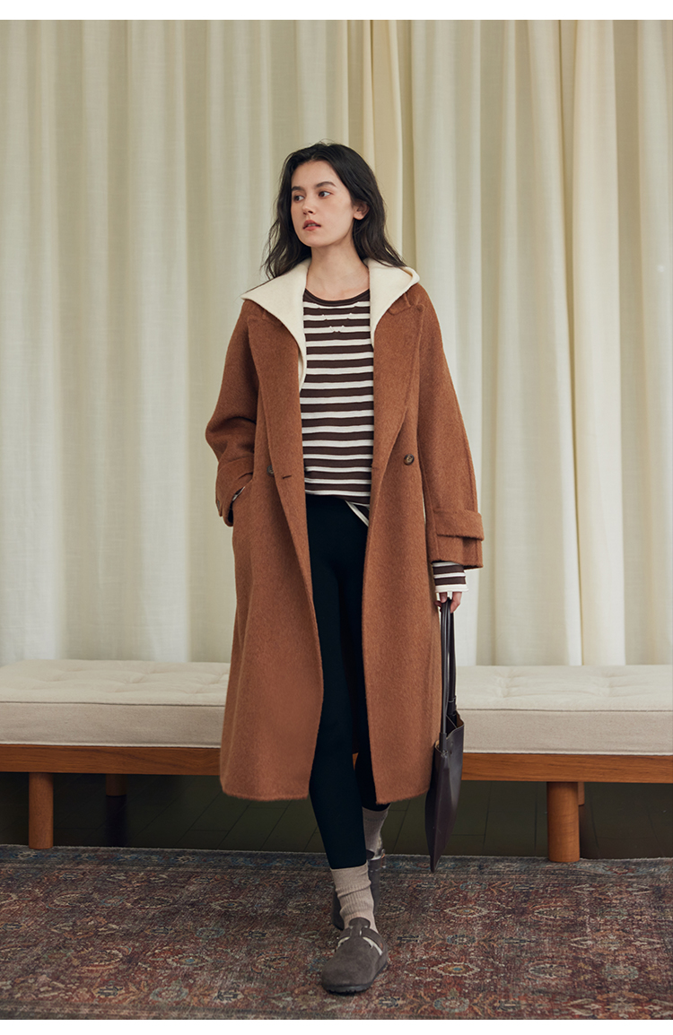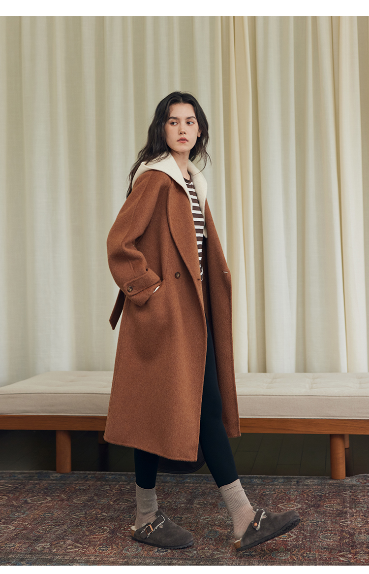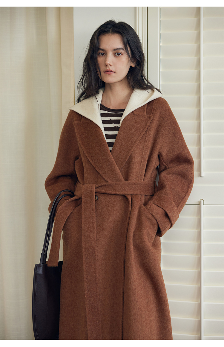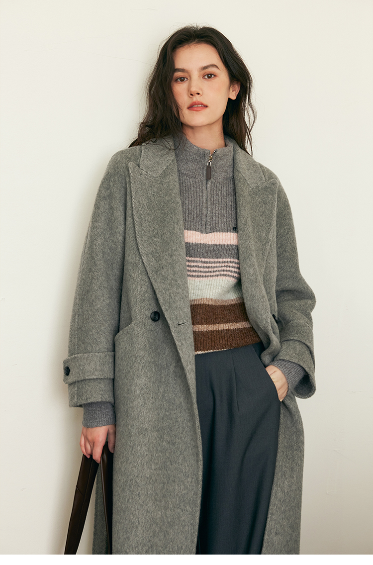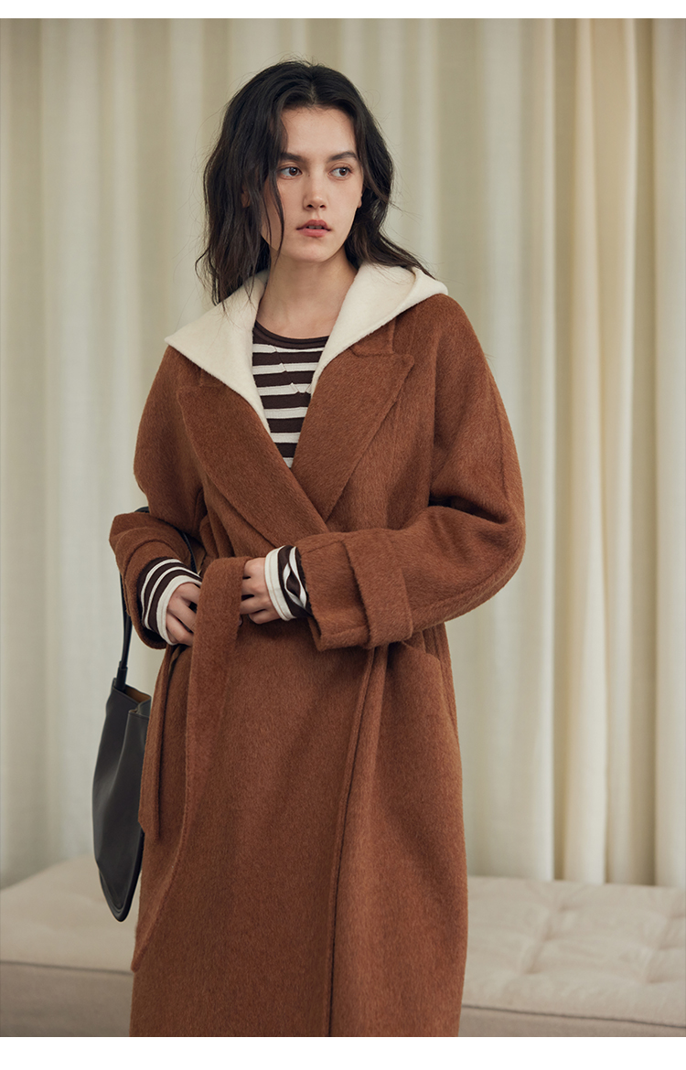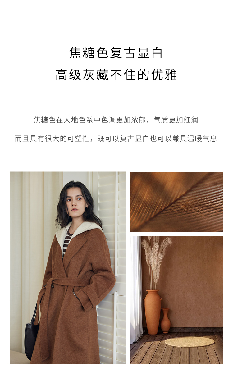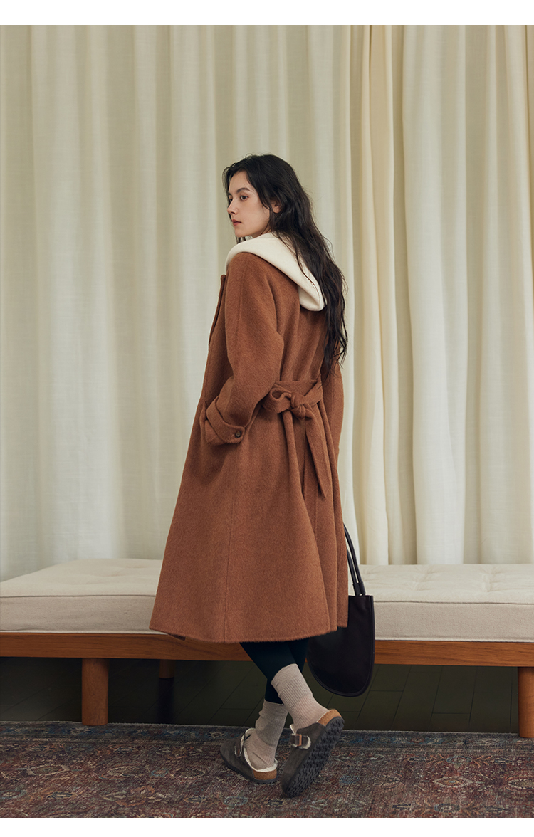 HeyDress双面羊毛大衣女秋冬复古连帽可拆卸加厚气质灰色毛呢外套
