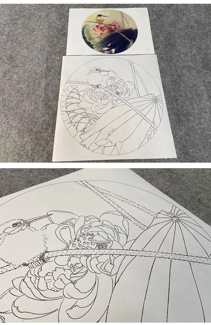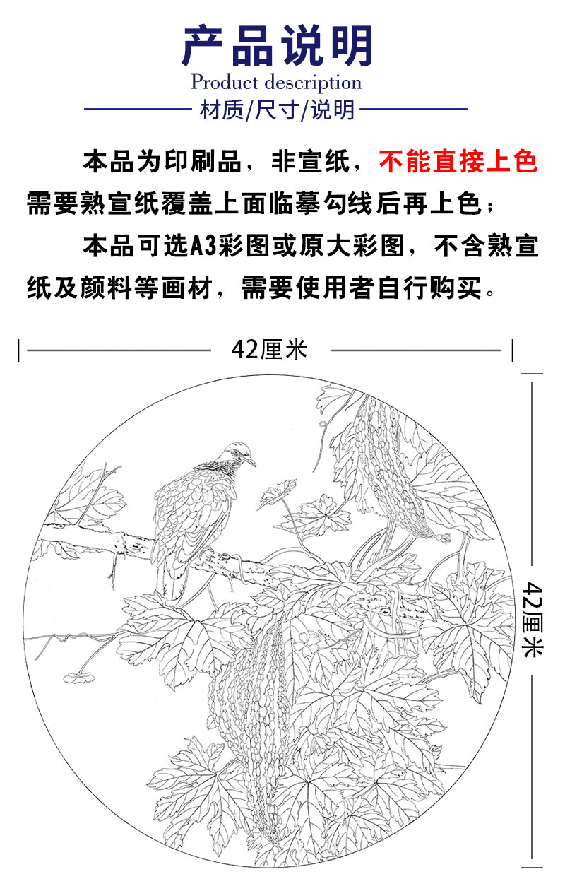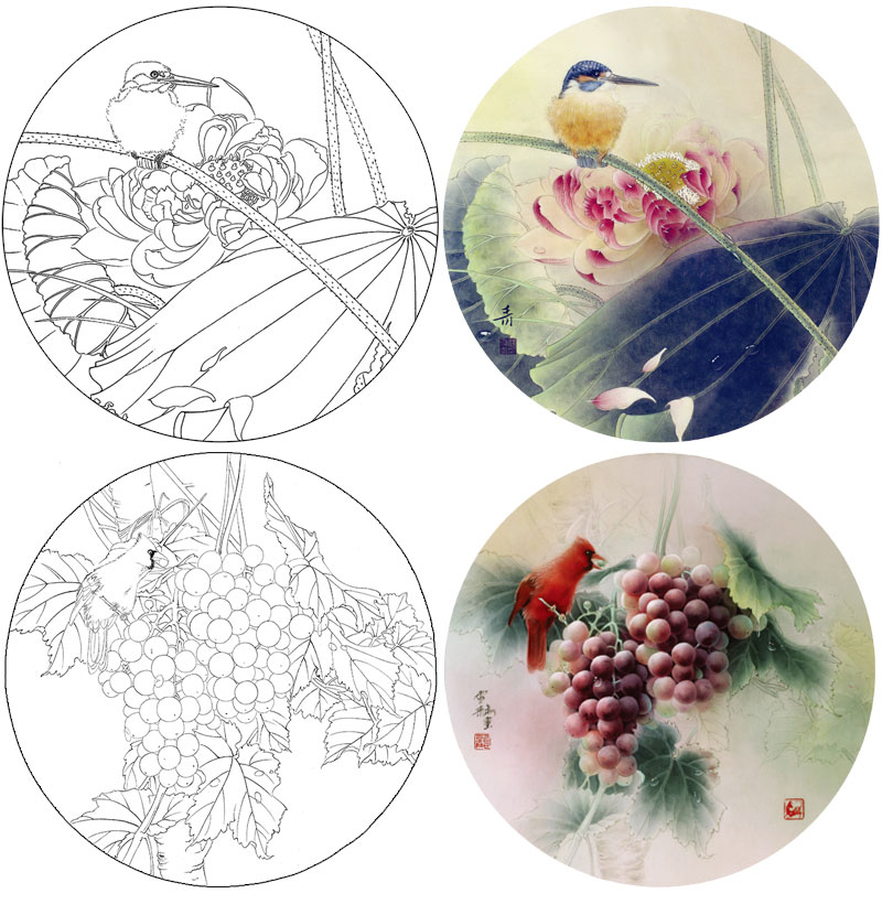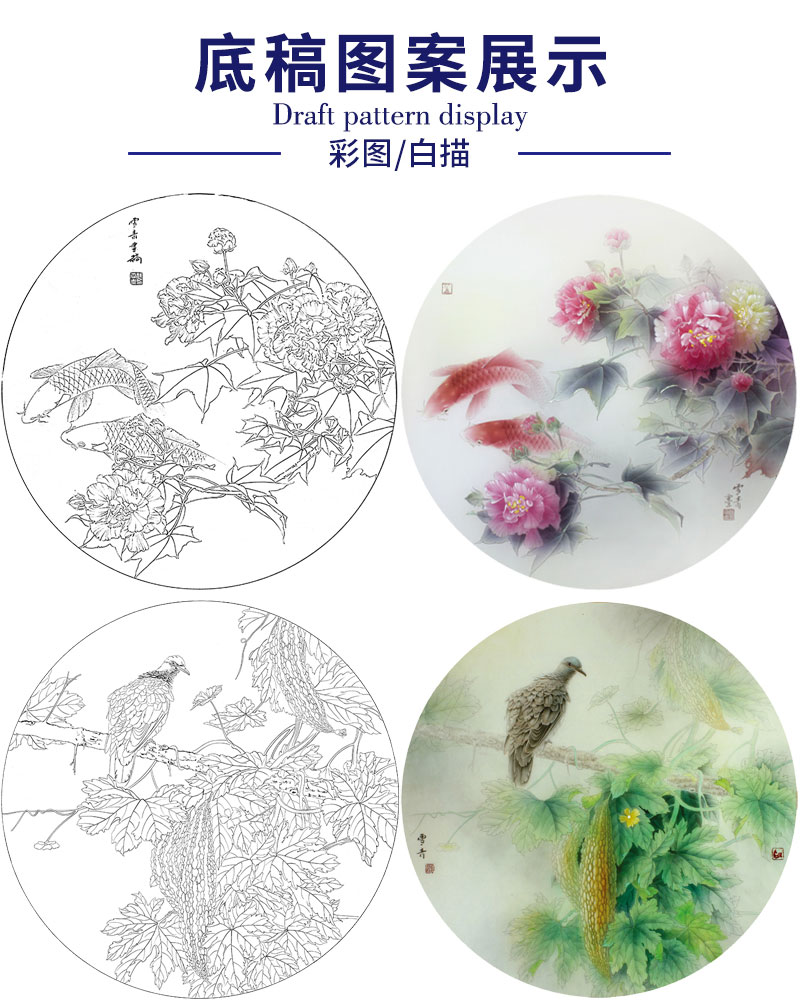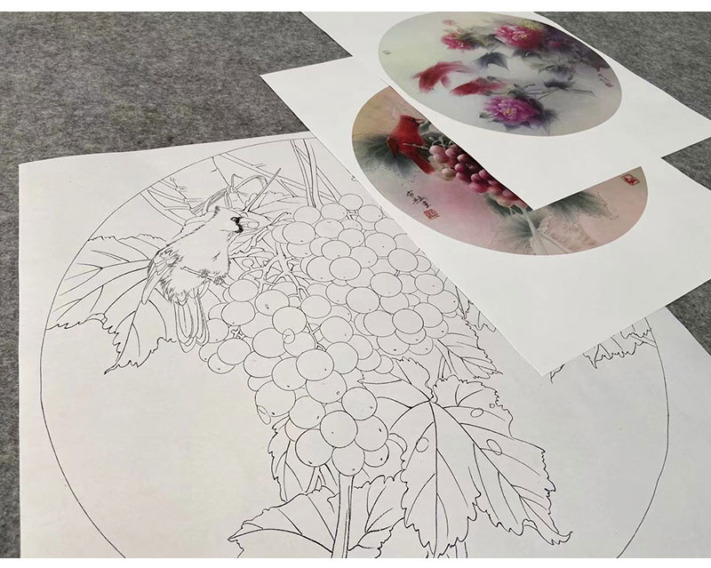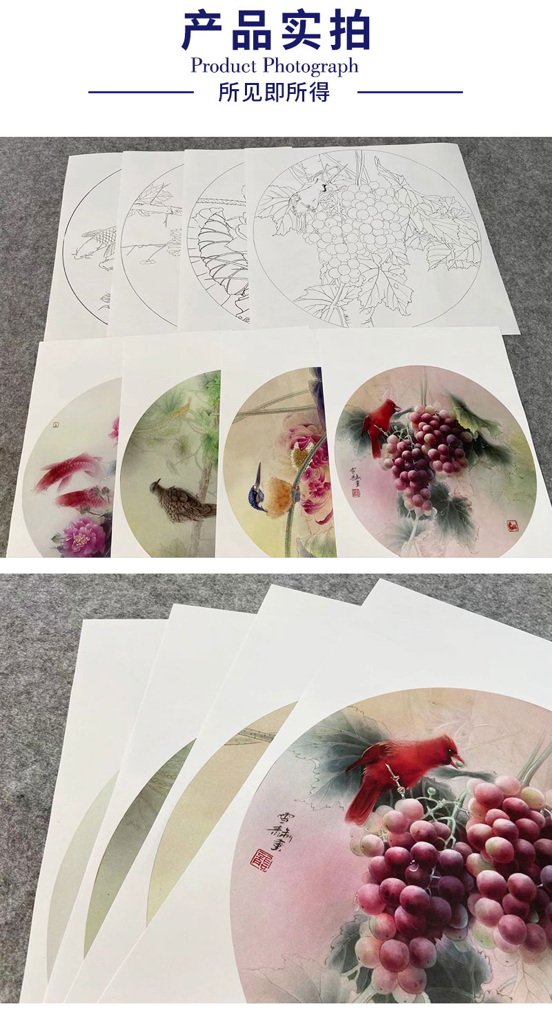 龚雪青工笔画白描底稿葡萄鲤鱼一套四张初学者尺寸42*42厘米TG03