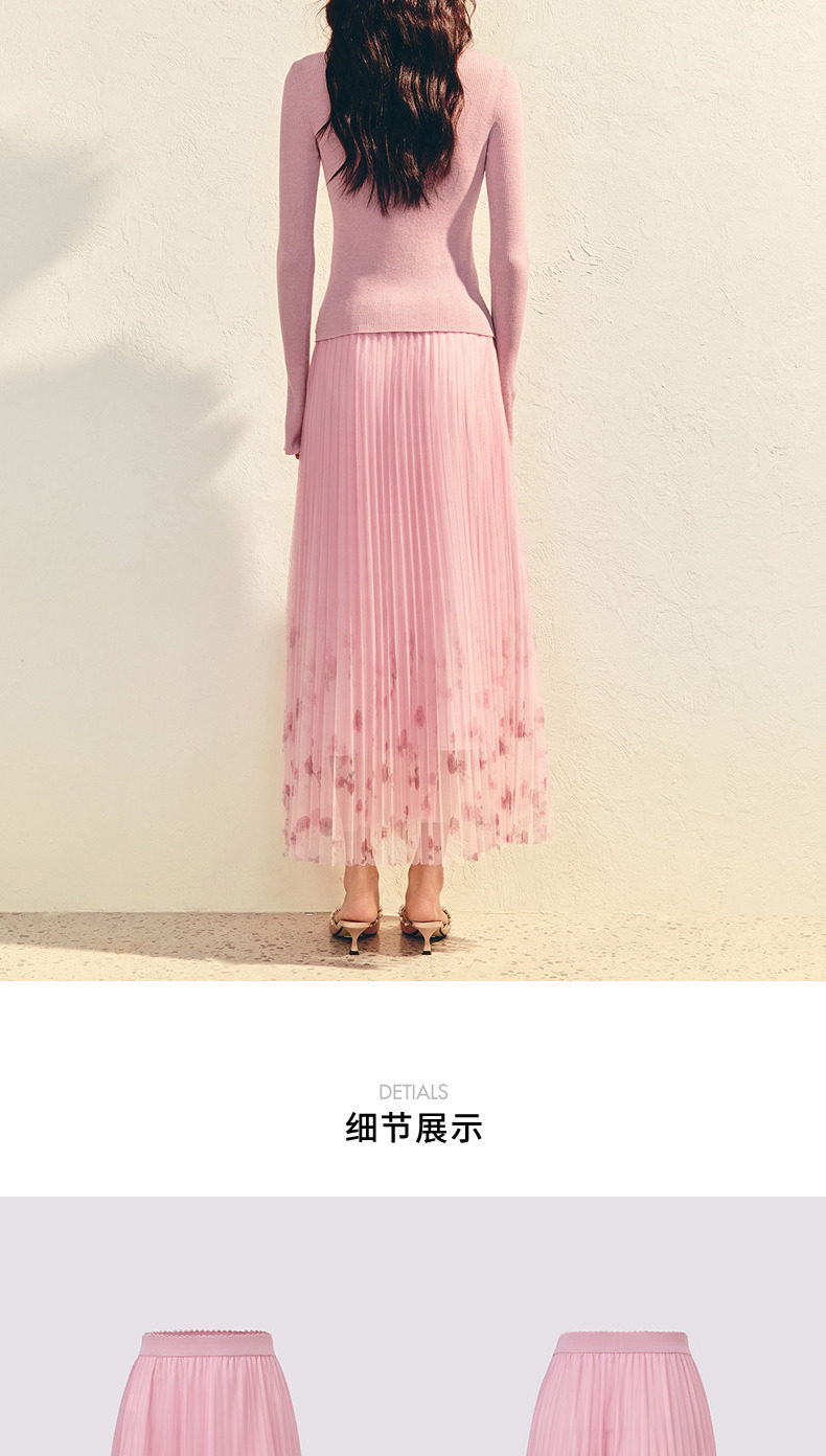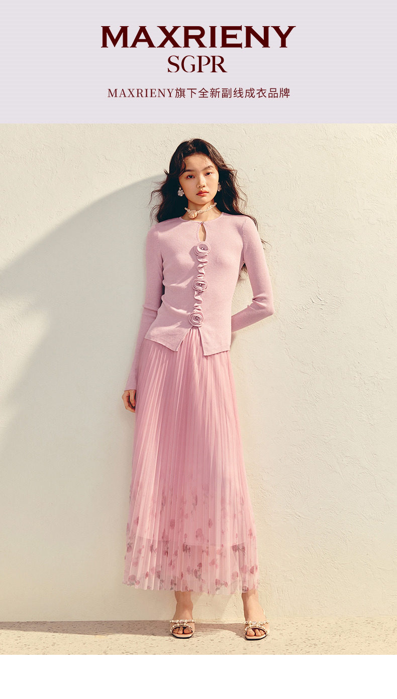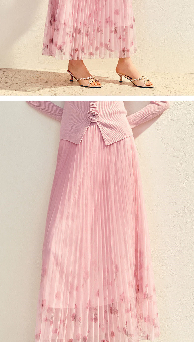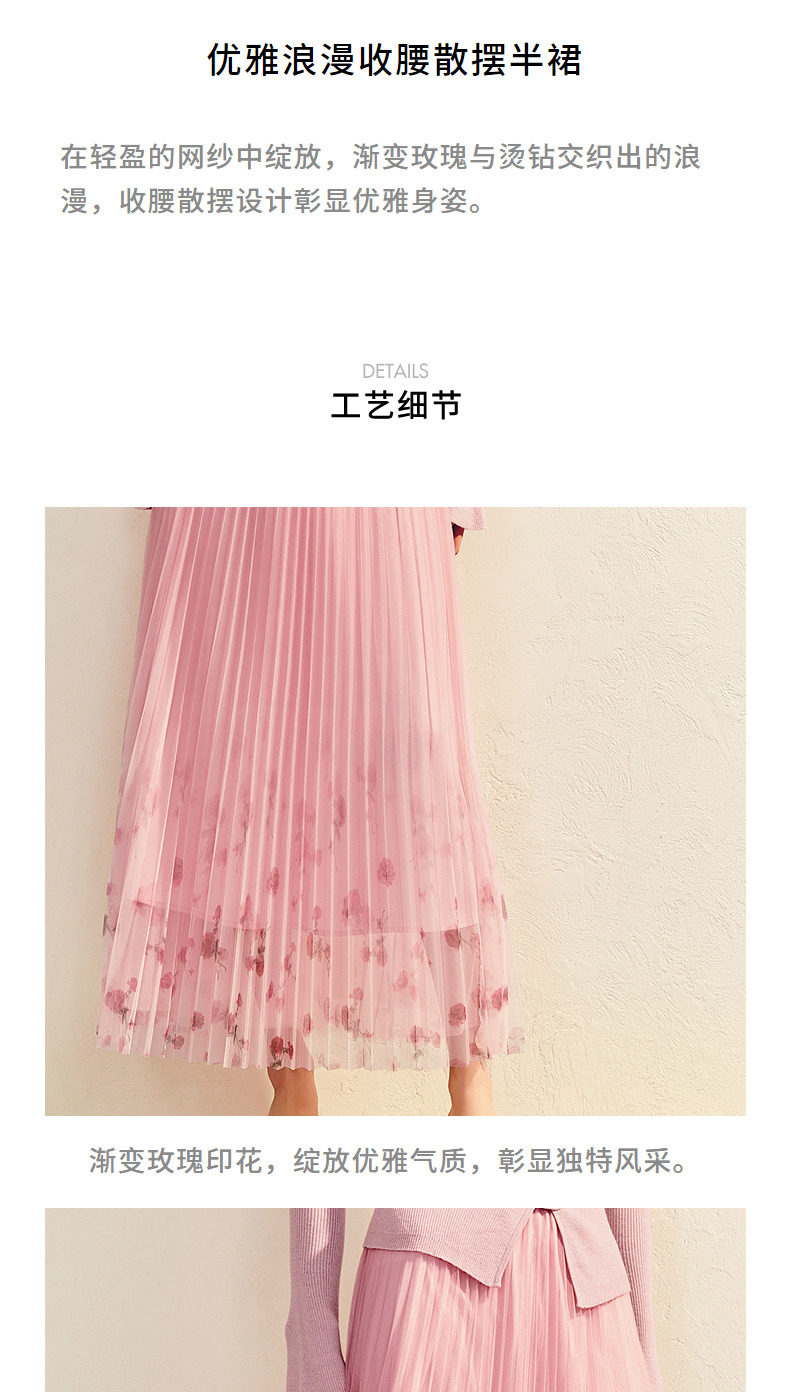 【SGPR】浪漫优雅感收腰散摆半裙渐变玫瑰印花长裙(货号:MU86SK009)