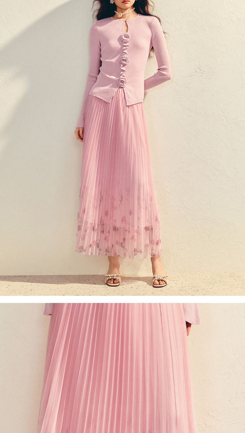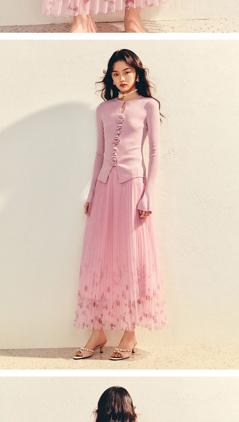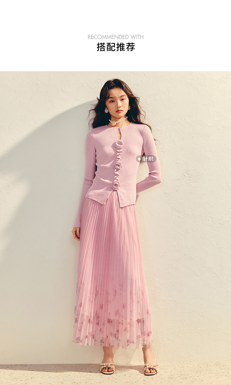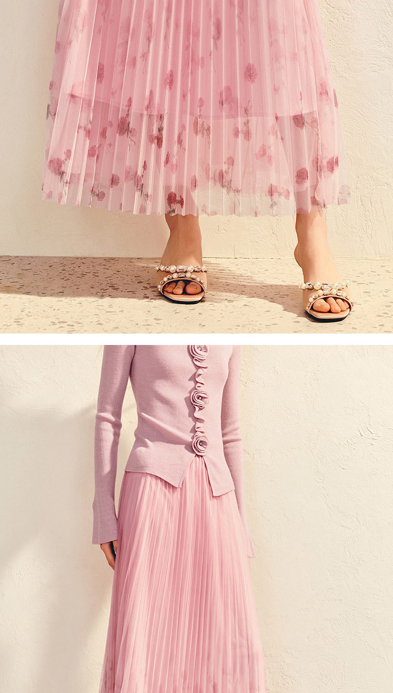 【SGPR】浪漫优雅感收腰散摆半裙渐变玫瑰印花长裙(货号:MU86SK009)