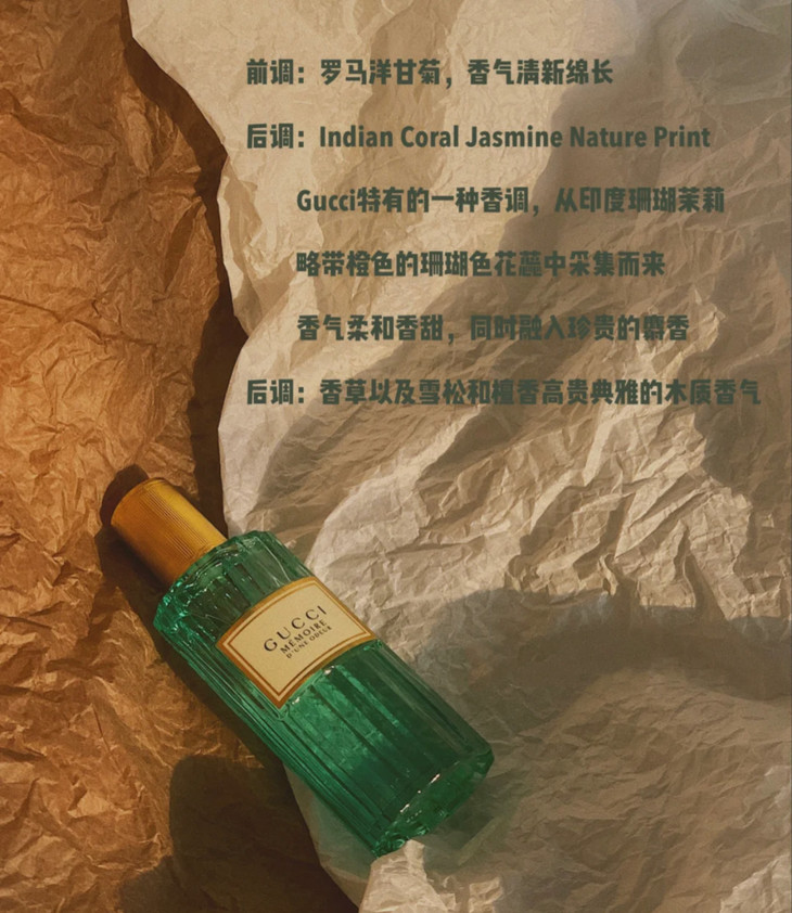 GUCCI 记忆浓香水(EDP)100ml👍Gucci 全新的香水Memoire d'une Odeur,💐“气味记忆香水”,🙅号称“包容性、无性别、无年龄”,采用一种满足年轻一代普遍需求的配方😌。主打独特中性的木质花香调🍂,初时,洋甘菊与苦杏仁打开了香香的气息🌼,让甜蜜蔓延开来,渐渐地印度珊瑚茉莉和麝香融合下🌷,变得柔软细腻,后来深邃而温和的麝香与檀木香和雪松的木质调🍁,混合在一起变得非常浓郁清澈。👫中性香,男女都适用。