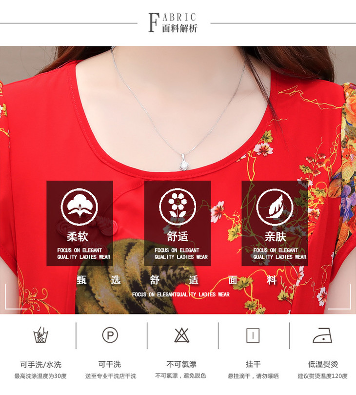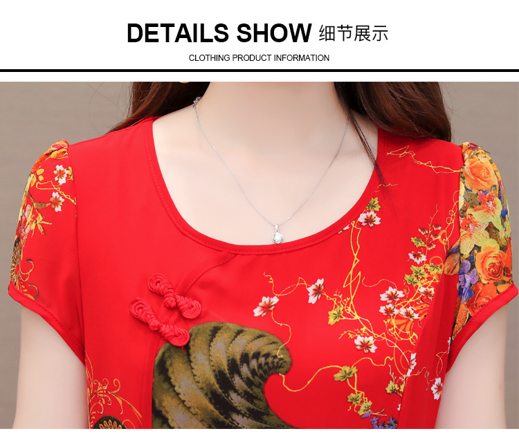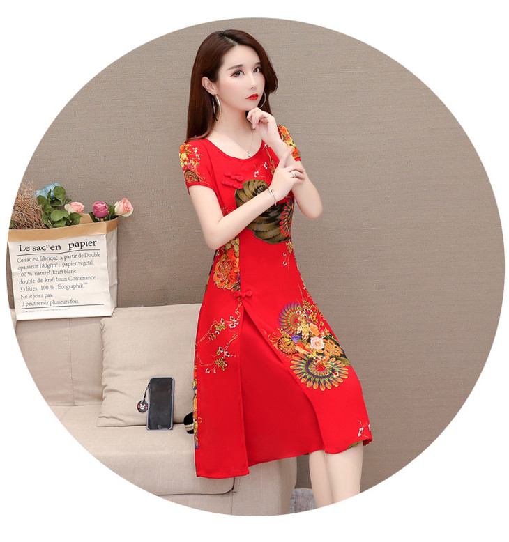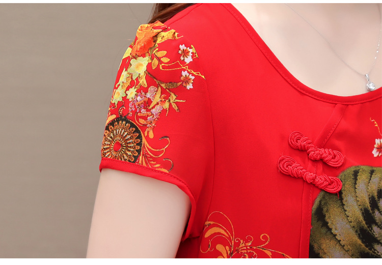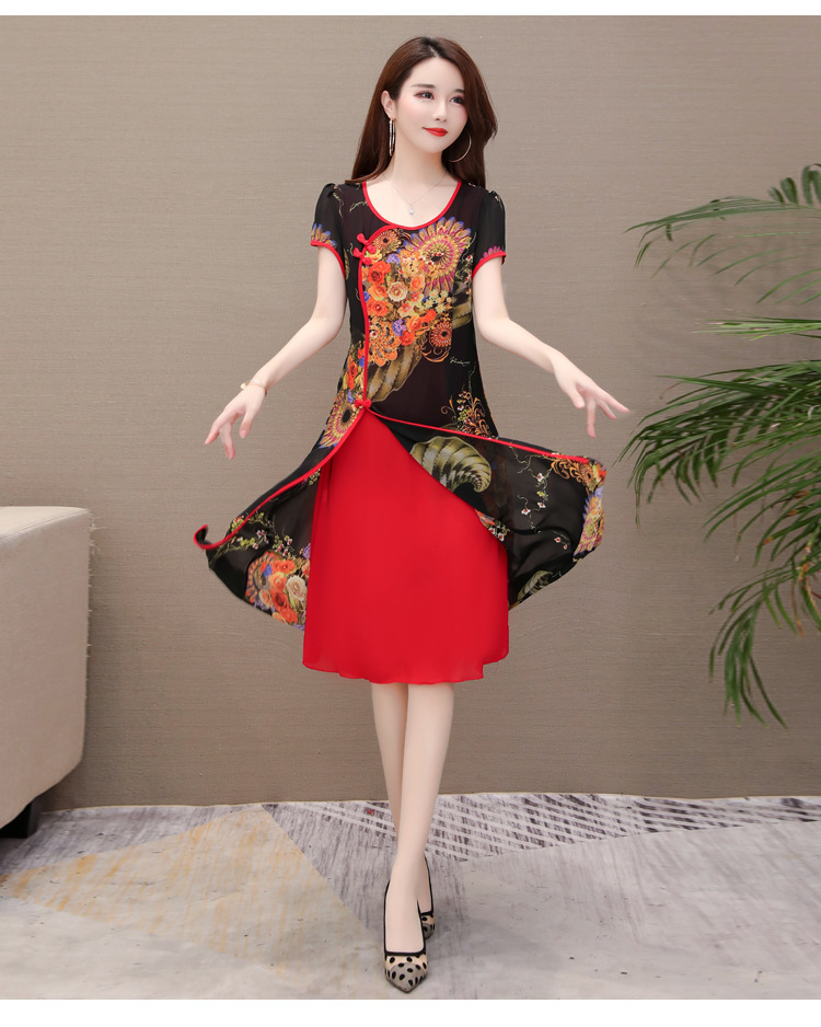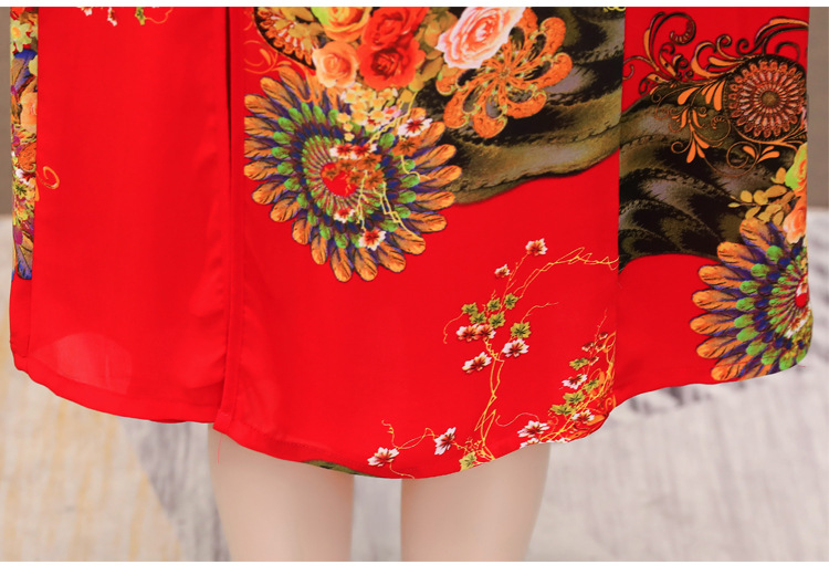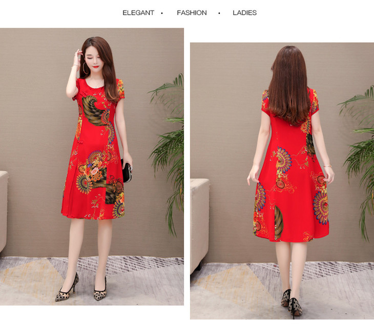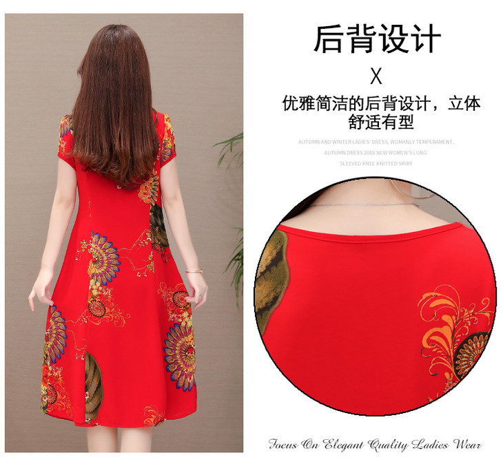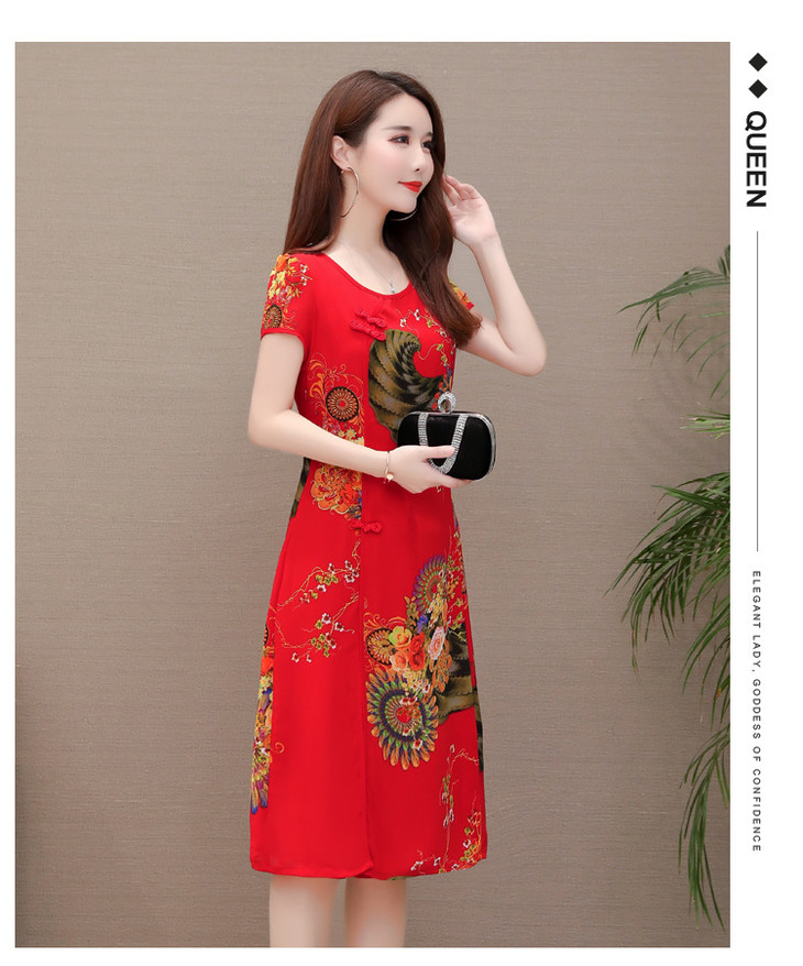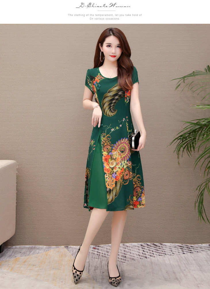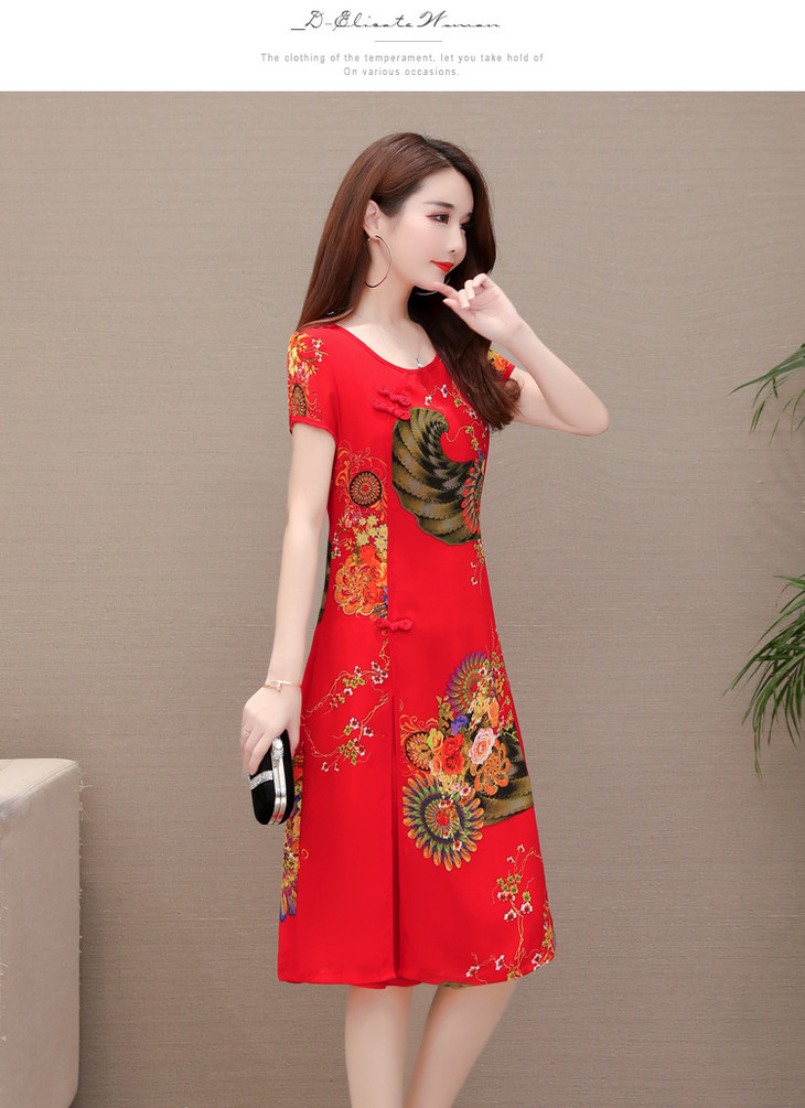 YPY 14916 阔太太连衣裙印花中长款中老年遮肚子改良民族风旗袍式