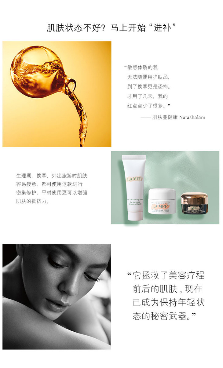 精美原装礼盒包装【LA MER海蓝之谜经典小样四件套】精粹水30ml+洗面奶30ml+面霜7ml+眼霜5ml 套装
