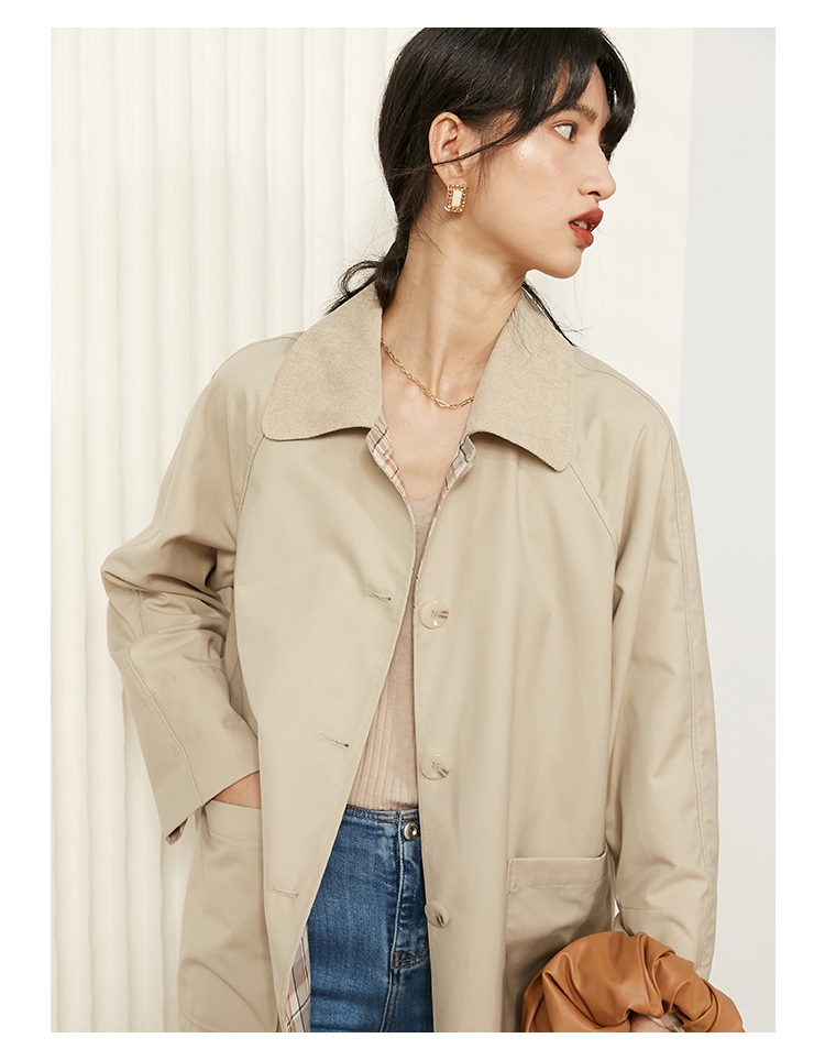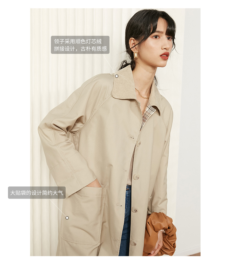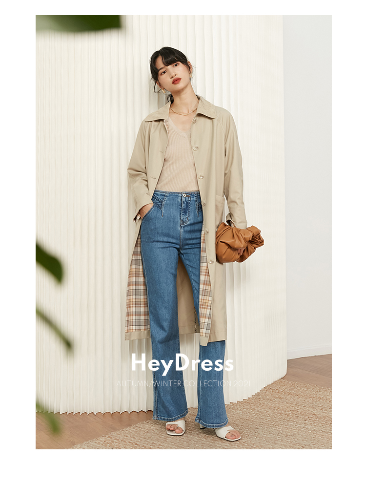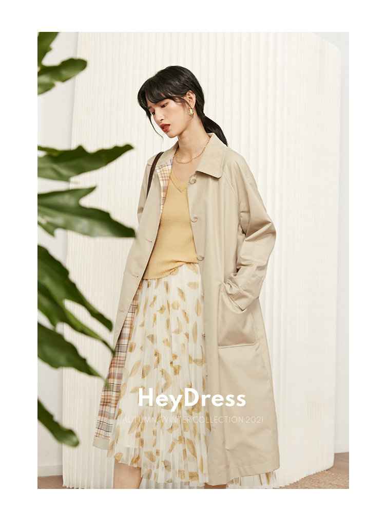 HeyDress法式复古风衣女中长款新款简约气质设计感外套
