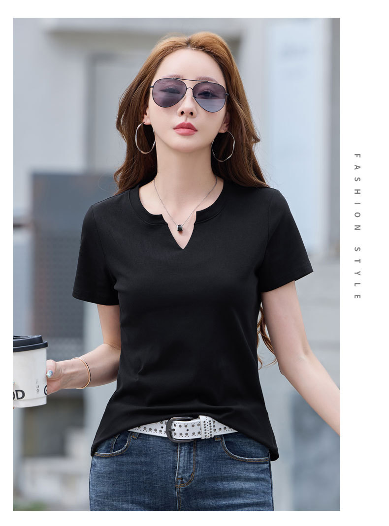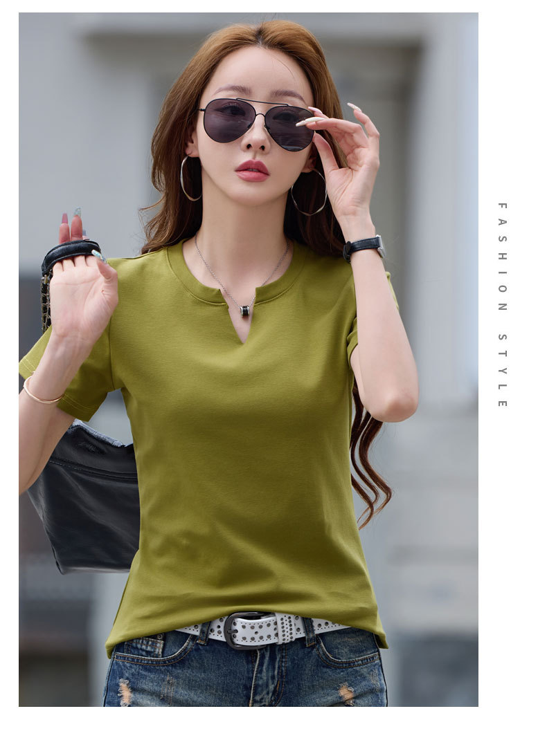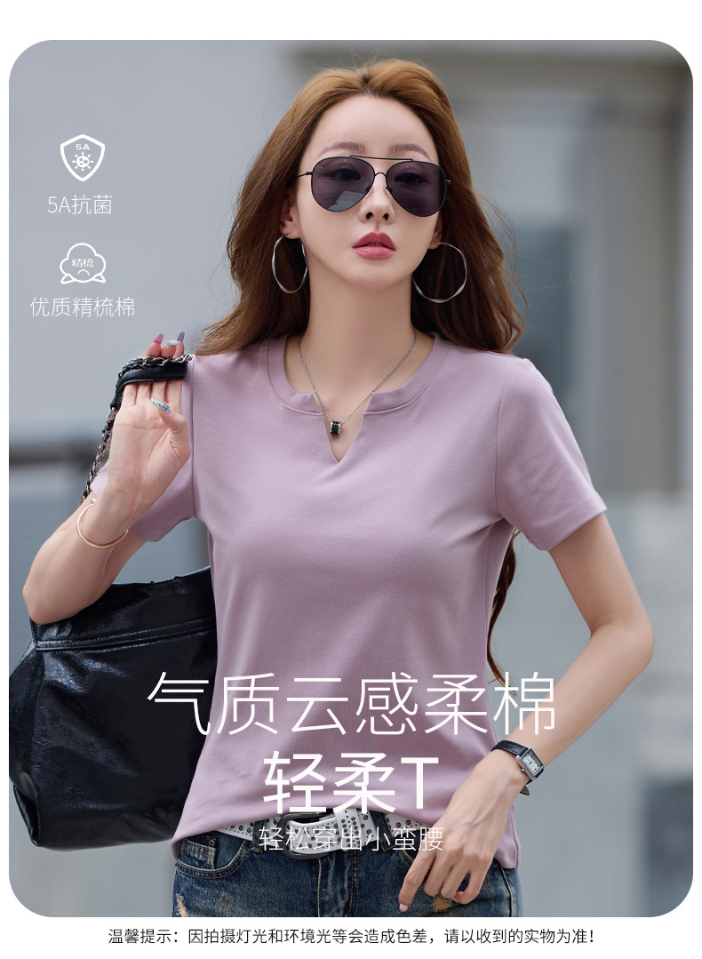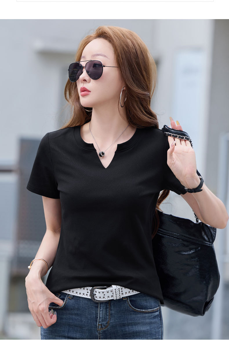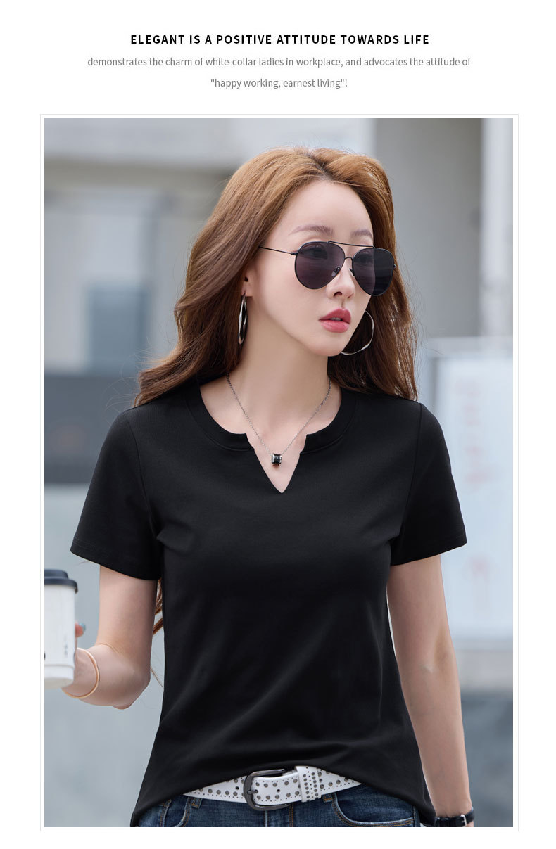 百媚生 棉质短袖小V领纯色T恤6621
