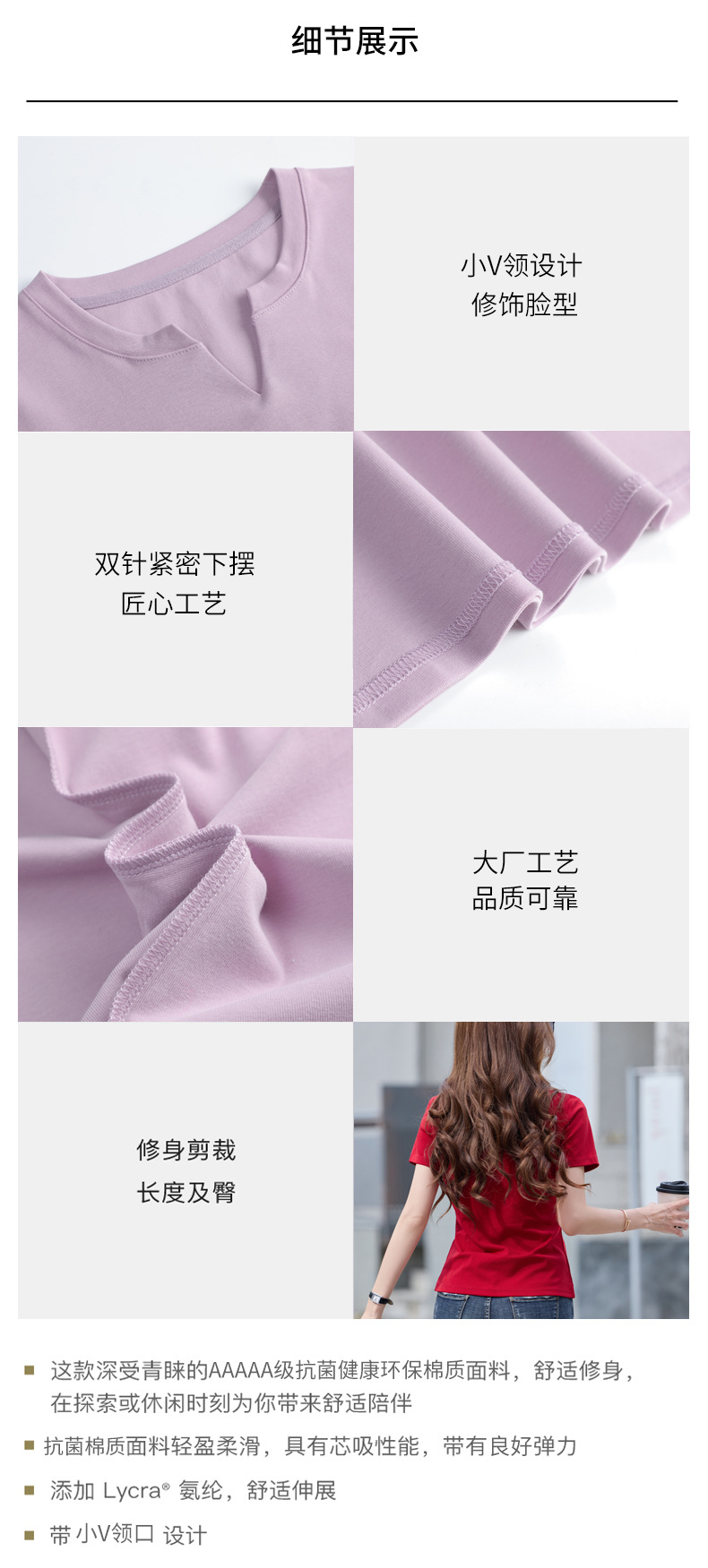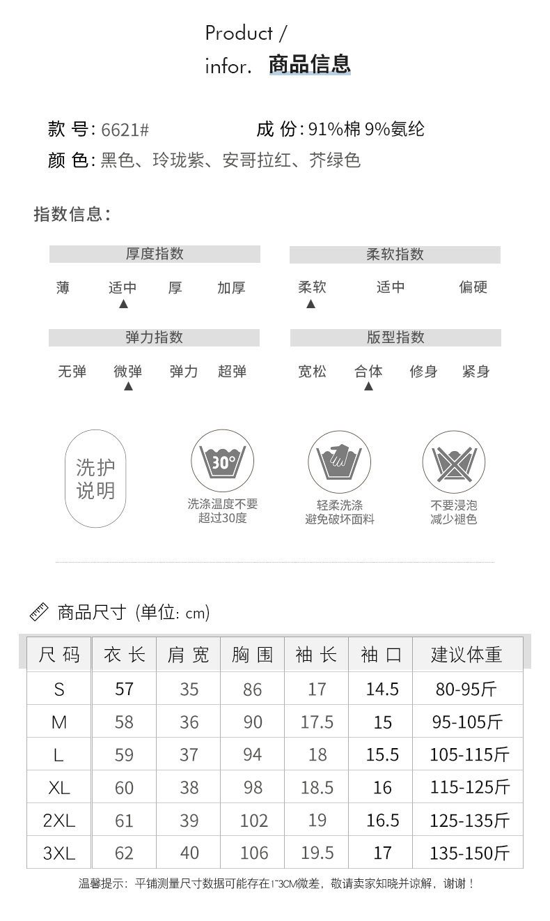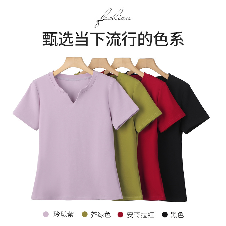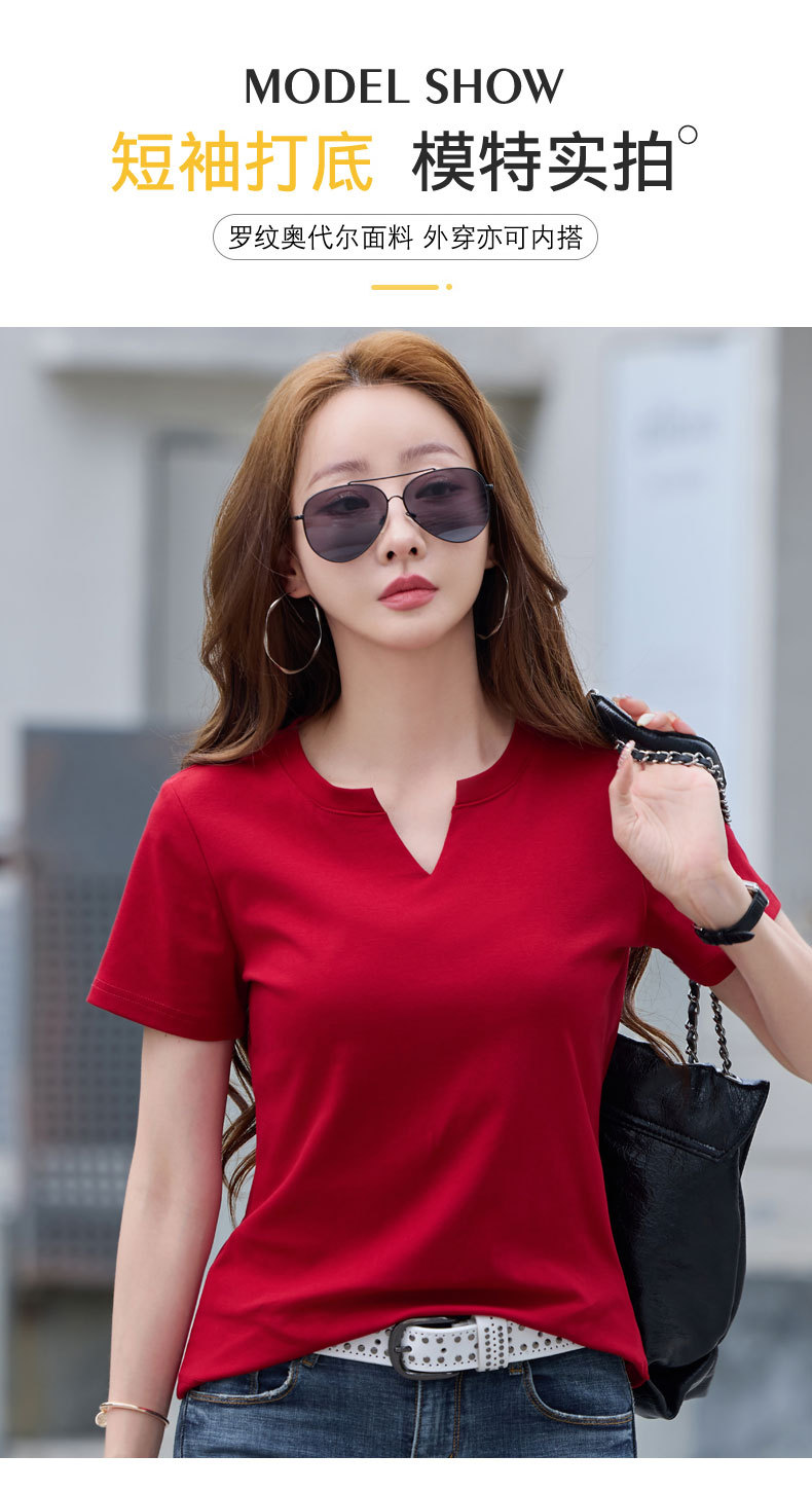 百媚生 棉质短袖小V领纯色T恤6621