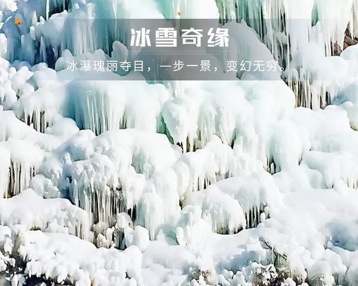 云瀑沟冰瀑是京郊冬日必打卡的自然奇观,核心亮点十足。冰瀑依山势蜿蜒垂落,百米高的 “珍珠帘” 与雪莲花般的冰雕形态各异,在阳光照射下折射璀璨光芒,蓝天映衬下的蓝冰更显梦幻。