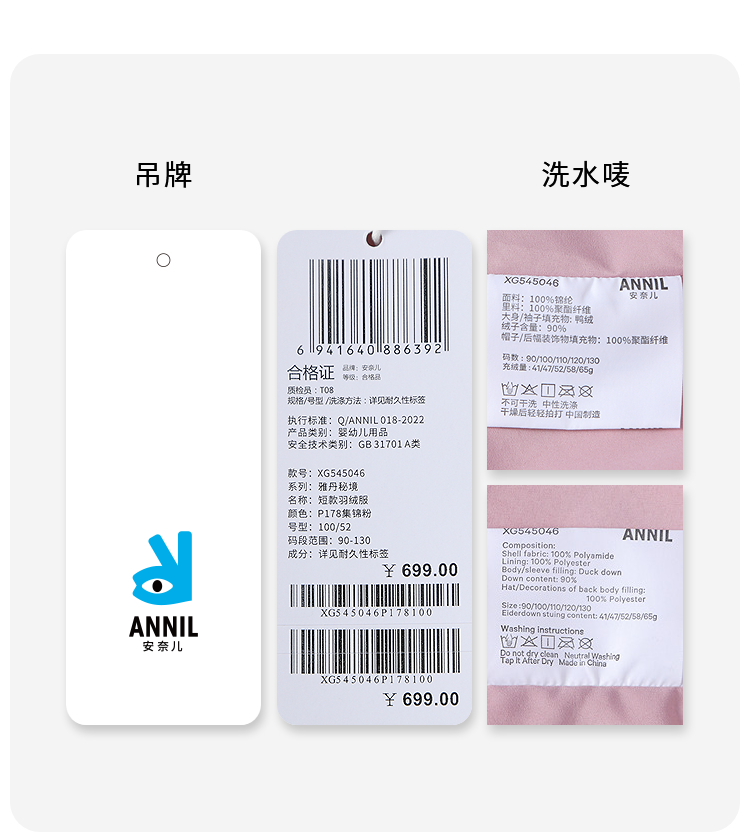 【实体店同款】女童短款羽绒服冬季新款安奈儿童装XG545046