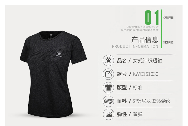 卡尔美 女运动短袖T恤 夏季速干透气瑜伽健身T恤女子跑步短T