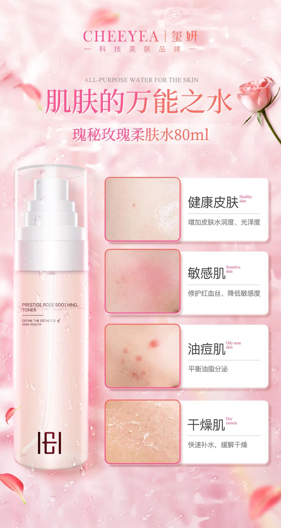玺妍瑰秘玫瑰柔肤水80ml小粉瓶