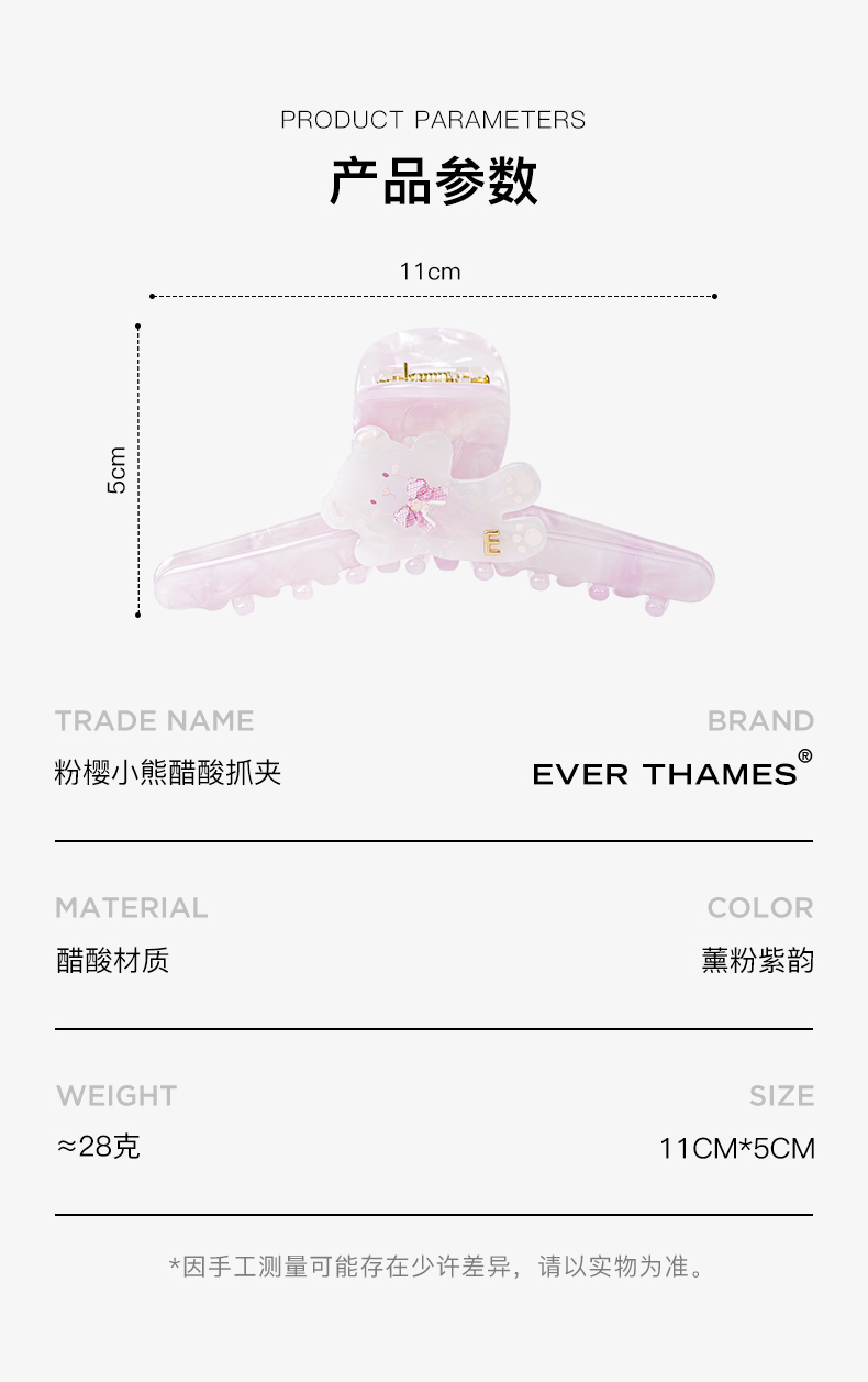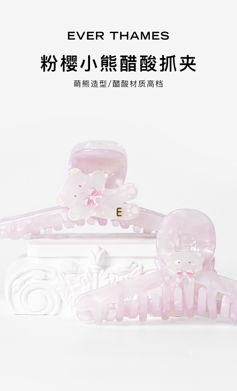 EVER THAMES 醋酸大号抓夹简约时尚气质发饰可爱小熊 鲨鱼夹