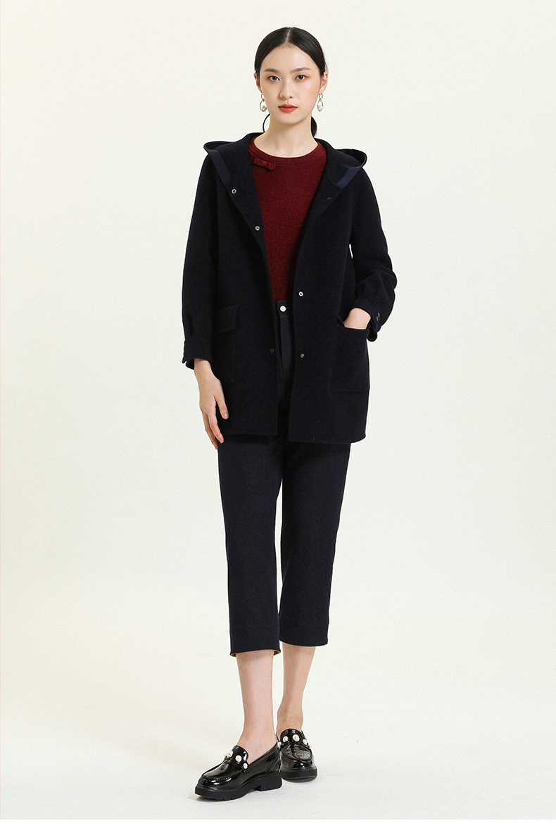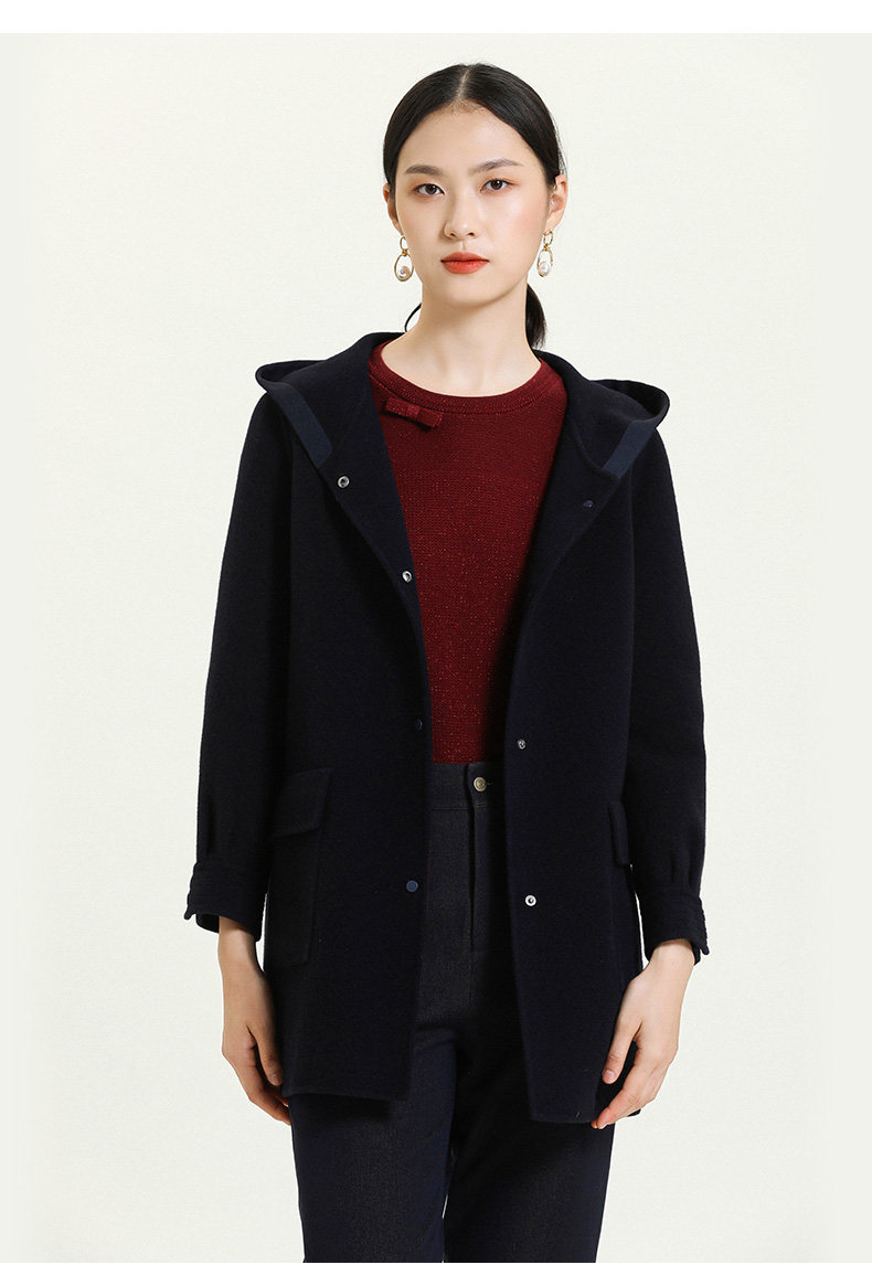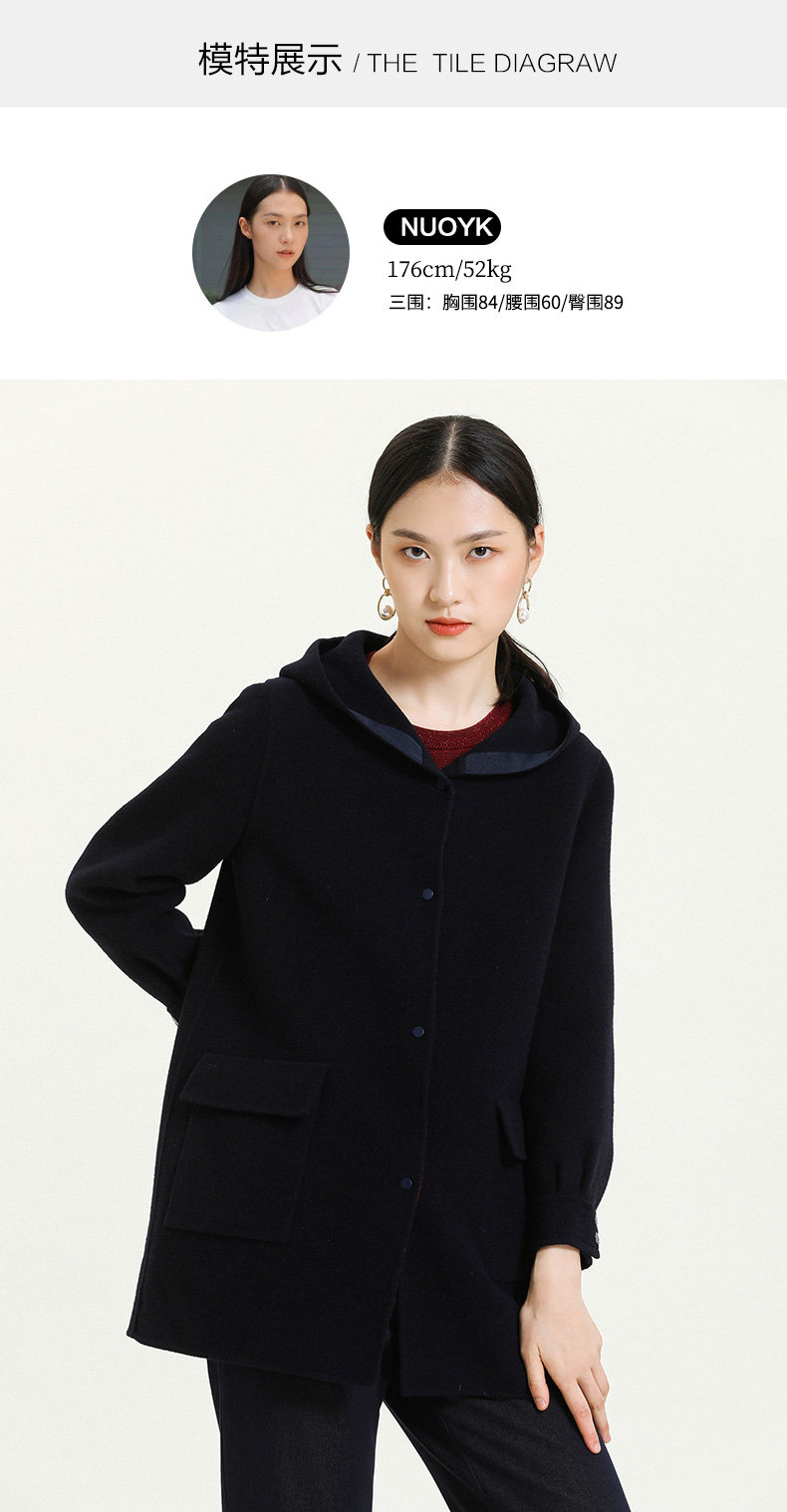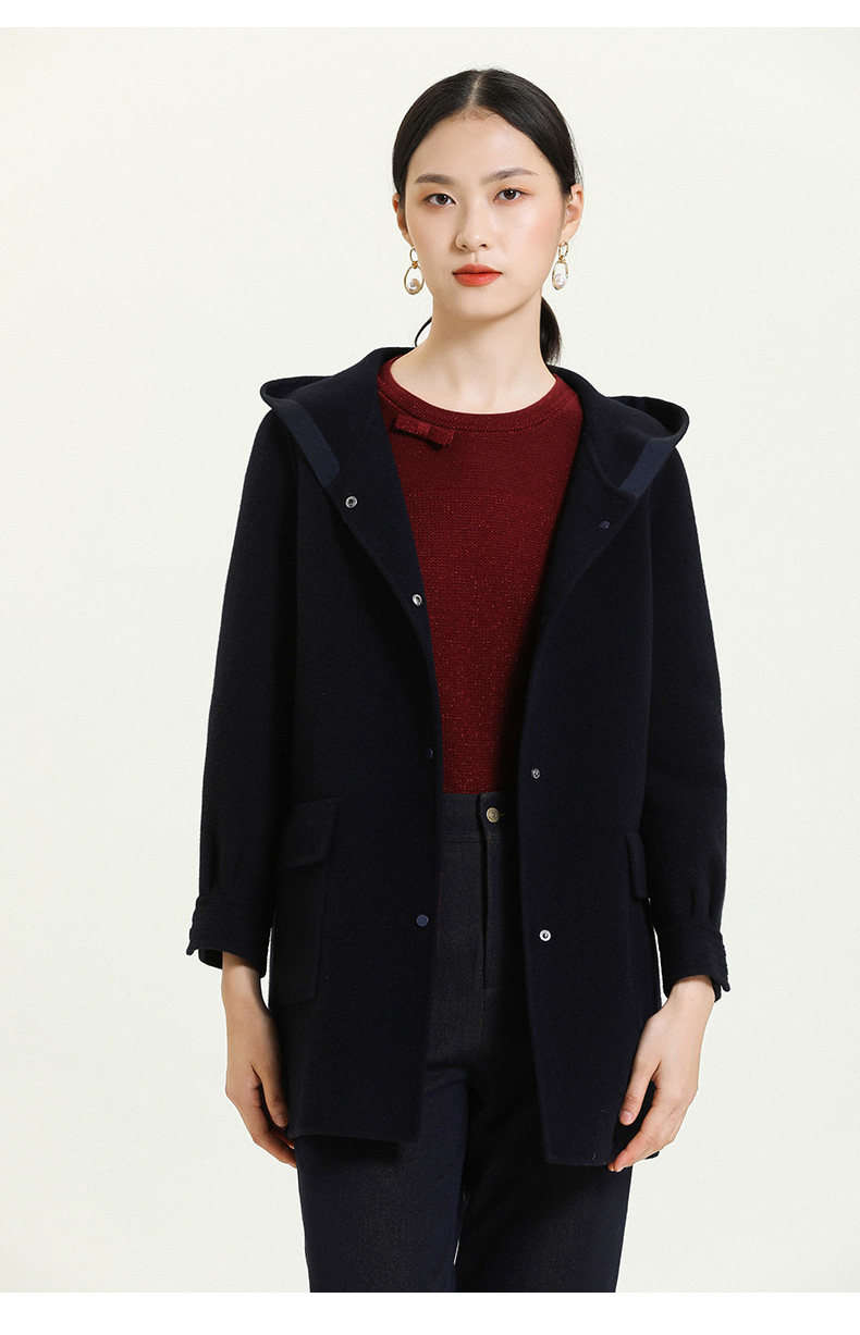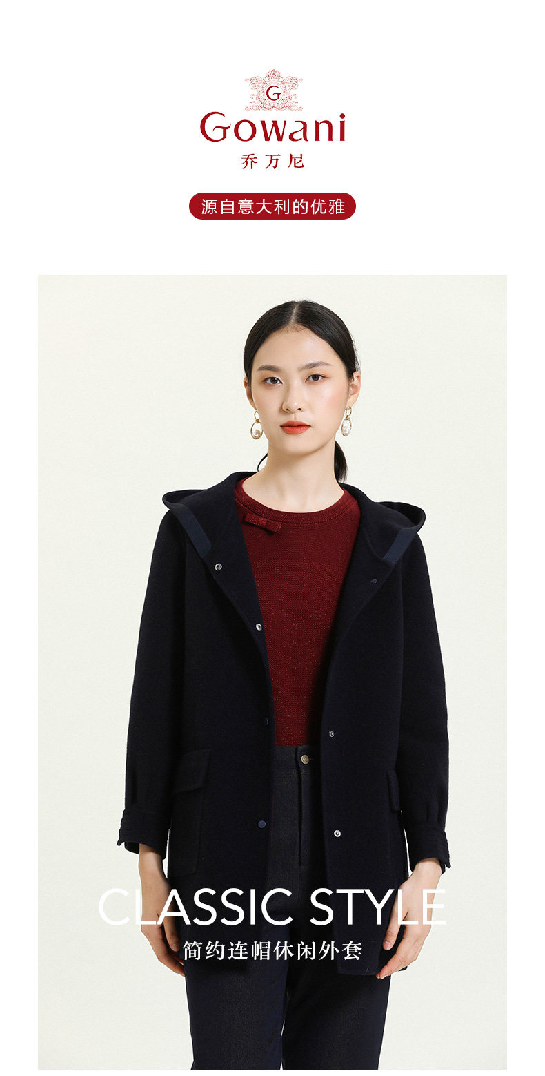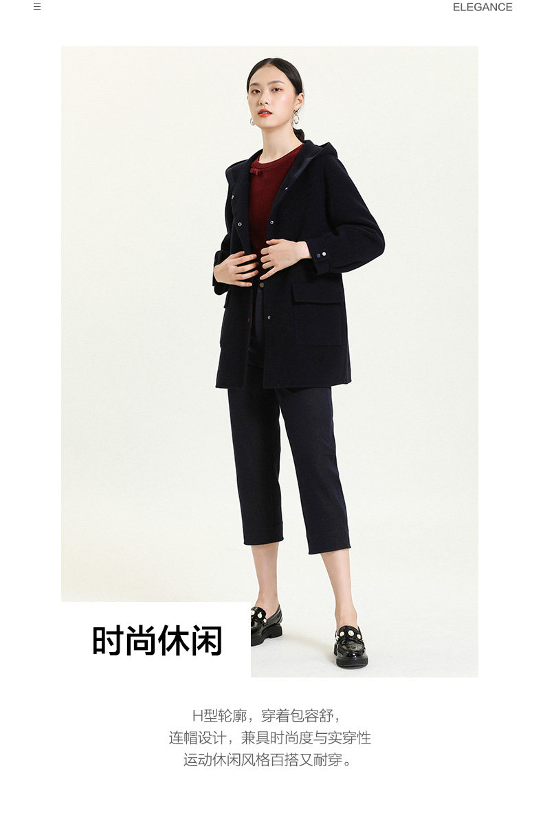 【羊绒】乔万尼冬季毛呢外套纯色简洁大方设计感双面羊毛大衣女ES4A320
