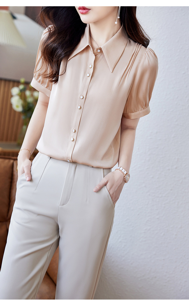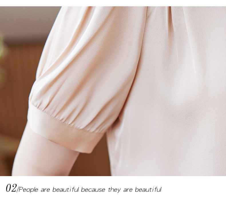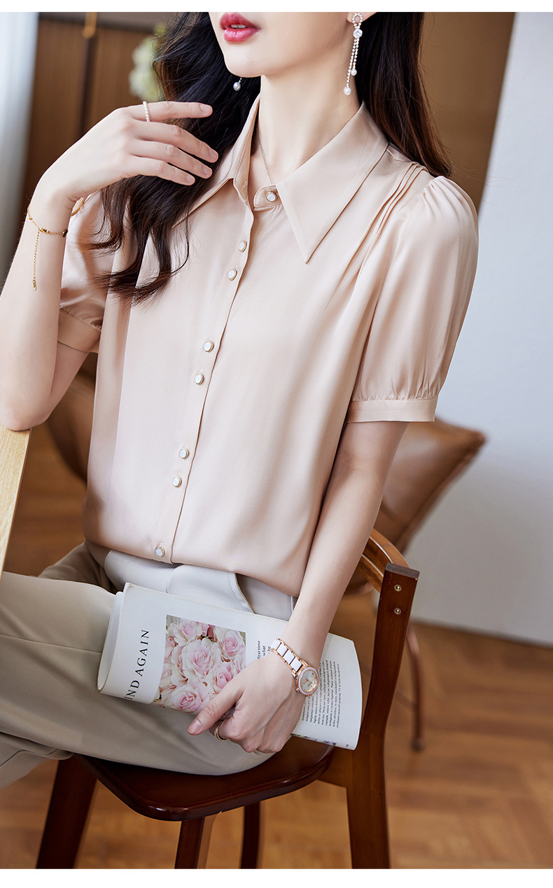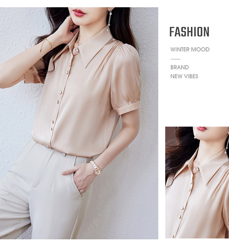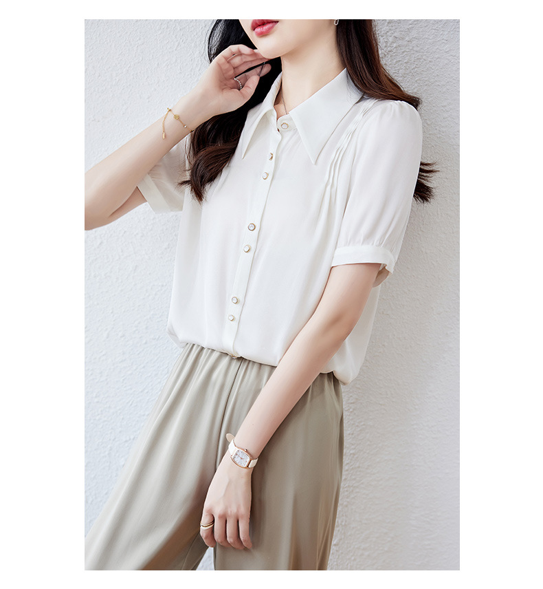 桑蚕丝短袖衬衫夏上新气质翻领优雅休闲设计感垂感上衣HR-WL61689