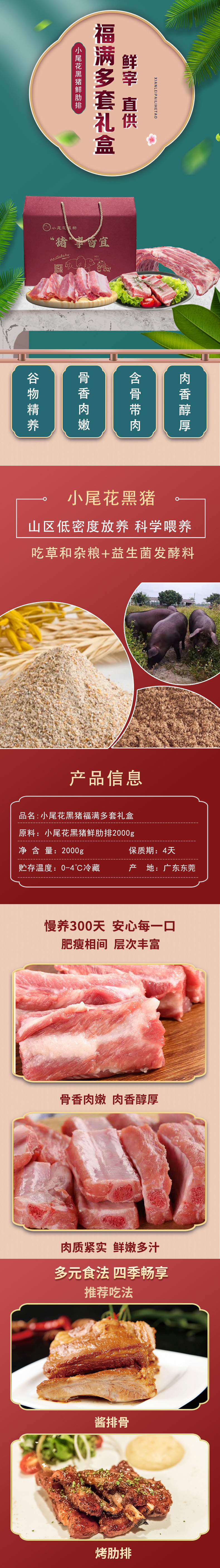 小尾花黑猪福满多礼盒 内含小尾花肋排 广东顺丰包邮 2000g