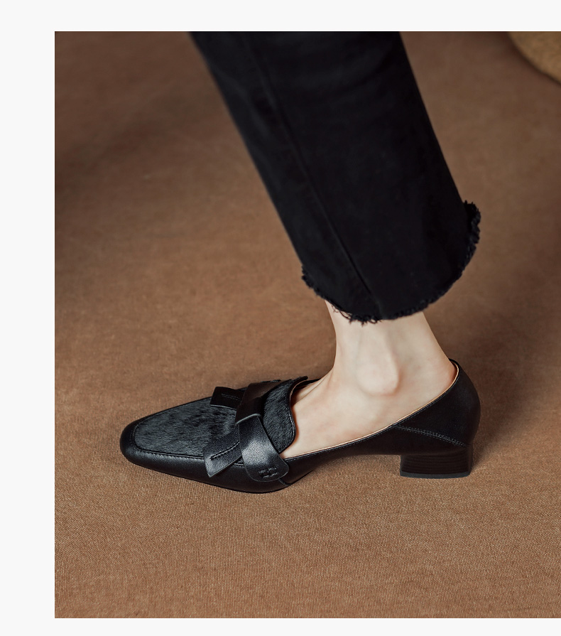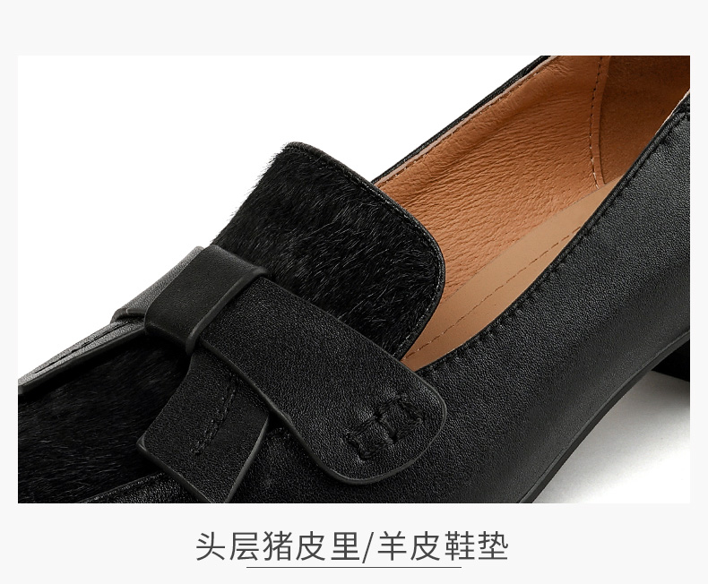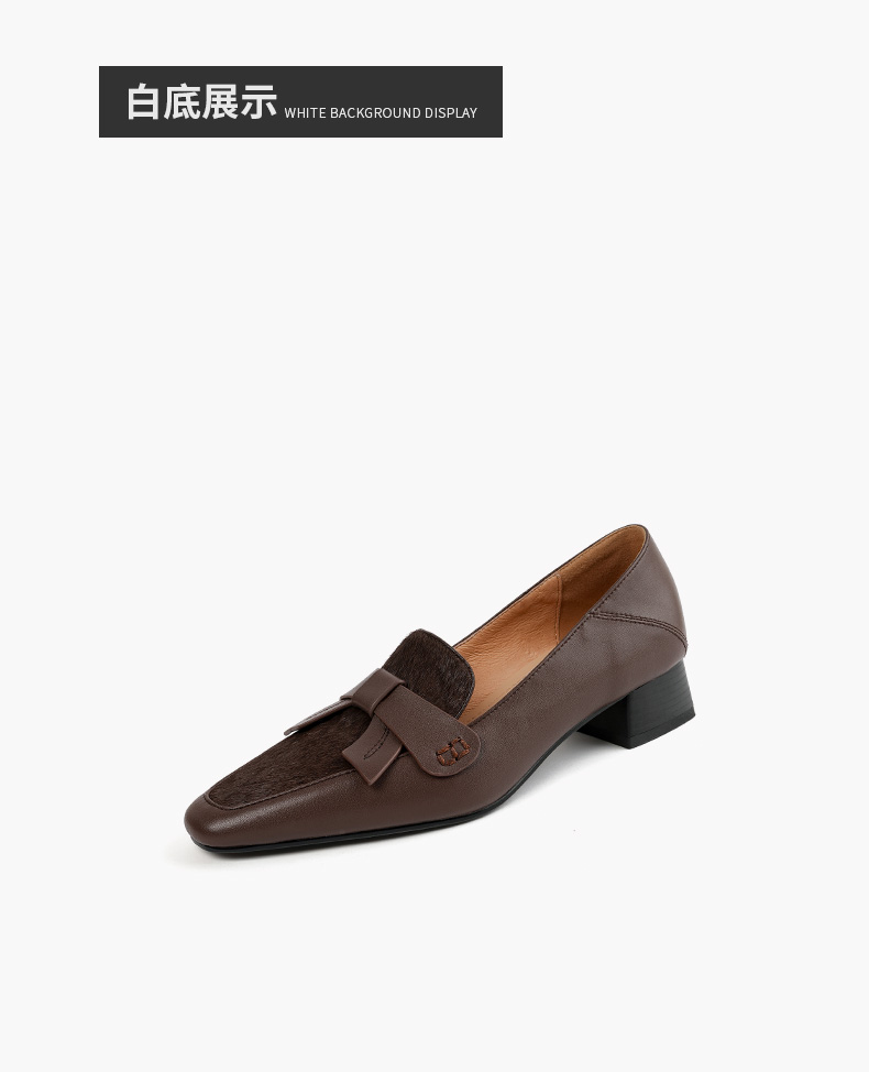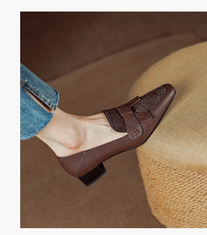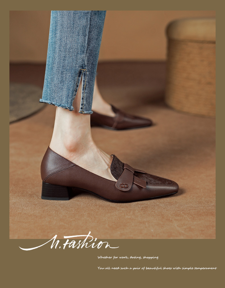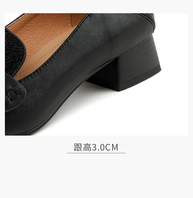 优雅百搭,头层牛皮+马毛粗跟单鞋DJC-843