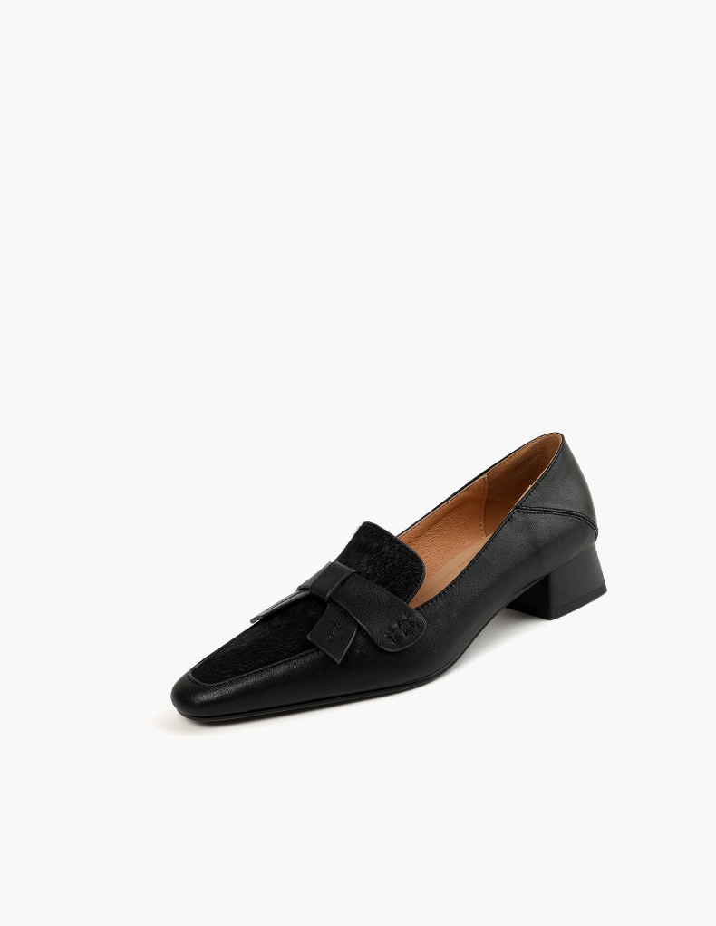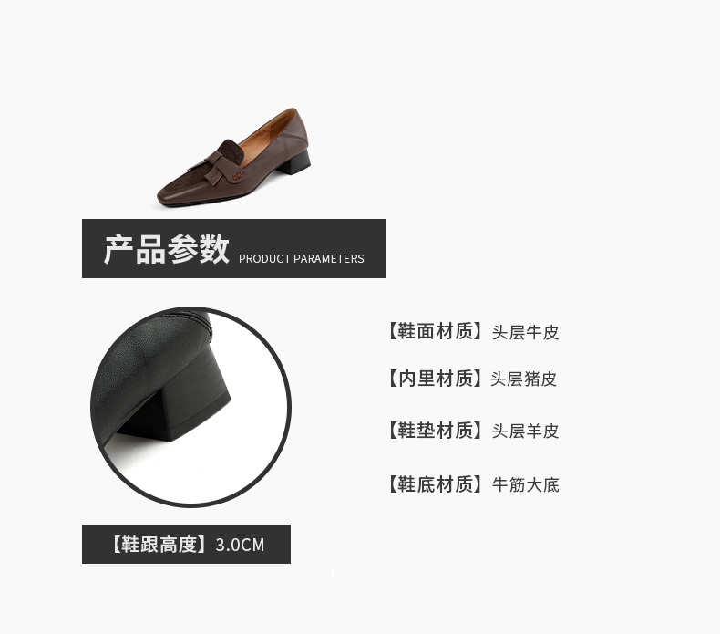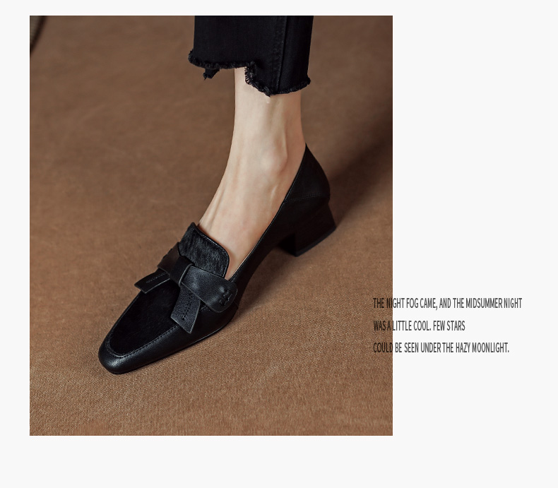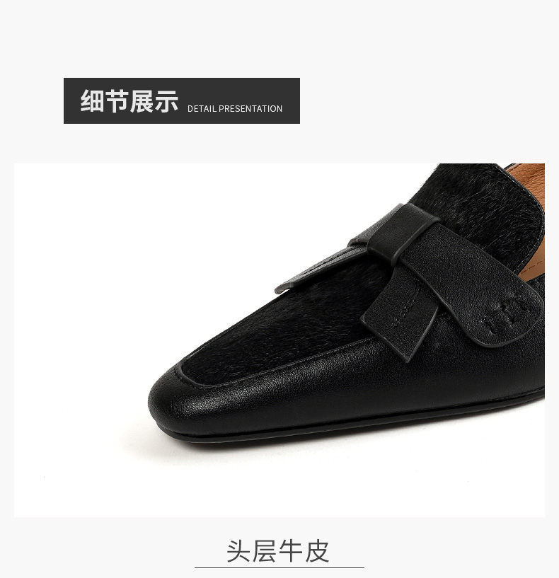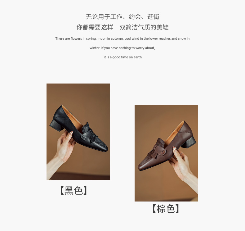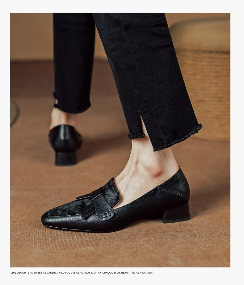 优雅百搭,头层牛皮+马毛粗跟单鞋DJC-843