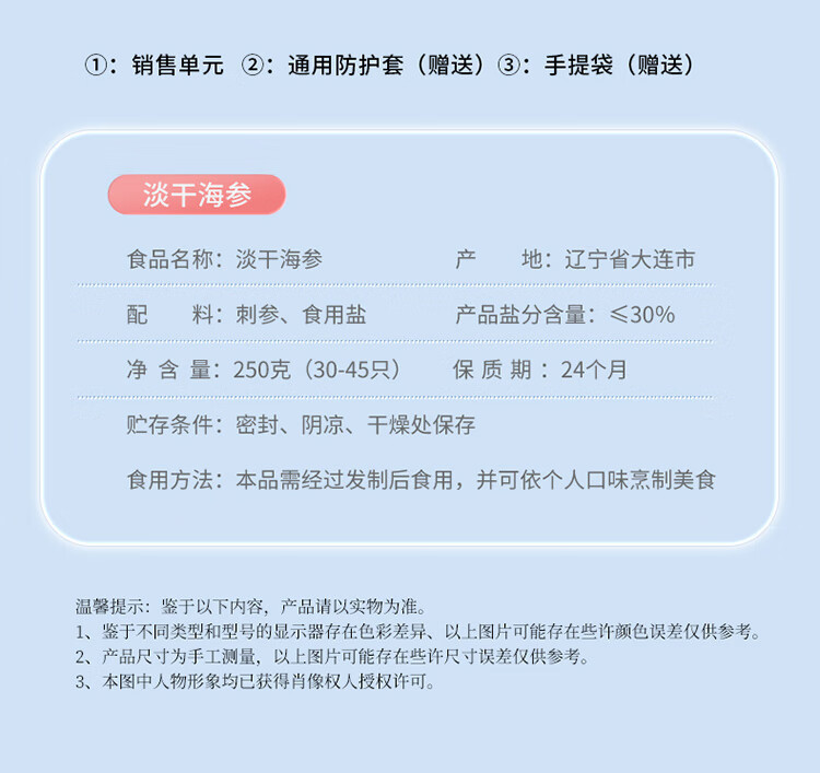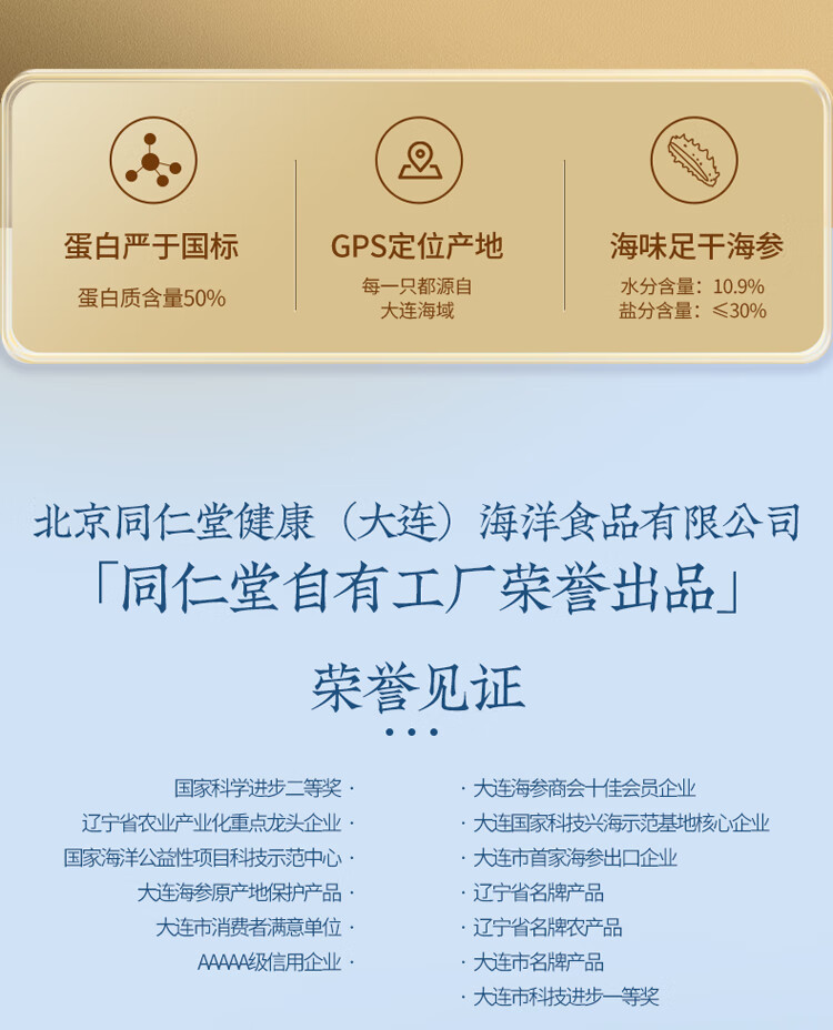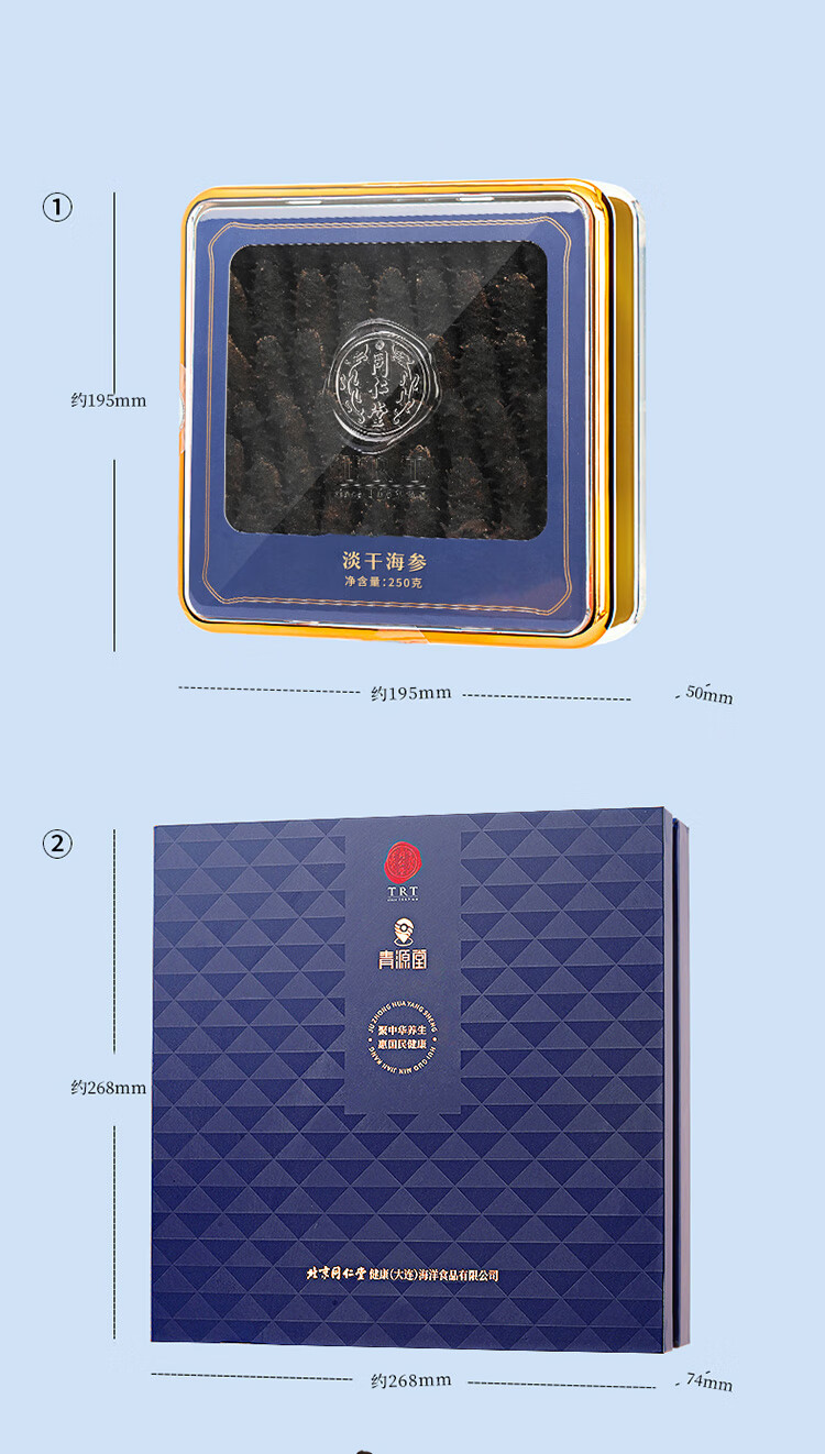 【正宗同仁堂品牌】北京同仁堂(TRT)青源堂 淡干海参250克(30-45)只 选自大连 送礼盒 泡发即食 冷风干燥 SY