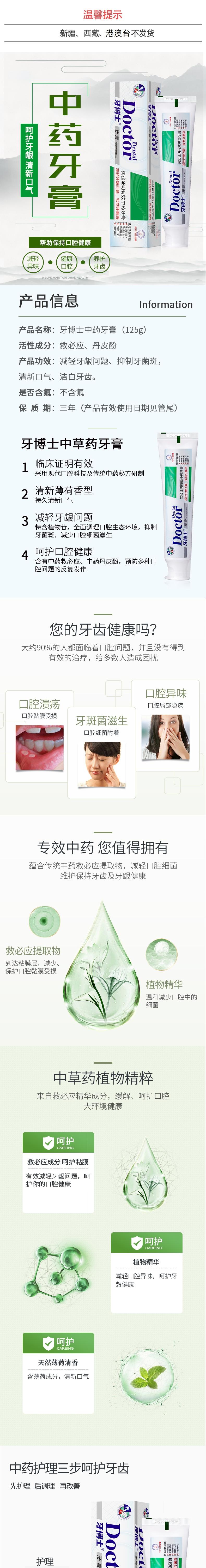 牙博士 新品中药牙膏125g*2支 6924431413618-2