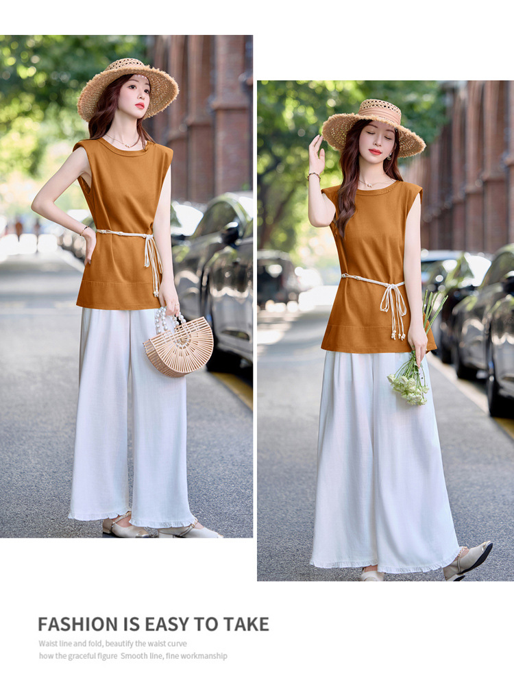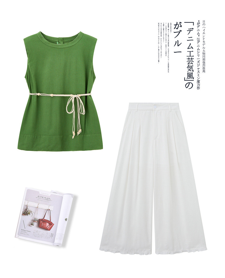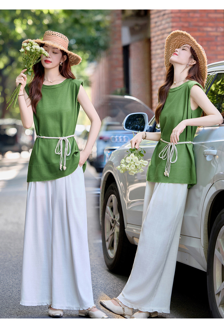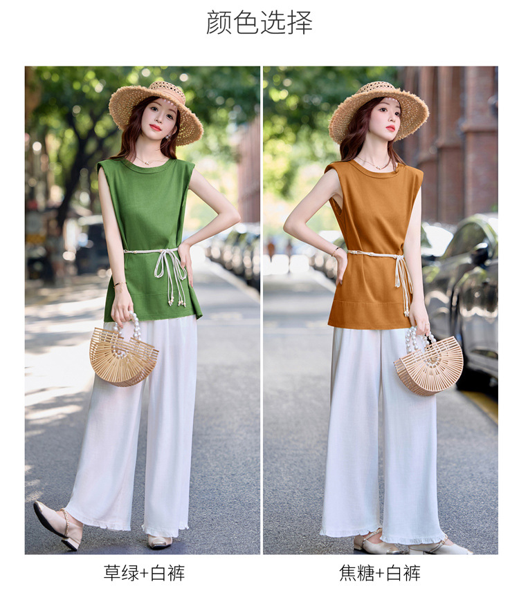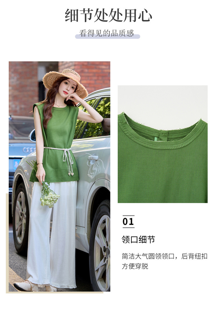 简约时尚休闲宽松,配腰带显瘦棉麻两件套装HR-LJNA1588