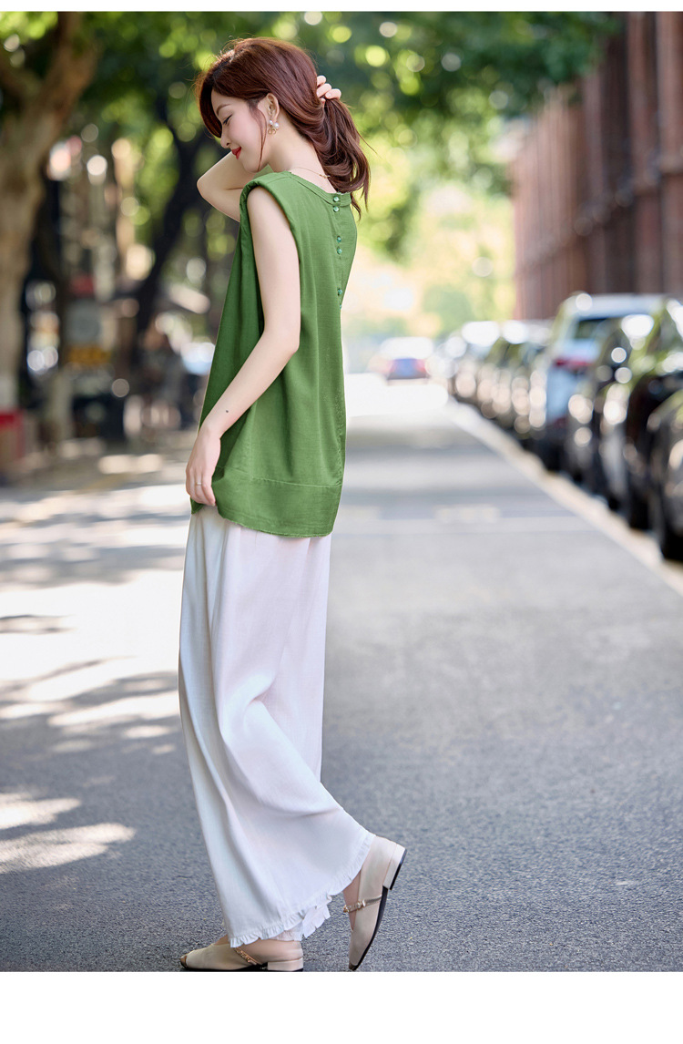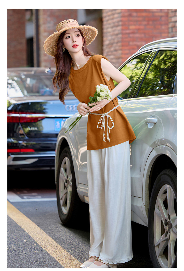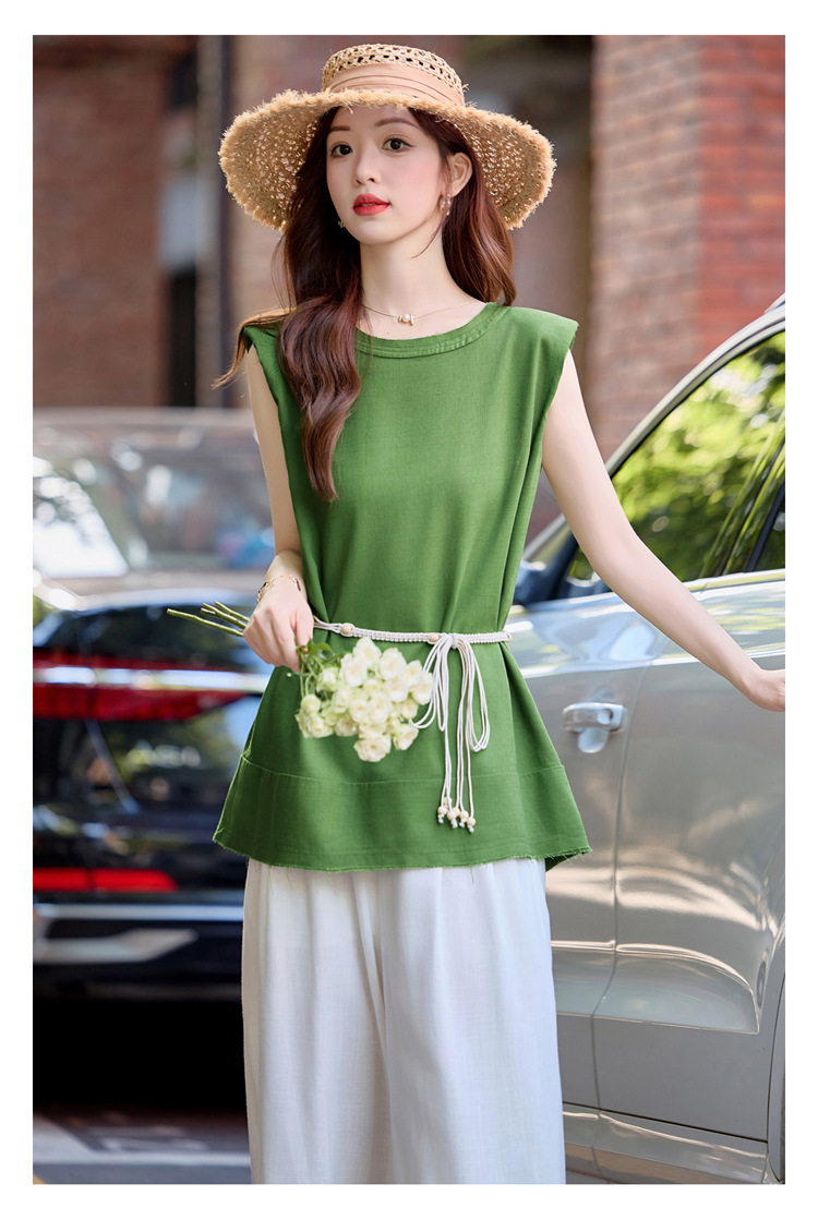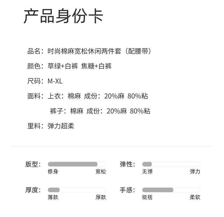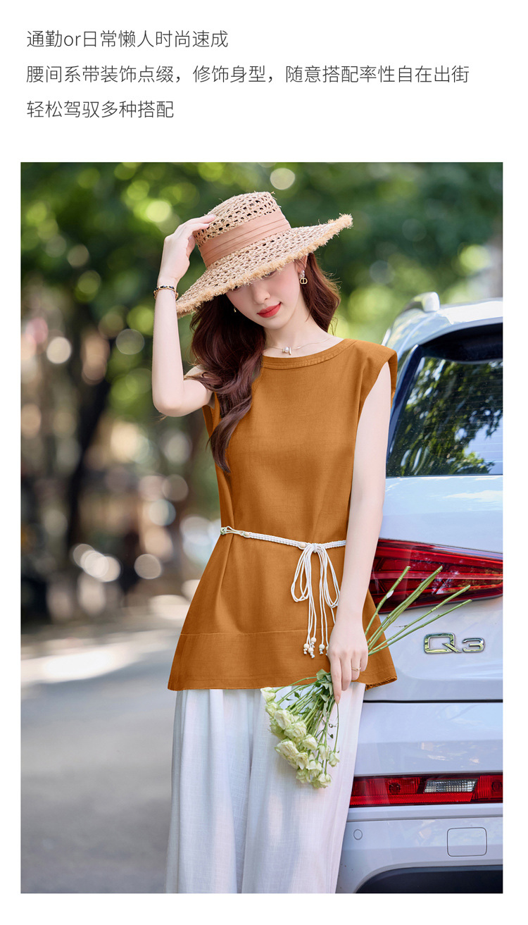 简约时尚休闲宽松,配腰带显瘦棉麻两件套装HR-LJNA1588