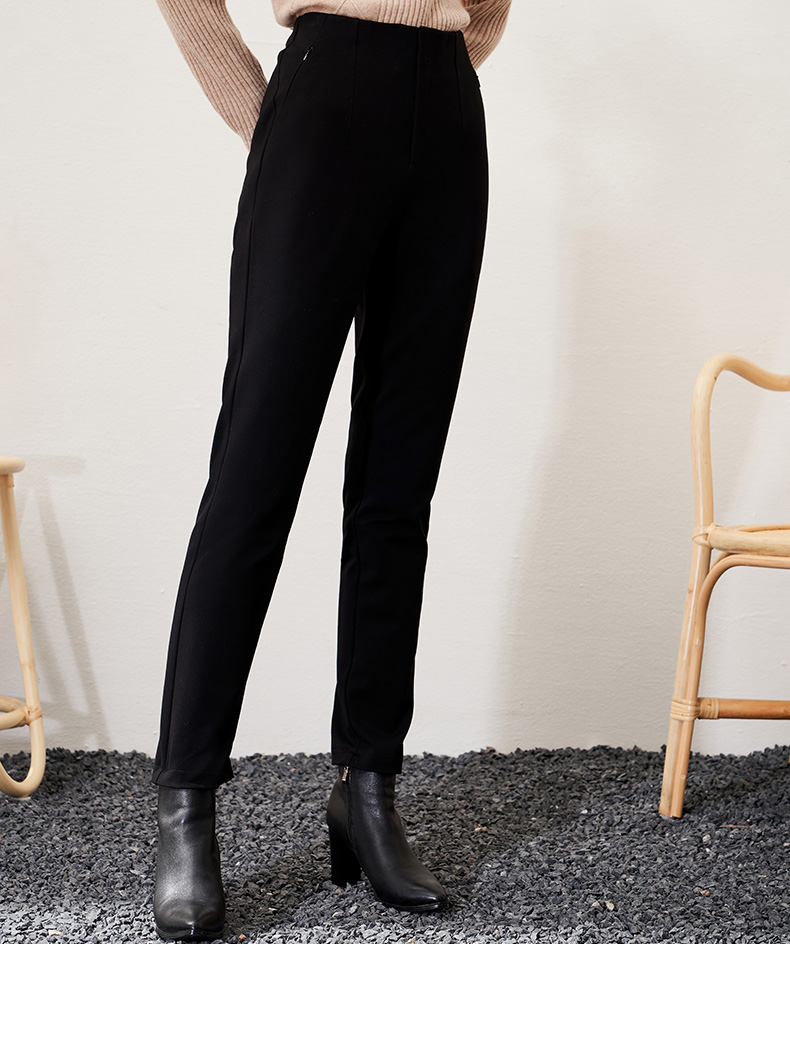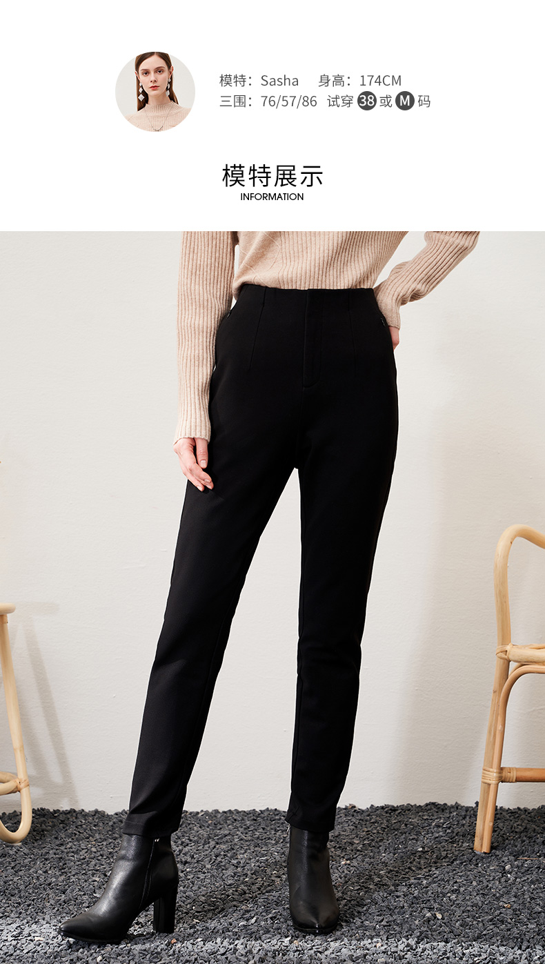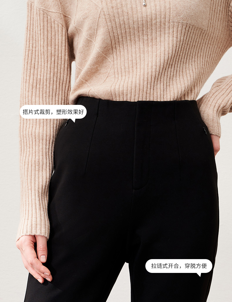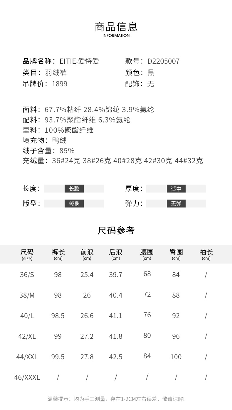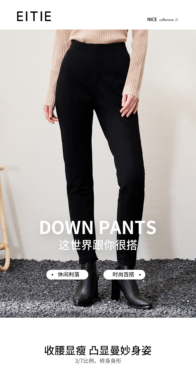 EITIE爱特爱高腰小脚保暖羽绒休闲裤显瘦黑色百搭通勤冬新款D2205007