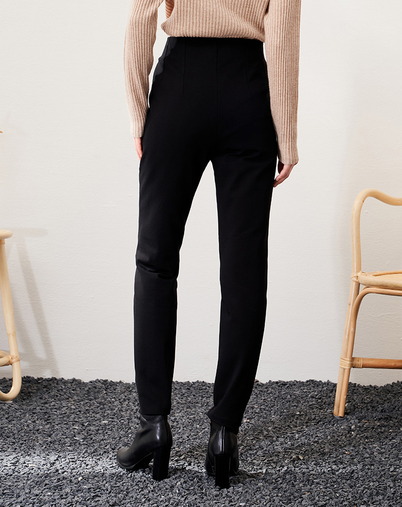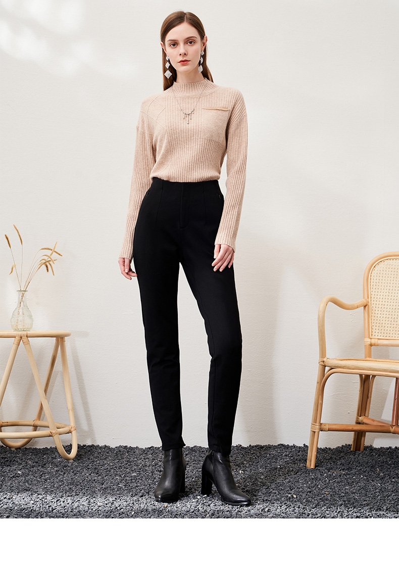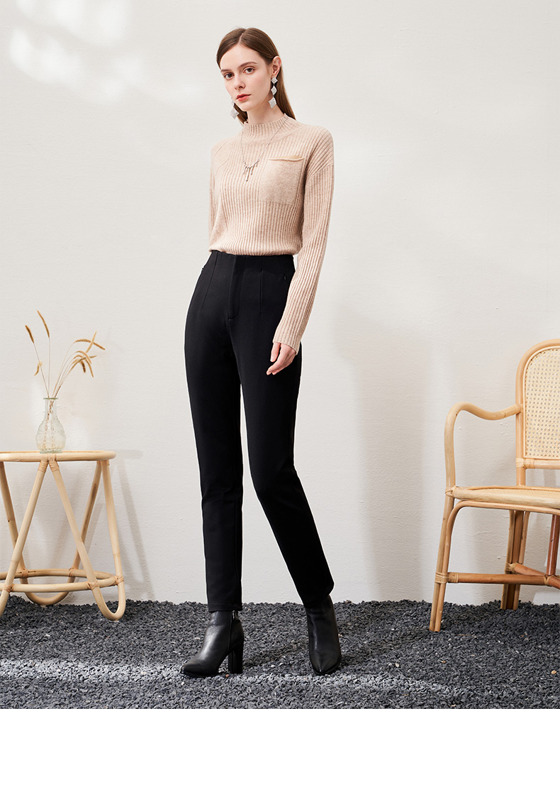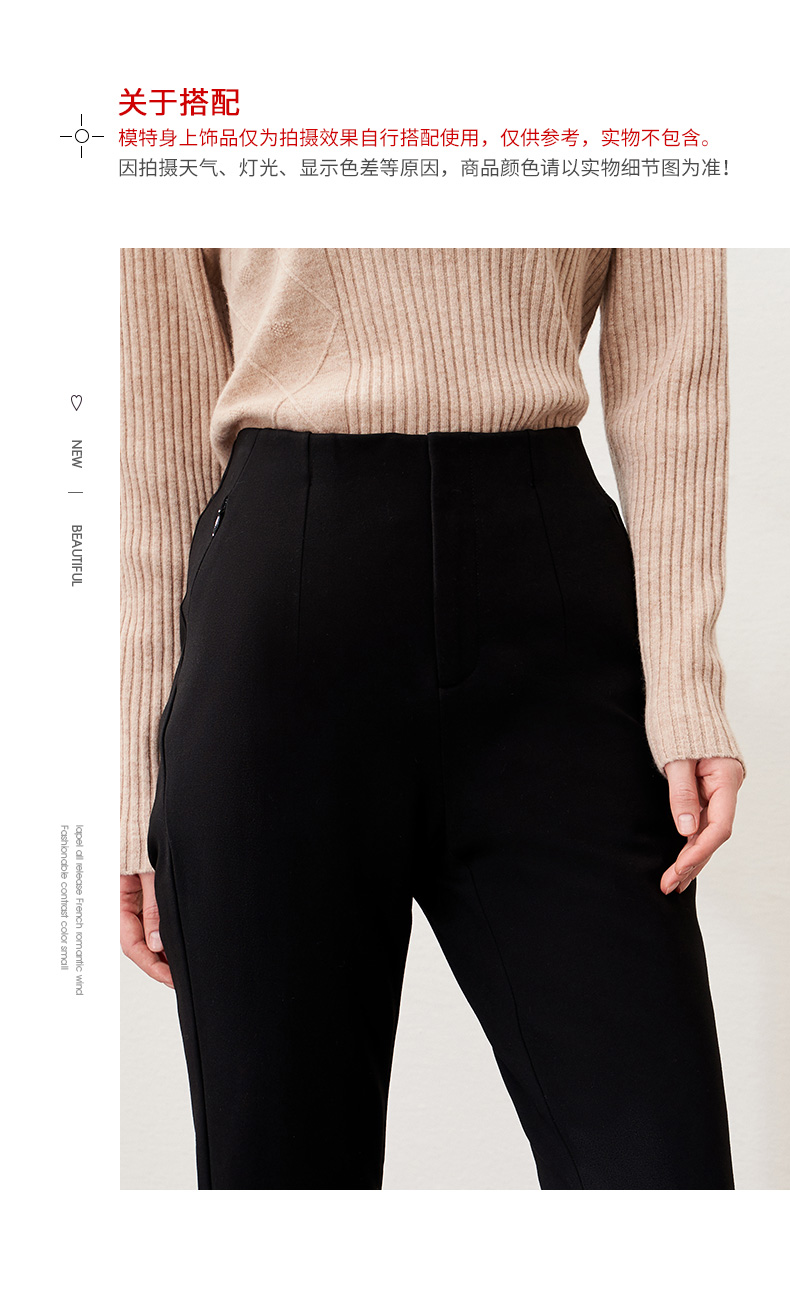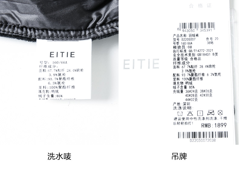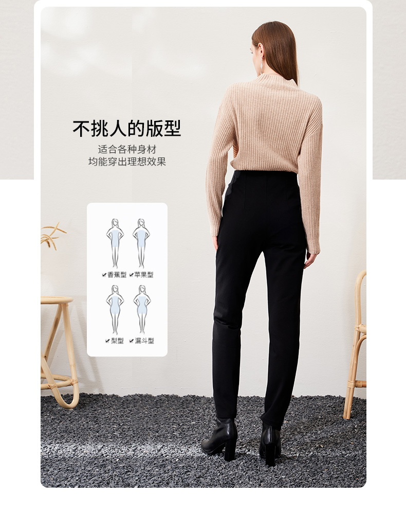 EITIE爱特爱高腰小脚保暖羽绒休闲裤显瘦黑色百搭通勤冬新款D2205007