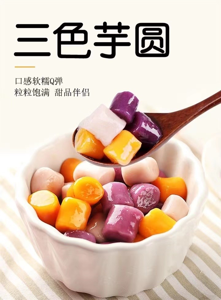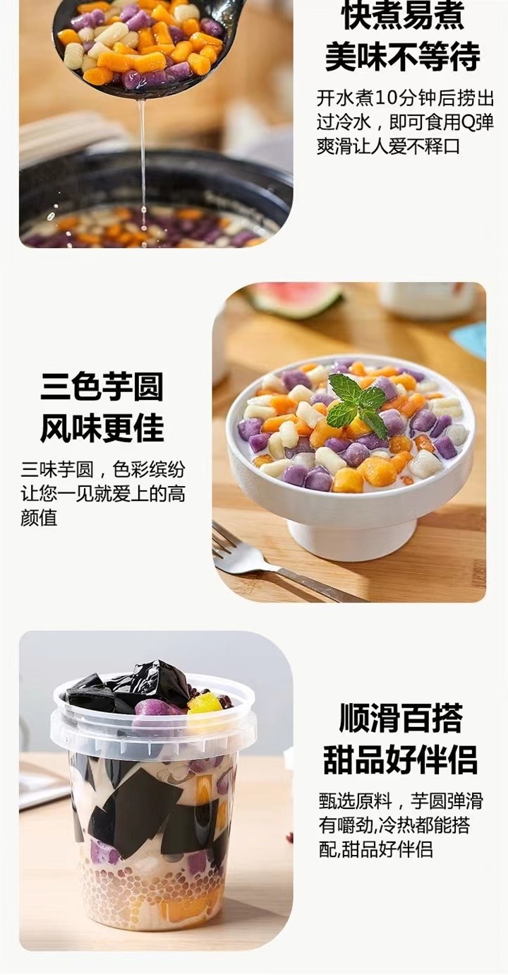 【芋圆精选】玛瑞达三色芋圆 东方甄选推荐 软糯Q弹 大小适口 咀嚼不累 不添加色素防腐剂和明胶 优选芋头 地瓜 紫薯煮熟打成泥成型 无需解冻煮6分钟即食