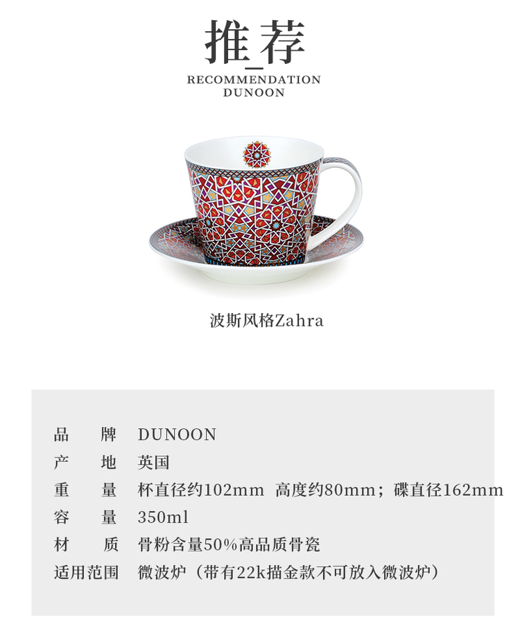英国丹侬Dunoon骨瓷Islay系列(一杯一碟)波斯风格Zahra