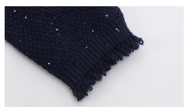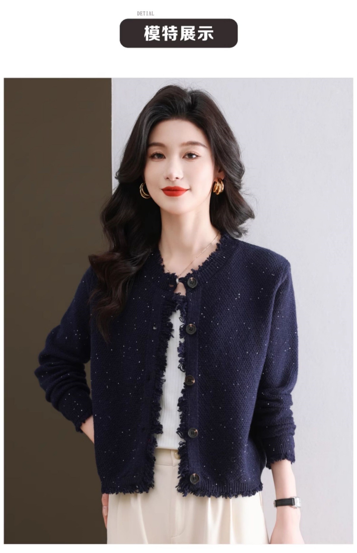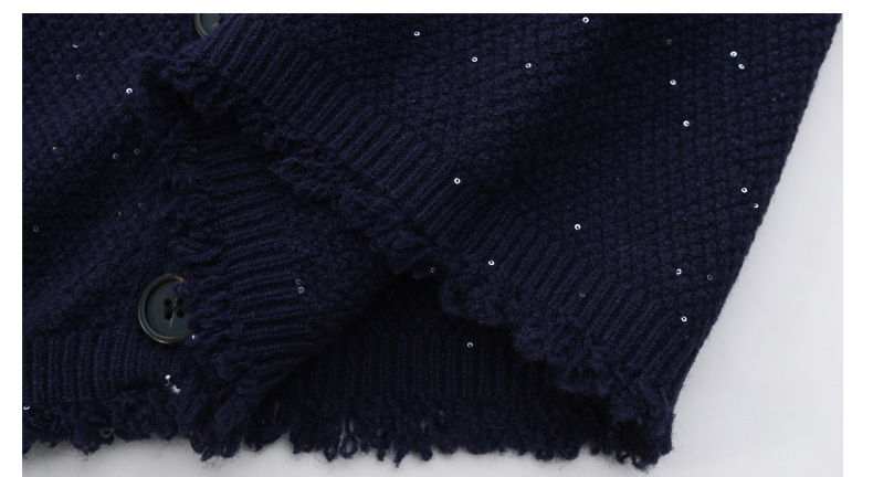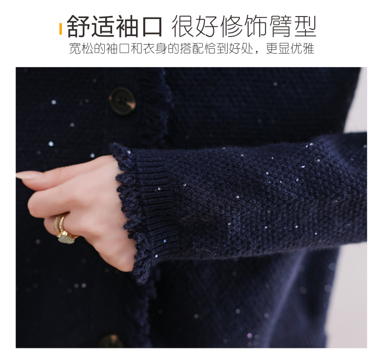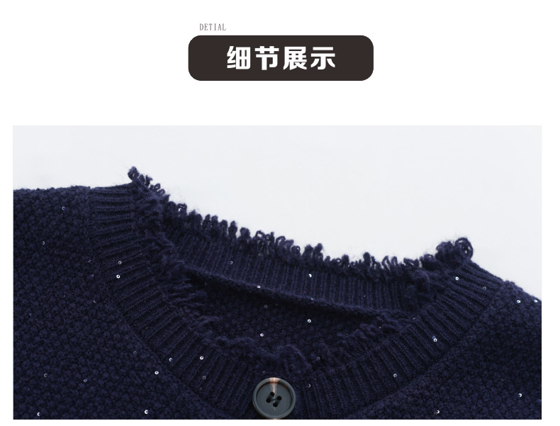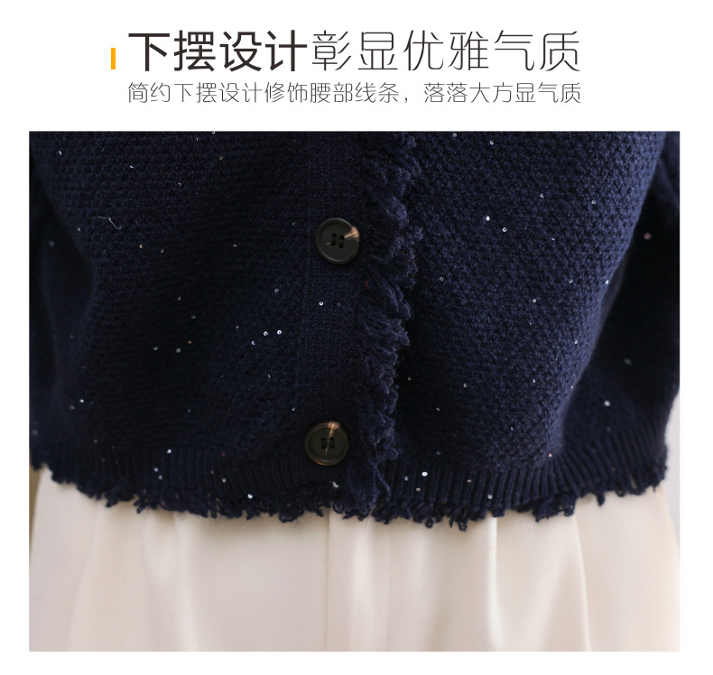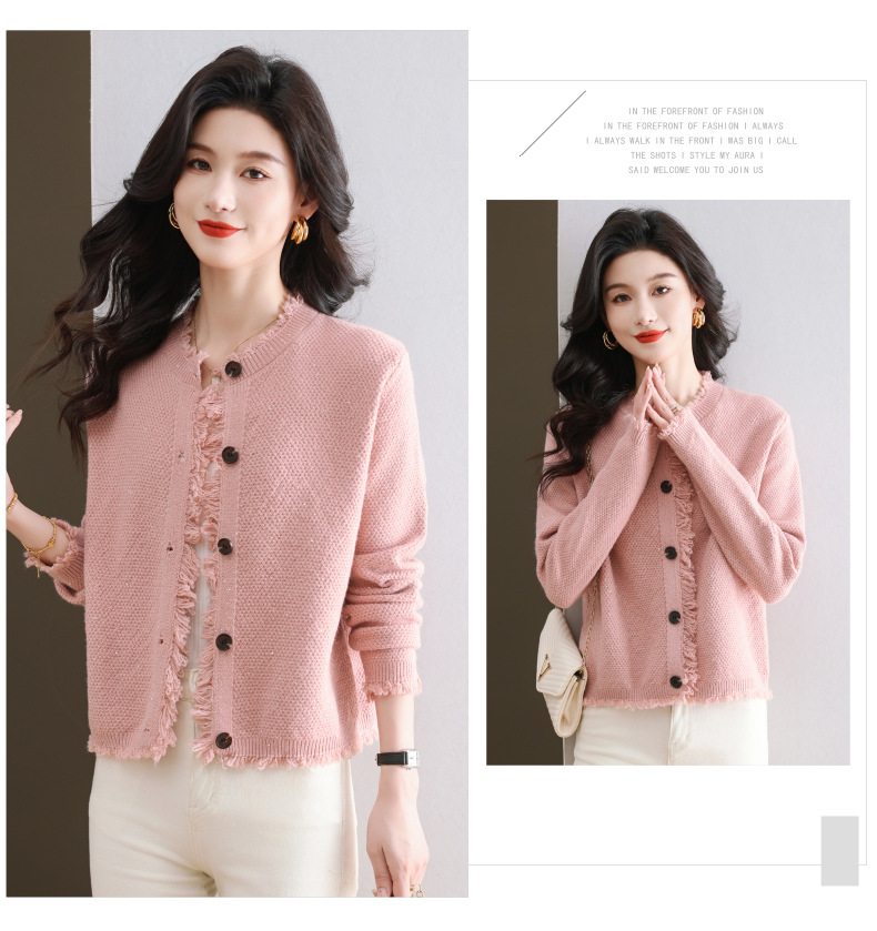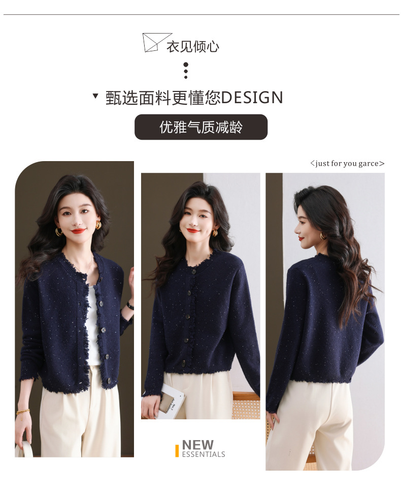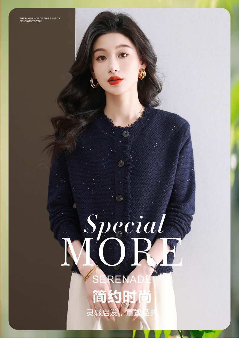 CC-103-66303春秋季小个子圆领外套女士2025新款洋气流苏针织亮片短款毛衣开衫