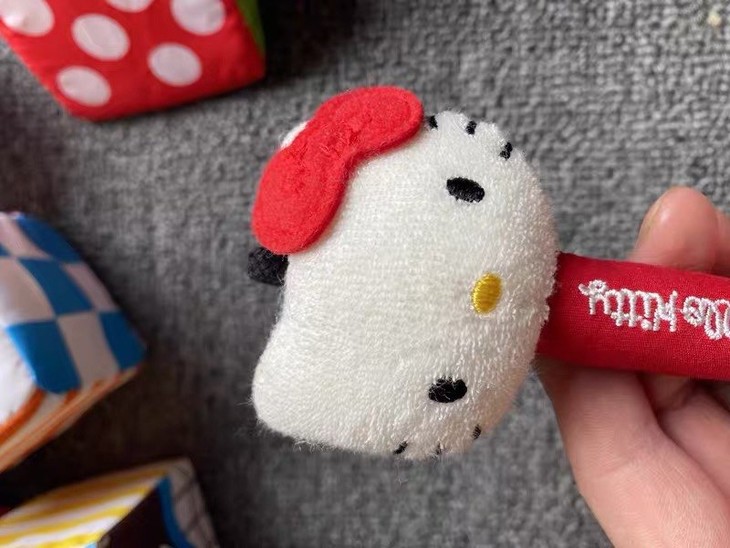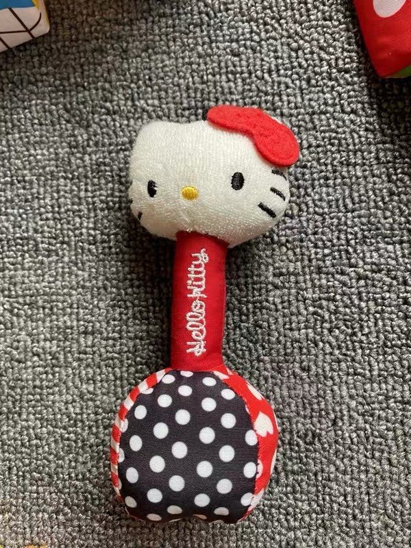 Hello Kitty哑铃摇铃玩具👍小月龄宝宝玩具👶,可爱的Kitty猫造型🎀,深受着宝宝们的喜爱。由黑白红三种鲜艳分明颜色组成,大小适中,非常方便宝宝的小手抓握。内置摇铃,并且布制的摇铃不会怕伤到宝宝,晃动时会有摇铃声🔔。为保护宝宝听力👂,摇铃的声音设计是偏小的,宝妈们可以放心哦😊!