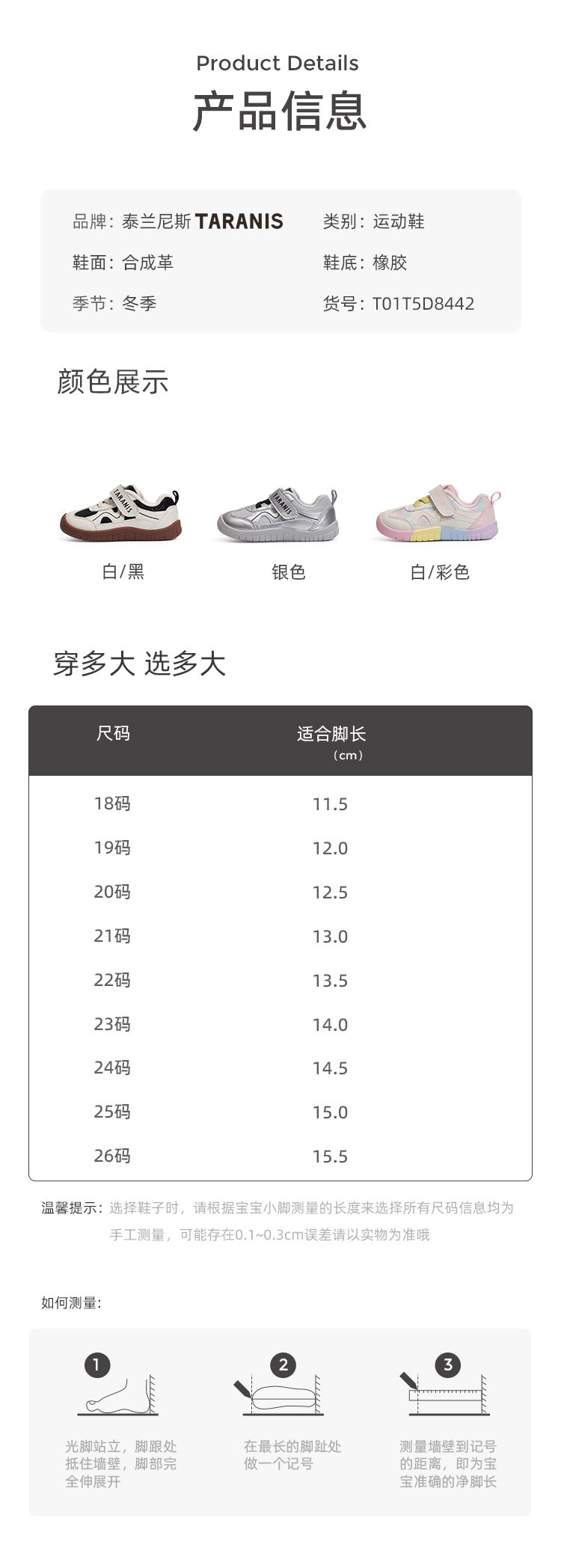 【泰兰尼斯】【新品】婴童段冬款加绒舒适保暖学步鞋T01T5D8442