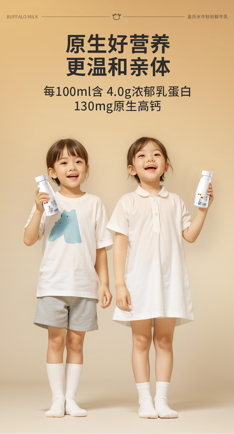 [低温短保]皇氏水牛0.09秒低温水牛鲜奶 180ml*6*2组 到手共12瓶