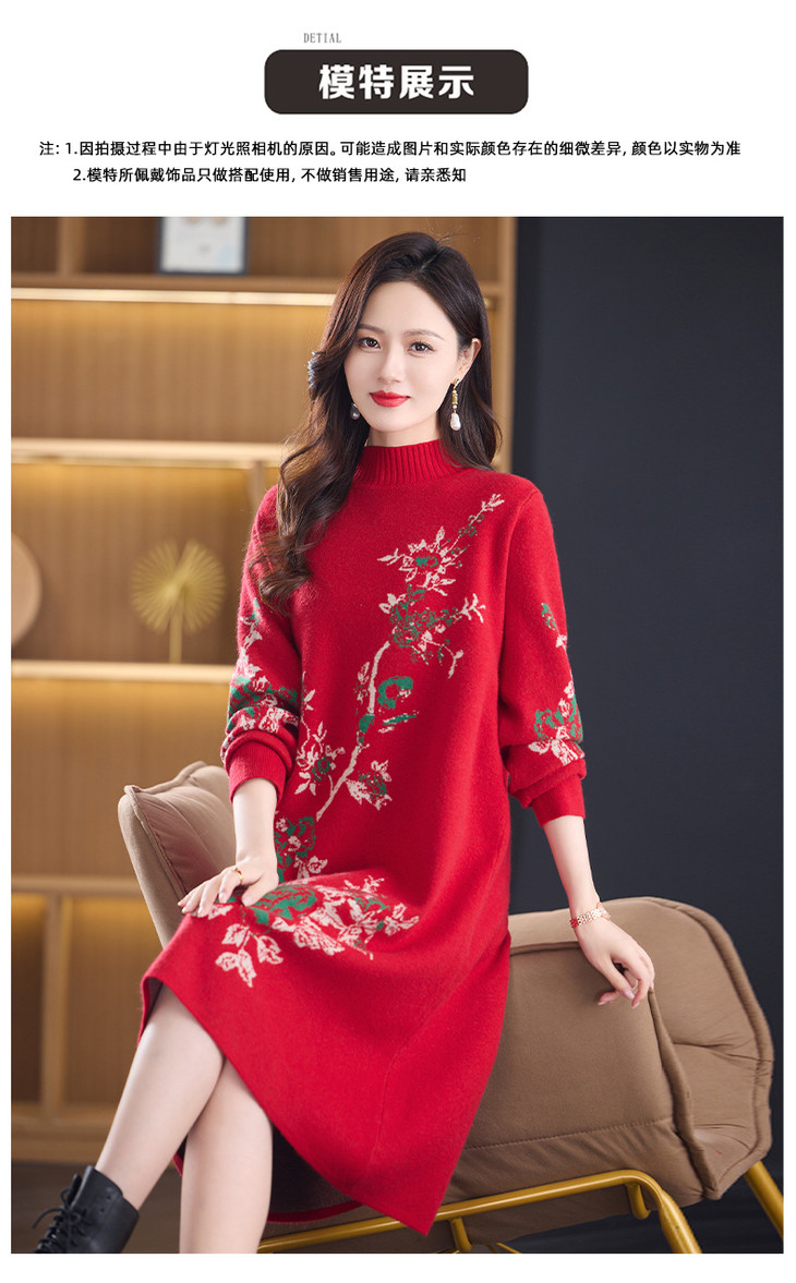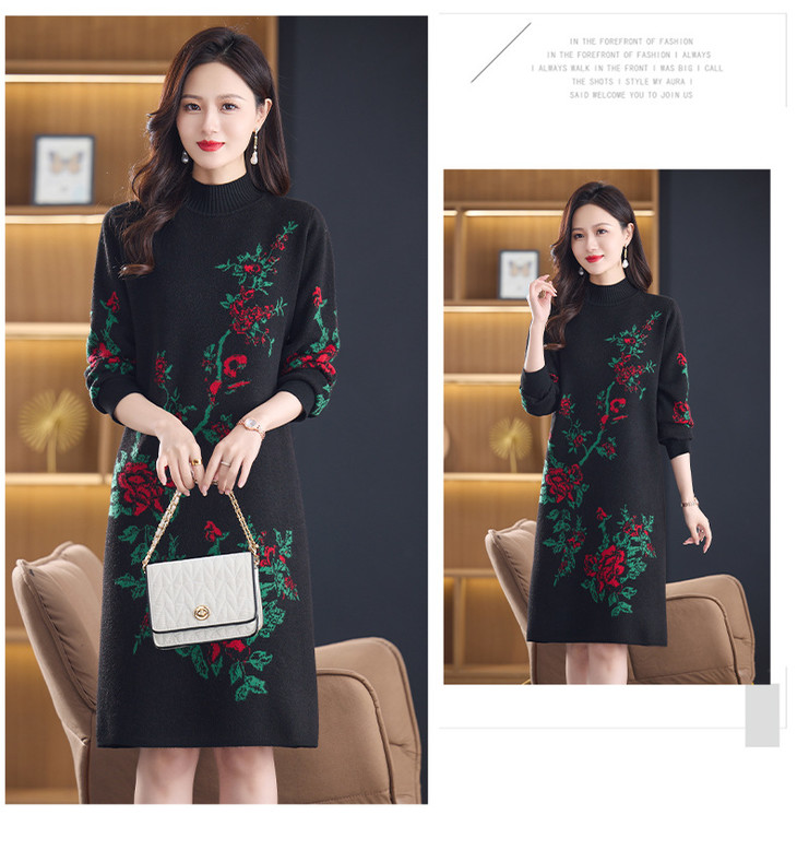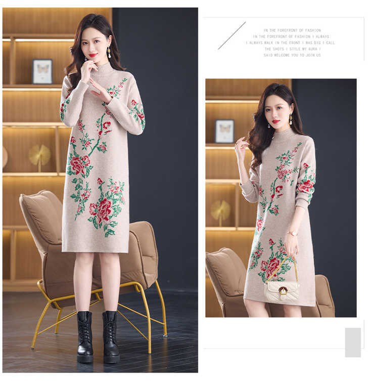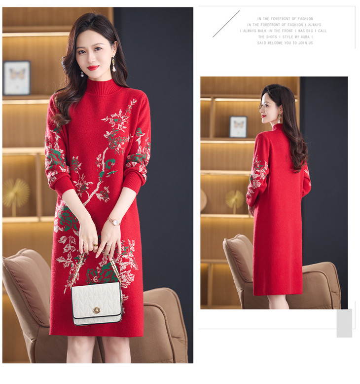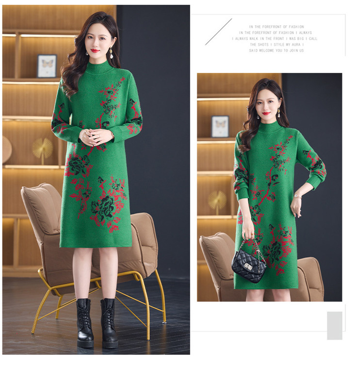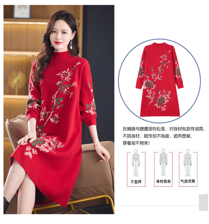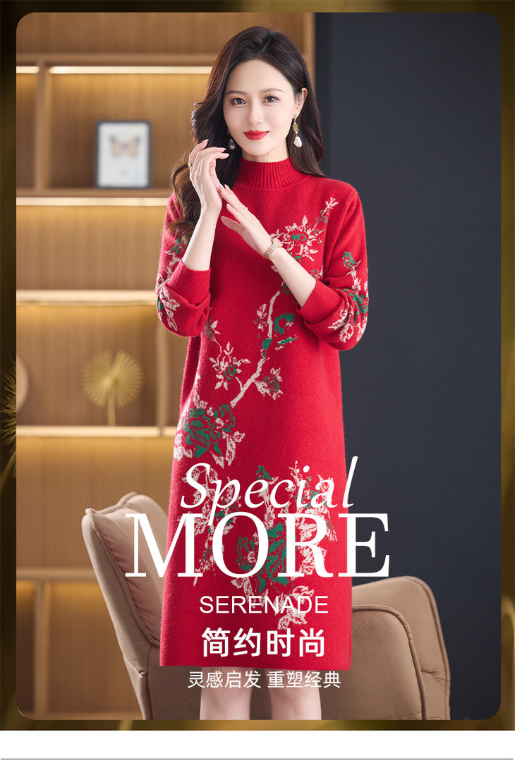 半高领羊毛针织长款连衣裙百搭打底裙CC0835