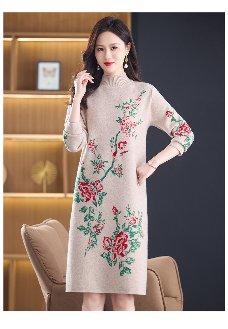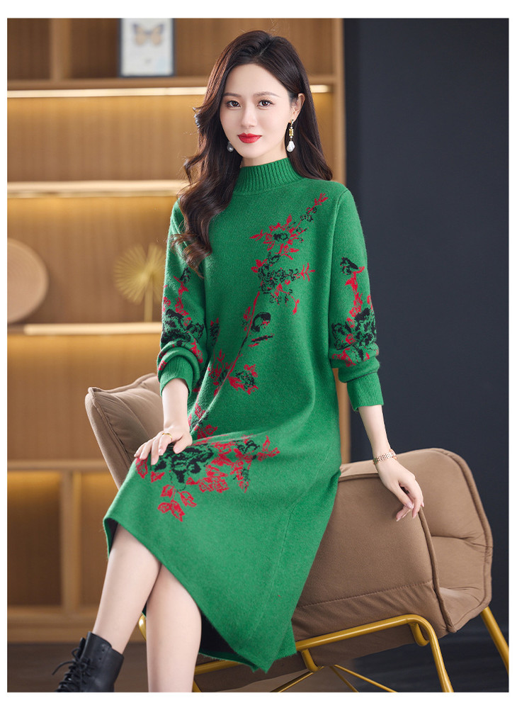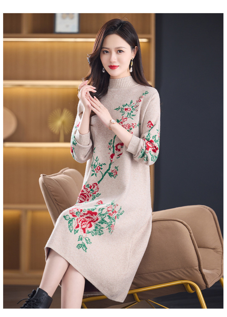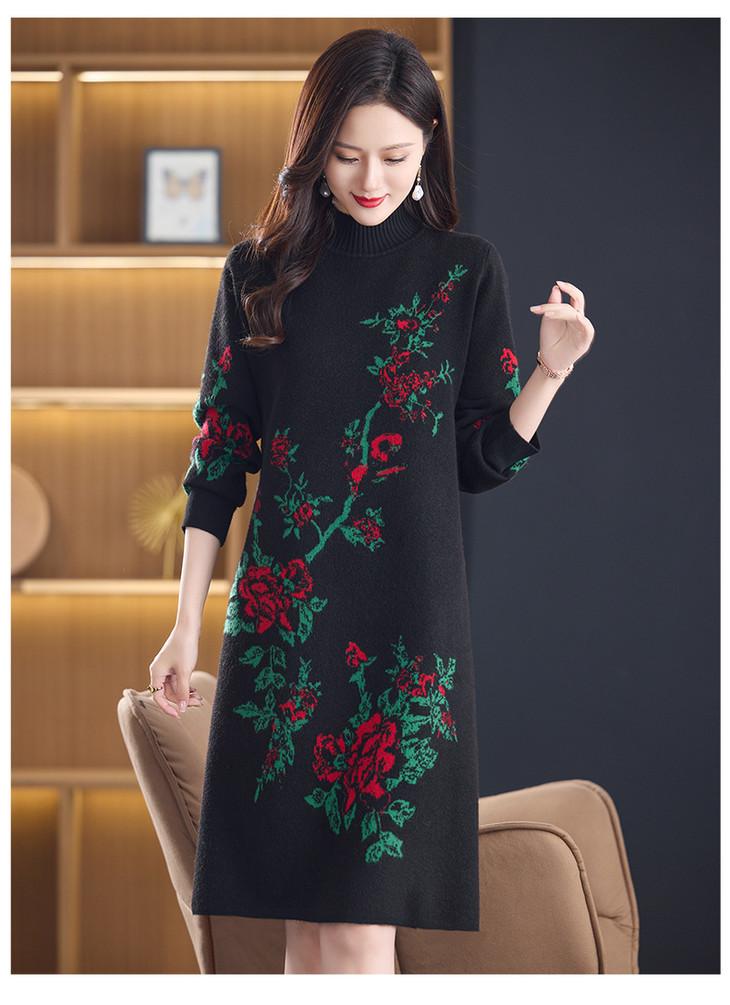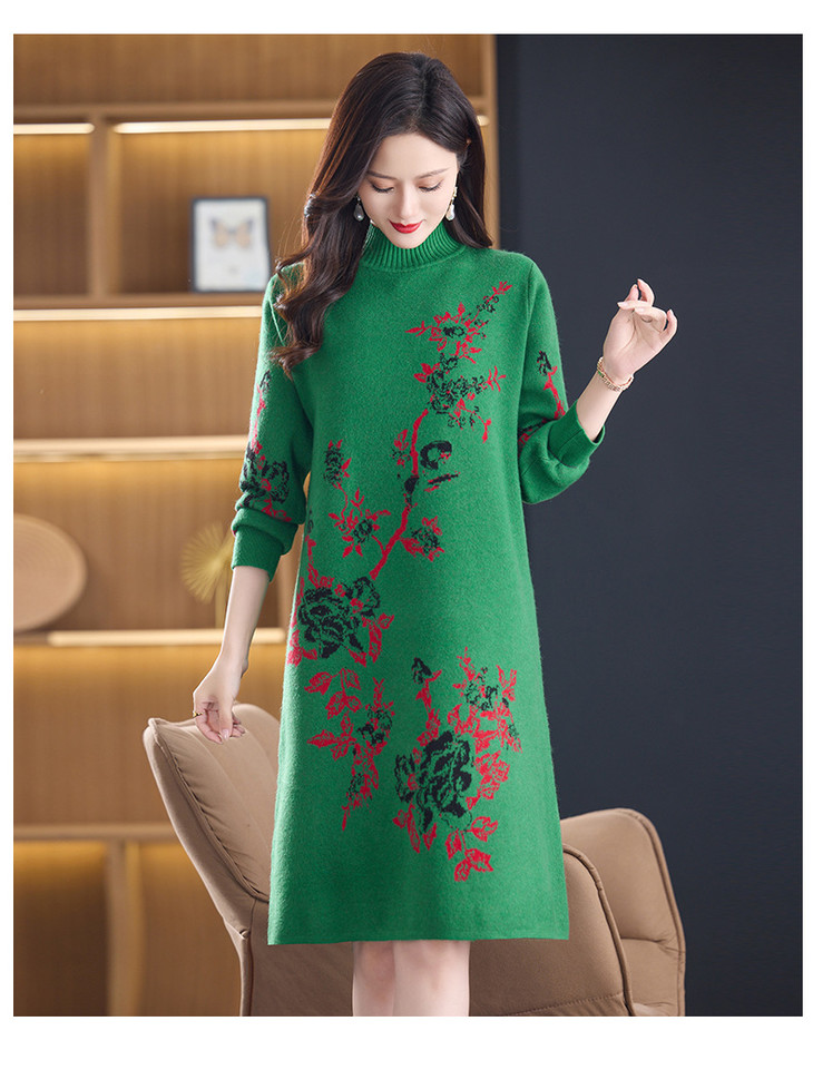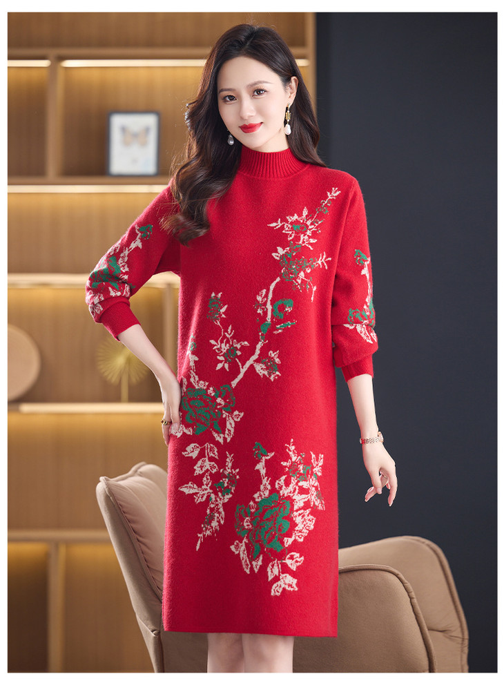 半高领羊毛针织长款连衣裙百搭打底裙CC0835